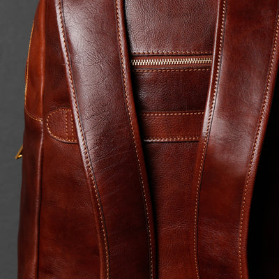 Time Resistance sceglie pelle italiana Vacchetta: pieno fiore, conciata al vegetale e tinta a mano. Col tempo sviluppa una patina raffinata.