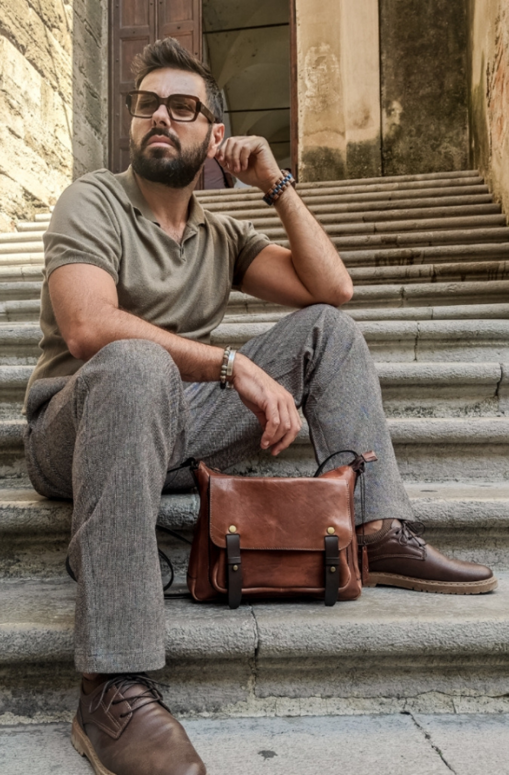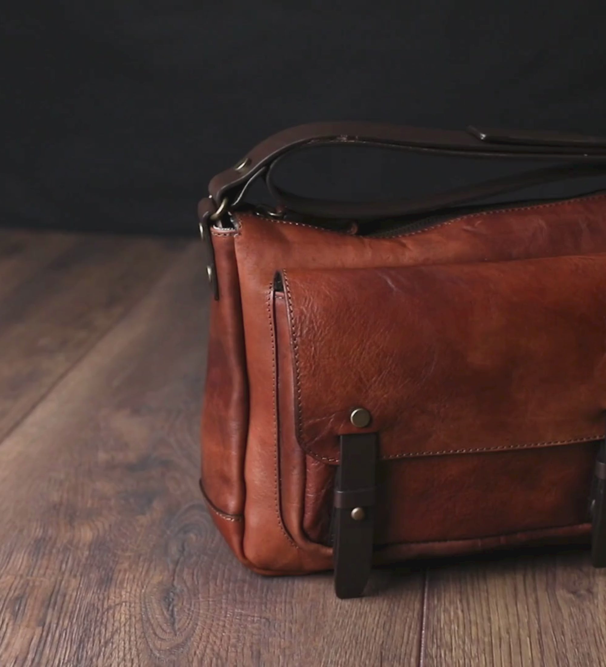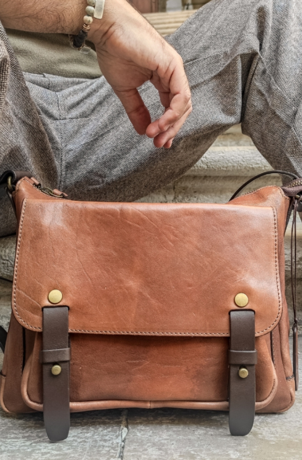 Time Resistance sceglie pelle italiana Vacchetta: pieno fiore, conciata al vegetale e tinta a mano. Col tempo sviluppa una patina raffinata.