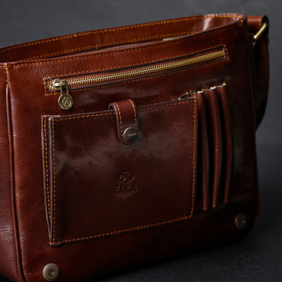 Pratica e discreta, questa borsa messenger in pelle è perfetta per un maestro Zen dei tempi moderni. Un individuo che accoglie la vita così com'è, osserva senza giudizio e senza imporre significati, motivazioni o causalità. Una persona così non desidera orpelli che attirino l'attenzione, ma apprezza la forma puramente minimalista.