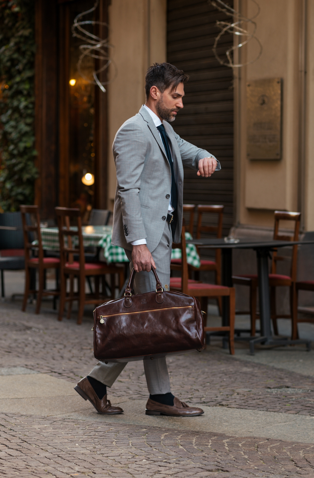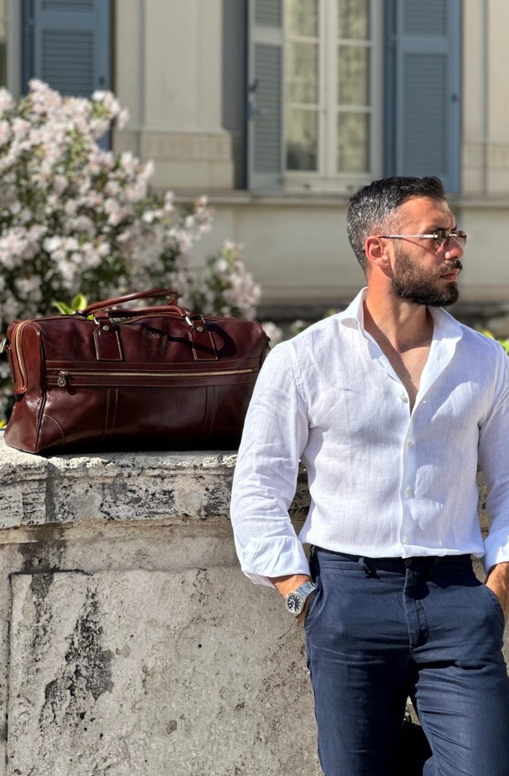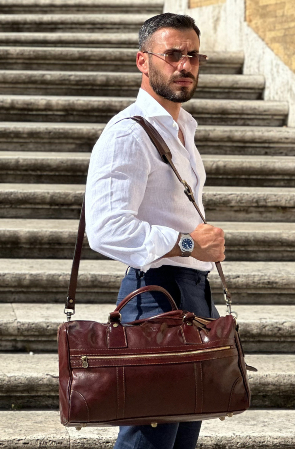 Nella trama del viaggio, "To the Lighthouse" emerge come un compagno saldo, un testimone silenzioso delle avventure che attendono. Realizzata con cura meticoloso, la sua robusta estetica non solo suggerisce resilienza, ma invita anche con la promessa di percorsi ancora da svelare. Adornato da due eleganti cinghie verticali in pelle e rinforzi in ogni angolo, fonde forma e funzione, aggiungendo un tocco di eleganza intramontabile al suo design e fornendo un supporto aggiuntivo per ogni impresa. Entro i suoi ampi confini, i ricordi trovano santuario, custoditi nell'interno vissuto. A ogni passo, diviene più di un semplice borsone; si trasforma in un fidato confidente, un custode di momenti preziosi. Che "To the Lighthouse" divenga il fedele compagno mentre si navigano i complessi sentieri del viaggio, un emblema di resilienza tra i paesaggi in continuo mutamento della grande avventura della vita.