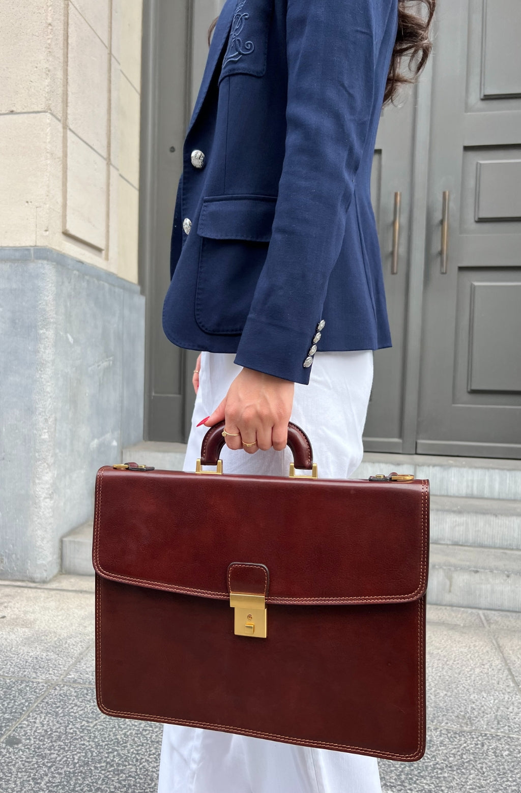 Una cartella da lavoro in pelle dal fascino classico e discreto. Pensata per chi non ha ancora deciso quale ruolo interpretare nella vita. Si abbina a tutto, lasciando piena libertà di essere qualcuno oggi e il suo opposto domani: un completo elegante o un berretto di lana? Entrambi? Qualcuno osa davvero entrambi? No? Forse è il momento che sia tu la prima persona a farlo. Il tutto accompagnato da un tocco di immaginazione.