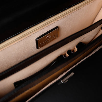 Un classico senza tempo, dalle molteplici personalità. Questa grande ventiquattrore in vera pelle è un accessorio che completa ogni look. Oggi, la scelta è tra l'identità di un diplomatico straniero o quella di uno studente di belle arti. A guidare è l'immaginazione.