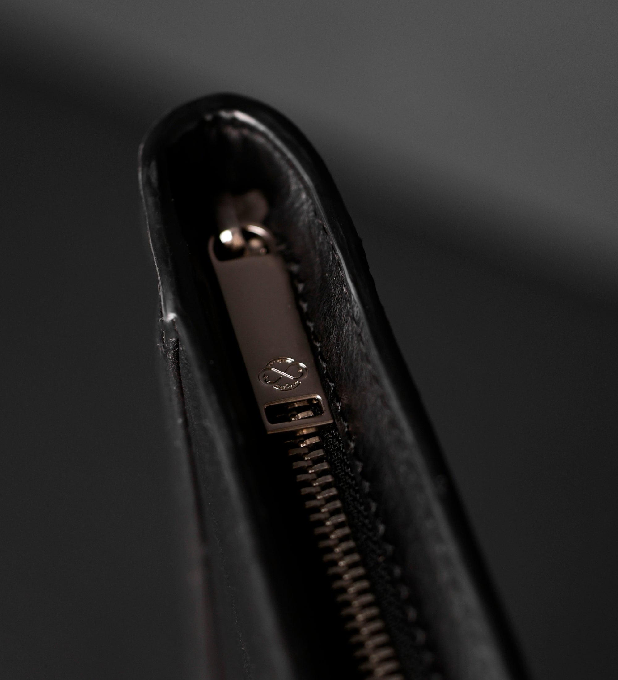 Cartella portadocumenti in solida pelle pieno fiore, perfetta per completare un look business minimalista e raffinato. Progettata per organizzare con ordine documenti e dispositivi digitali, senza rinunciare a un’eleganza sobria e leggera.