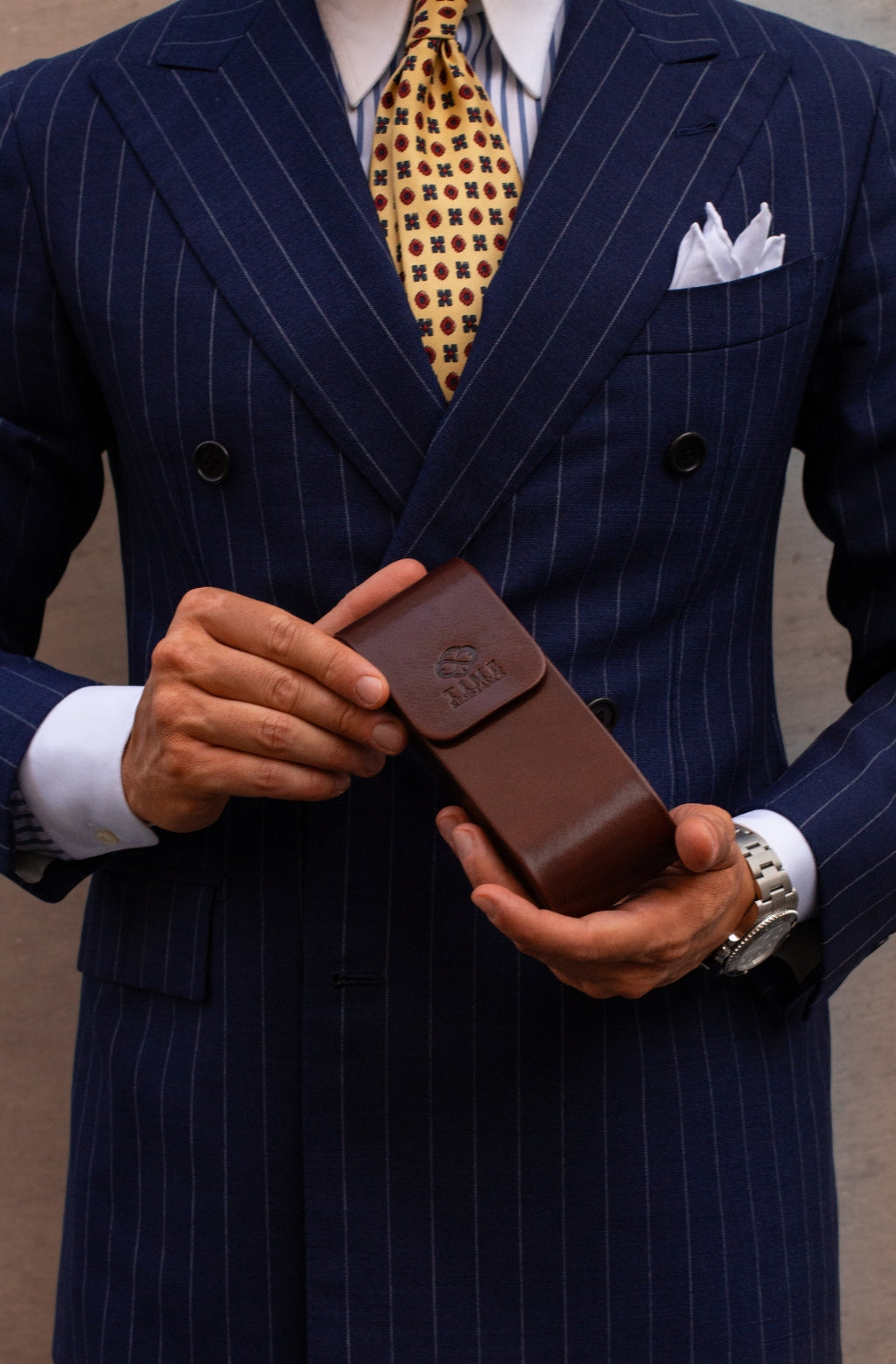 Realizzata con precisione dalla più pregiata pelle italiana, ogni custodia è una testimonianza del nostro impegno per la qualità e la tradizione. Concepita con un'estetica minimalista e una chiusura magnetica per un accesso agevole, questa custodia esprime ricercatezza e praticità in egual misura. Tinta a mano con tecniche di concia vegetale, la pelle vanta una ricca patina naturale che non fa che migliorare con il tempo. Il nostro logo è discretamente impresso sulla patta frontale, un sottile richiamo all'abile artigianalità racchiusa all'interno. L'esperienza degli occhiali può elevarsi a un nuovo livello con questo lussuoso accessorio, dove lo stile incontra la sostanza in perfetta armonia.