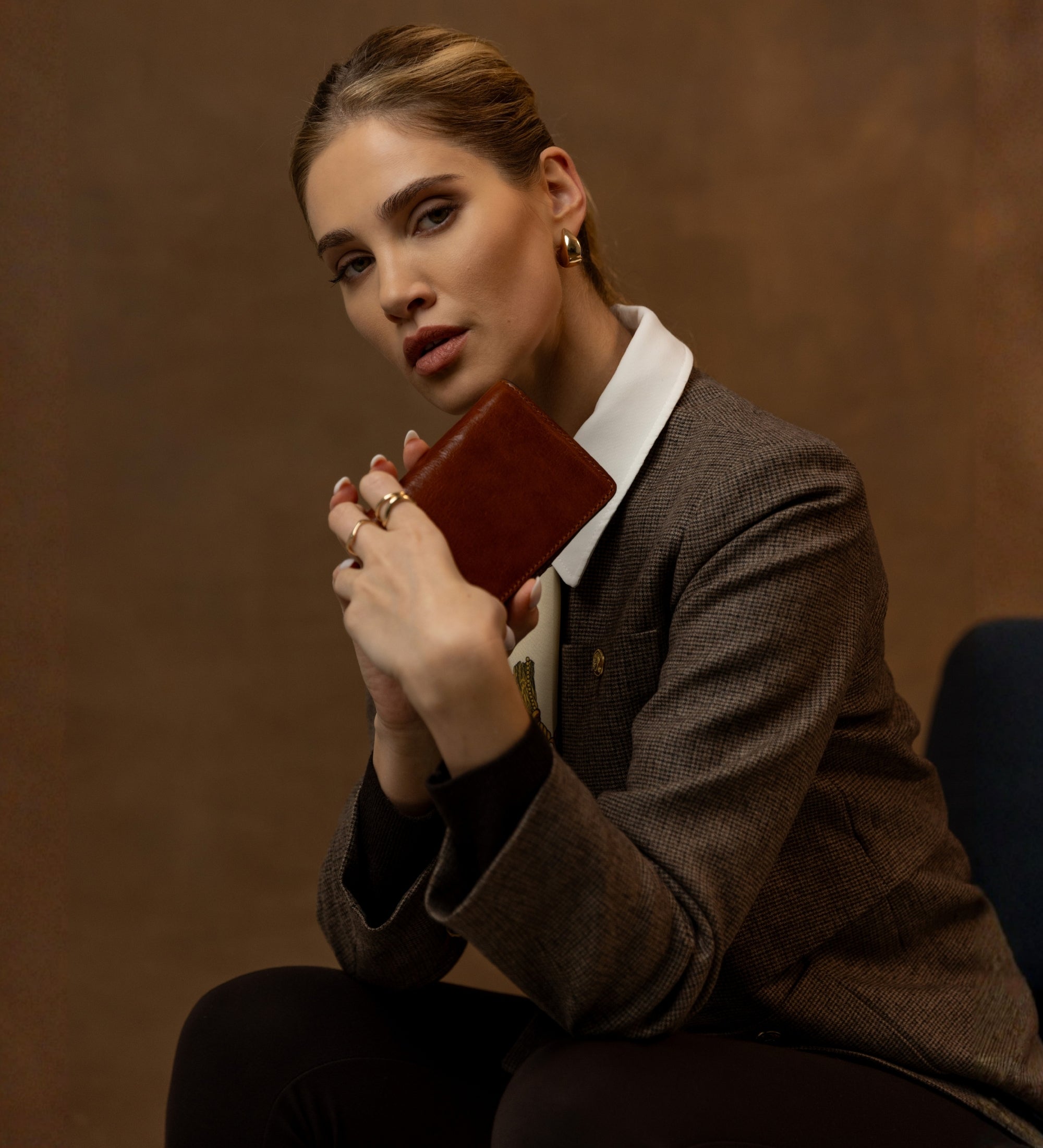 Due tasche interne, una dietro gli alloggiamenti per carte, l'altra perfetta per il passaporto