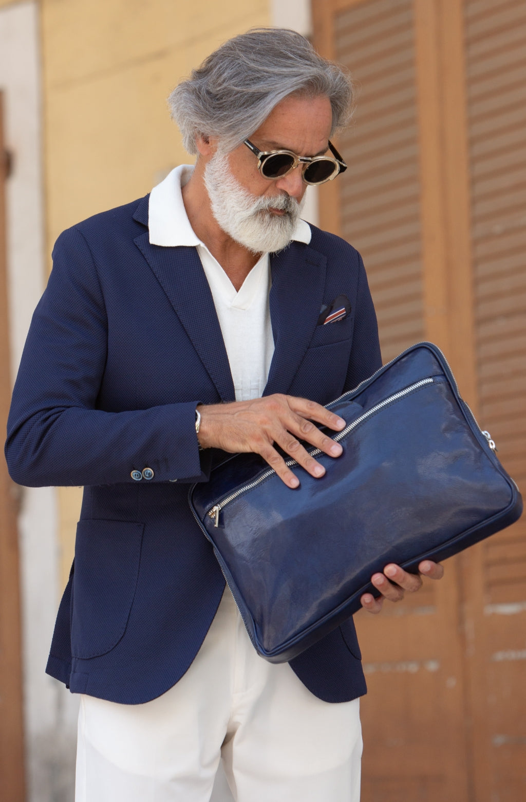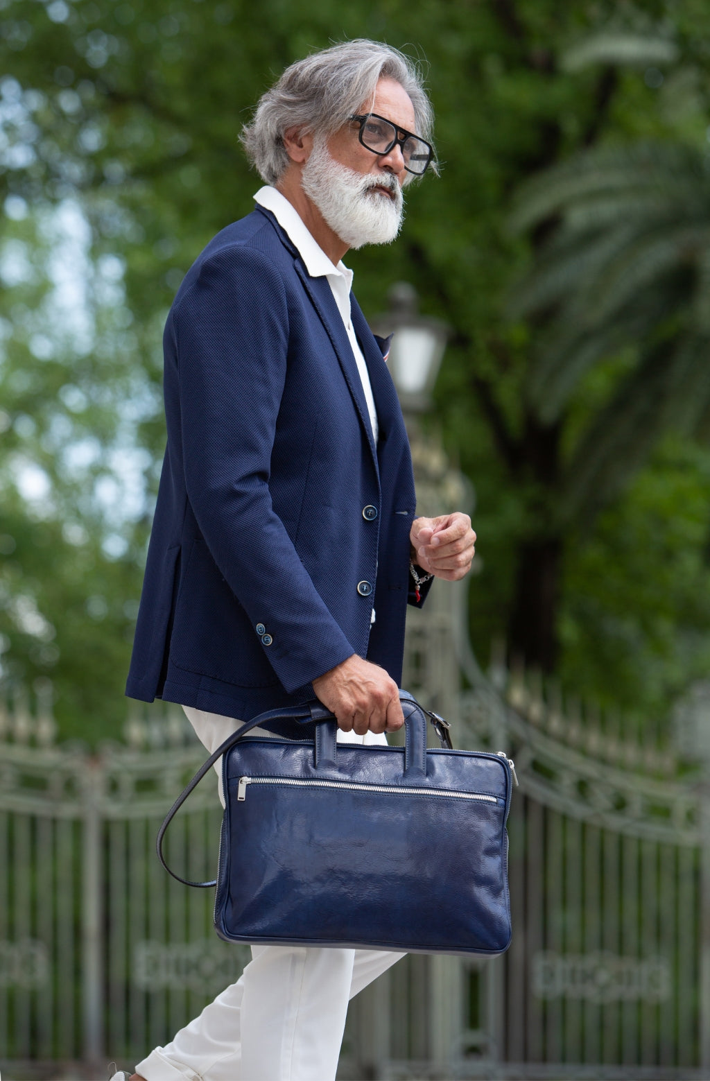 Una cartella da lavoro in pelle pieno fiore che esprime la perfetta armonia tra durezza e morbidezza. La pelle di altissima qualità, tinta a mano, conferisce un tocco sentimentale, mentre le linee trasmettono una delicata impronta di modernità. Intramontabile e attuale. Maschile e femminile. Praticità urbana intrisa di carisma.