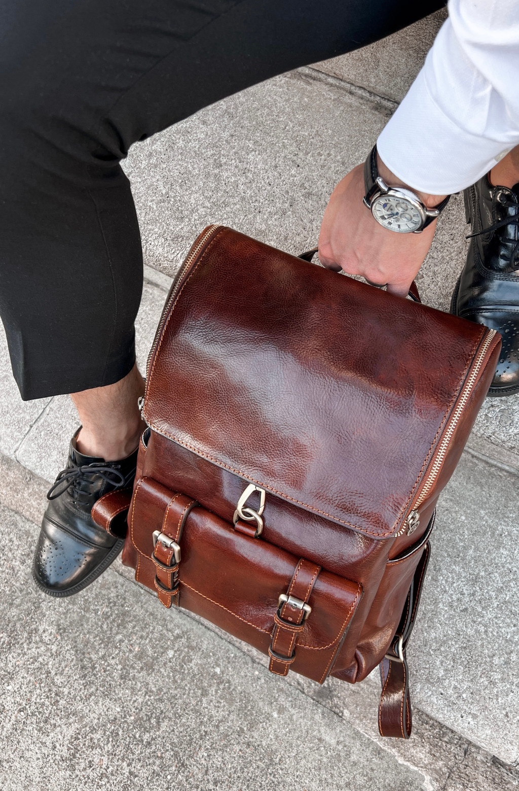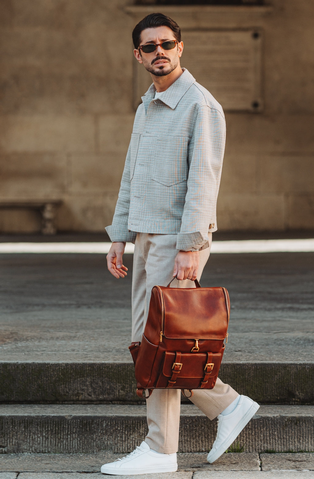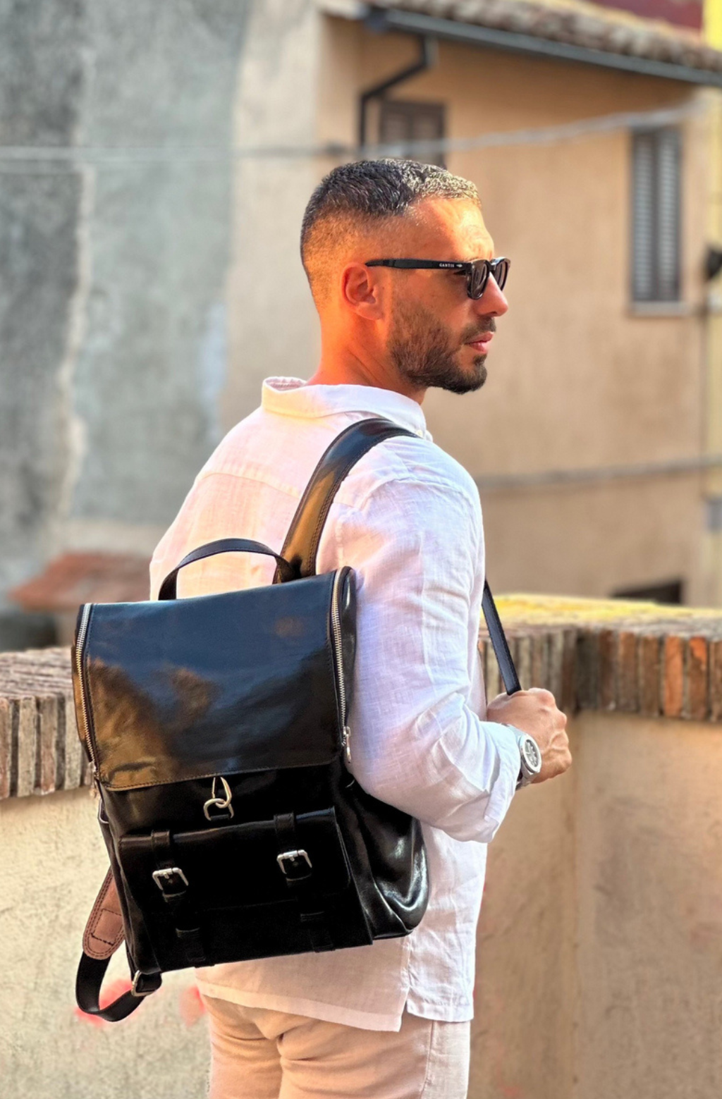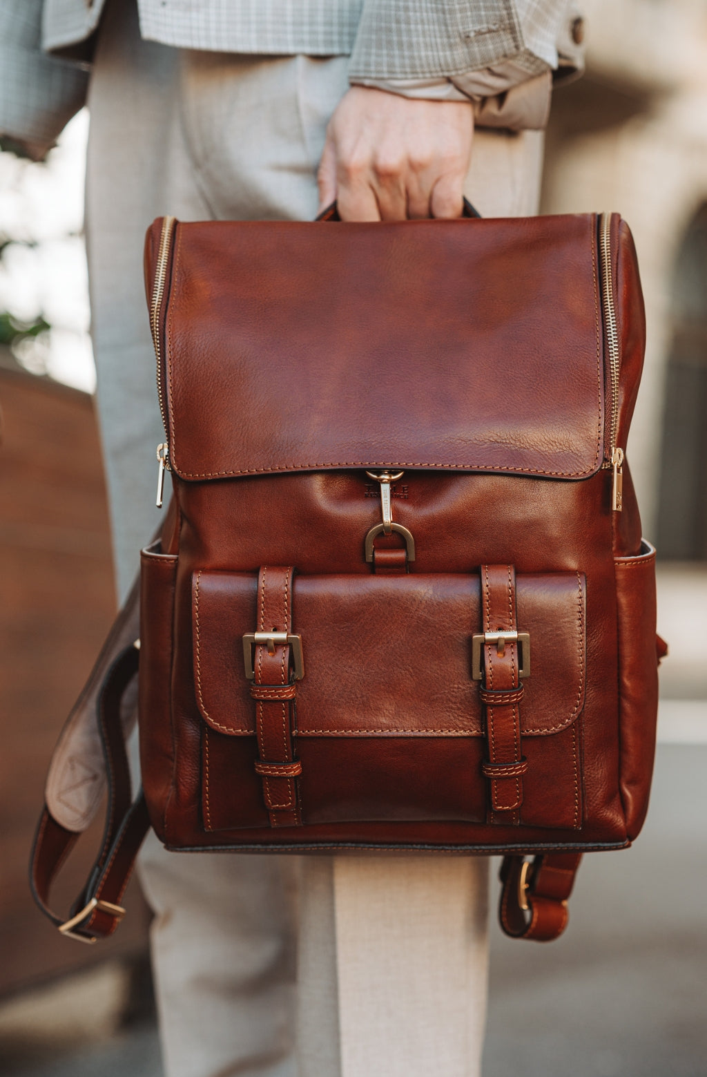 Zaino in pelle pieno fiore che unisce stile e praticità, grazie all’ampia capienza e ai dettagli studiati per garantire il massimo comfort. La scelta perfetta per chi è sempre in movimento, tra viaggi, lavoro e studio.
