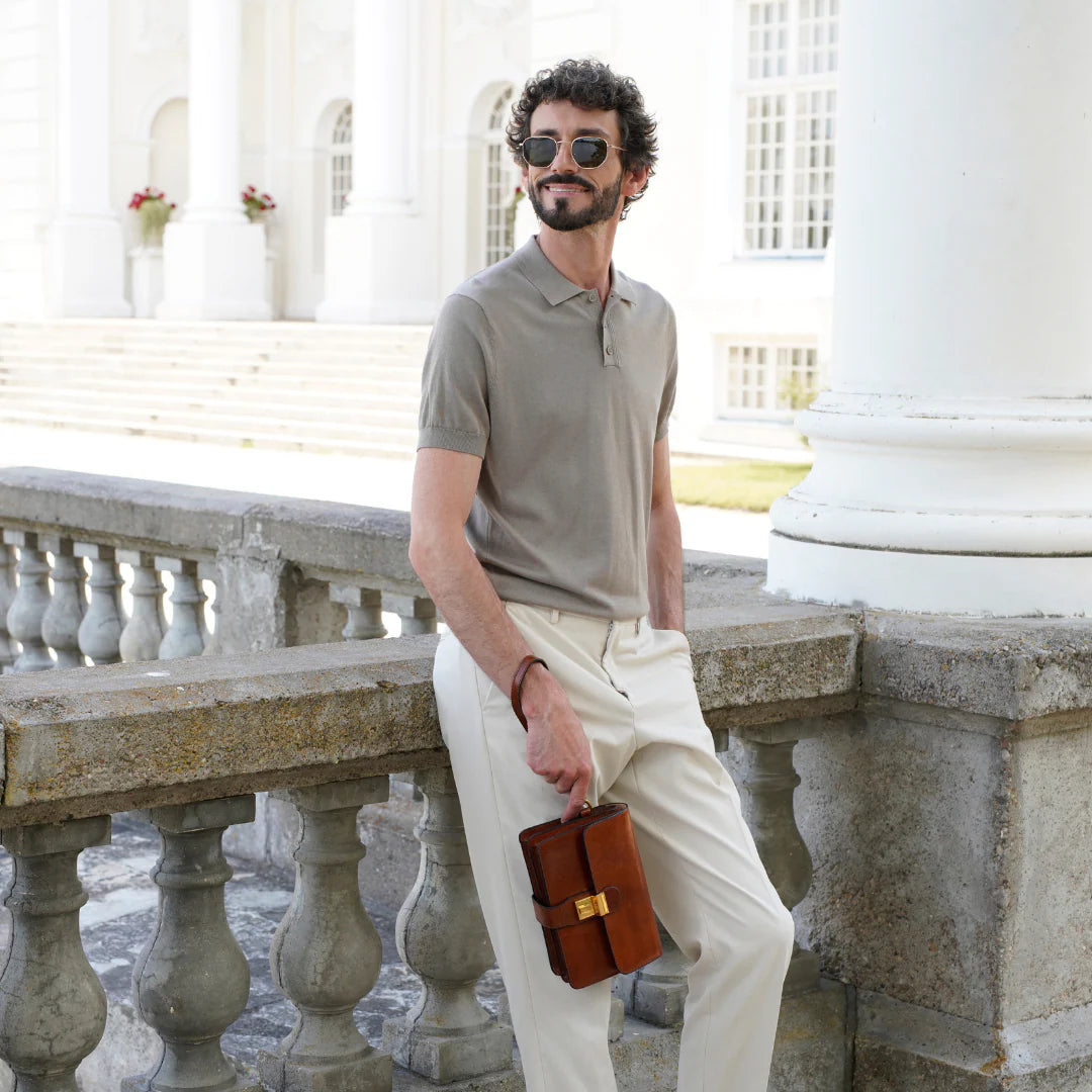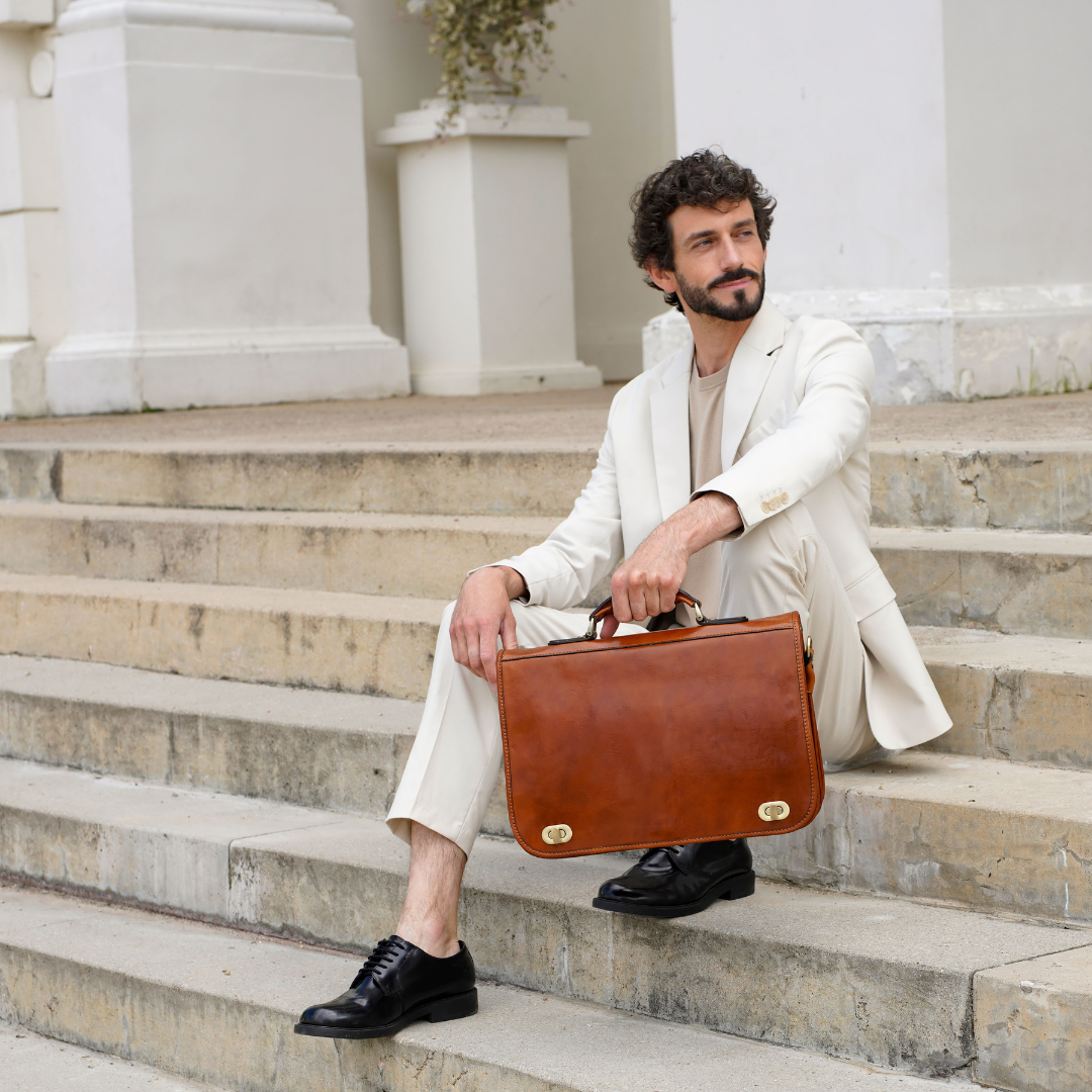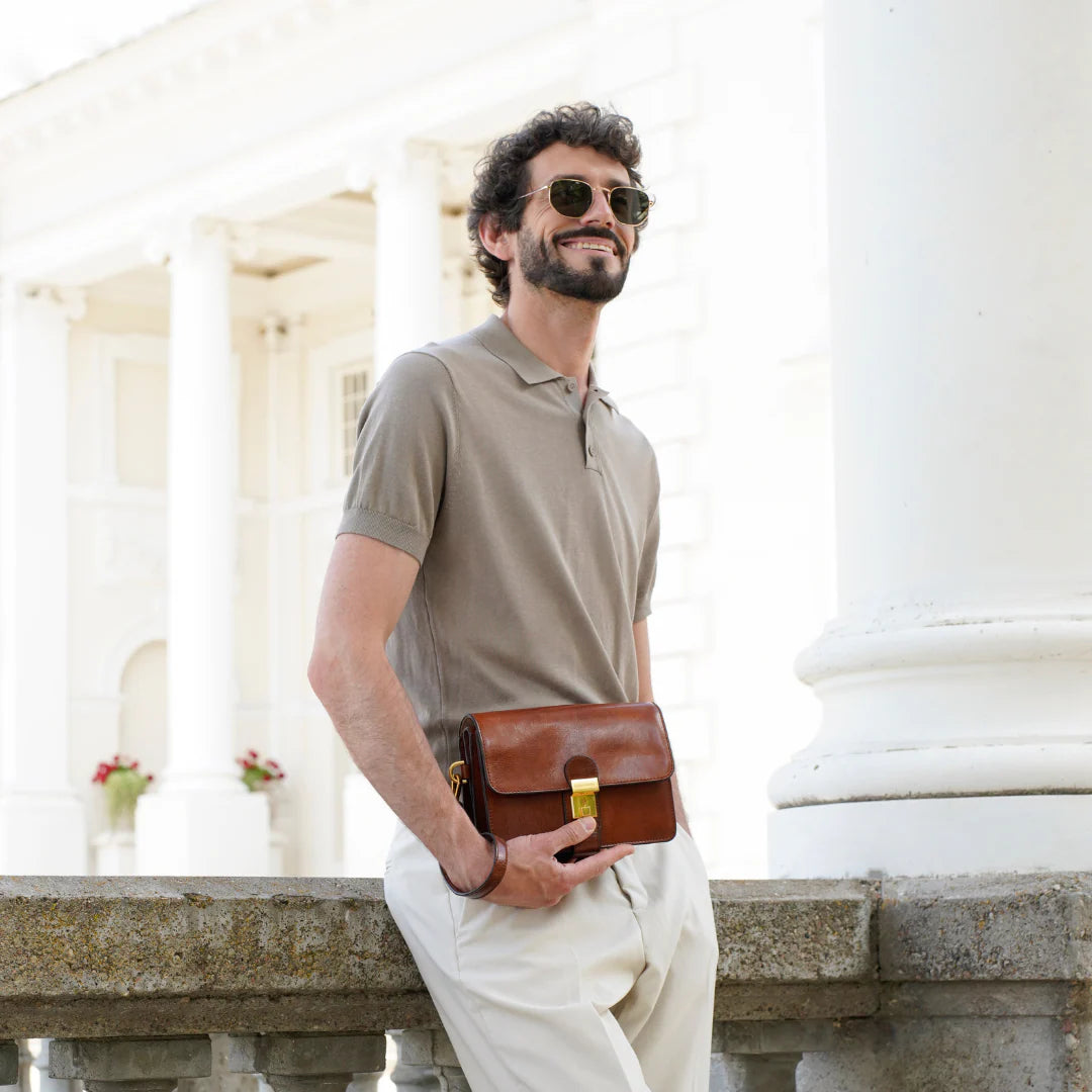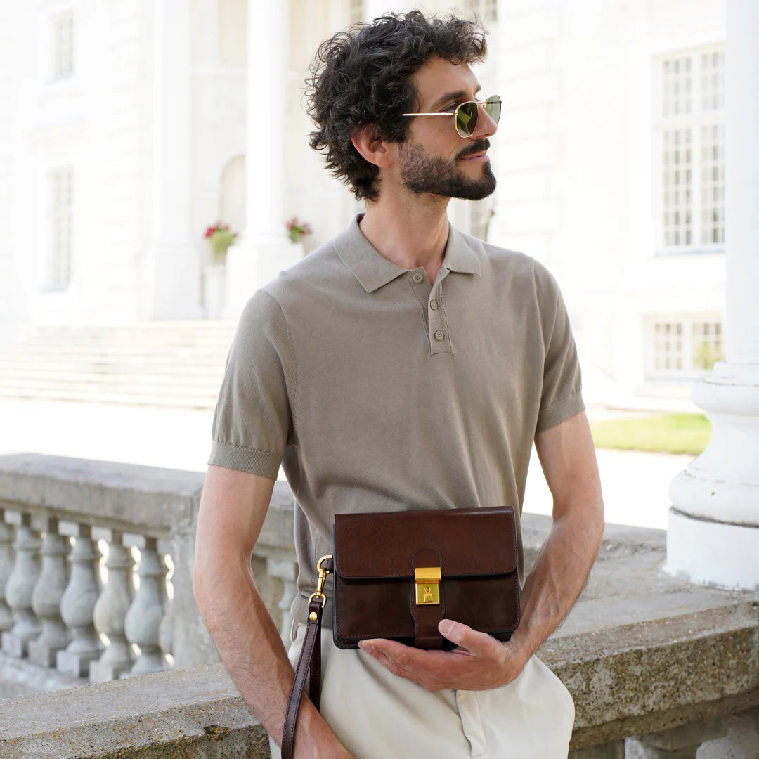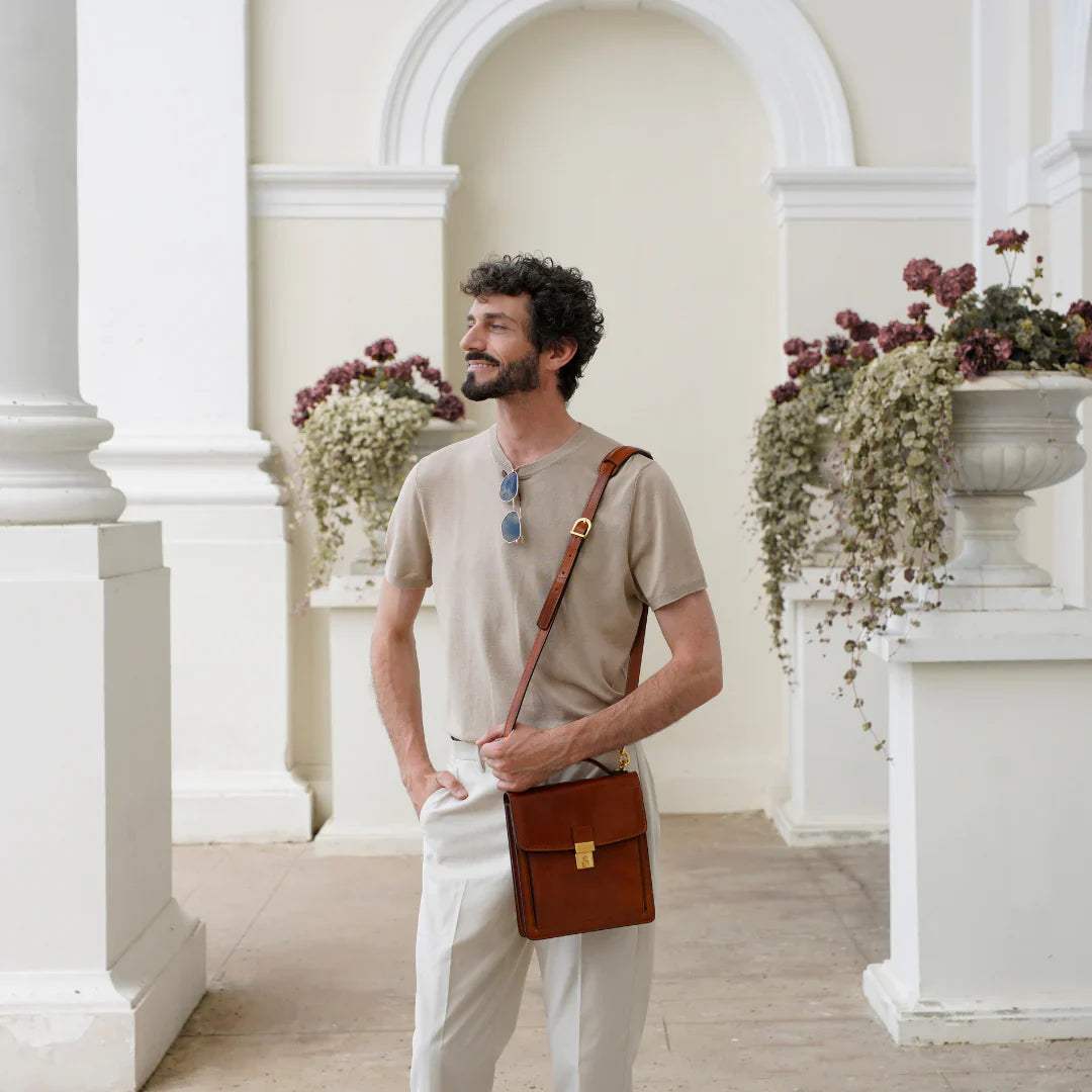 Questa primavera celebriamo un nuovo tipo d'amore: quello che si crea con la propria borsa. Il nostro ultimo servizio fotografico rende omaggio a questo legame speciale che supera tempo e spazio. Le nostre borse in pelle non sono semplici accessori. Sono compagne, custodi, presenze affini. Riflettono la bellezza interiore e raccontano lo stile esteriore. Accompagnano i momenti spensierati e quelli più complessi, tra gioie e malinconie, tra impegni e libertà. Sono quelle presenze che infondono vitalità e completezza Il servizio cattura la magia della primavera: la freschezza dell’aria, il calore del sole, il ritmo vibrante della città. Il modello incarna eleganza e fascino, con un completo che rispecchia l’anima della sua borsa e il suo stato d’animo. Lo sfondo gioca tra luci e ombre, un equilibrio sottile tra modernità e memoria. Il servizio fotografico rivela un romanticismo autentico: quello tra la persona e la propria borsa. A volte non serve altro per sentirsi bene. Basta essere con sé stessi e con la propria borsa. Che si dia inizio, allora, a un passione di primavera con le nostre borse in pelle.