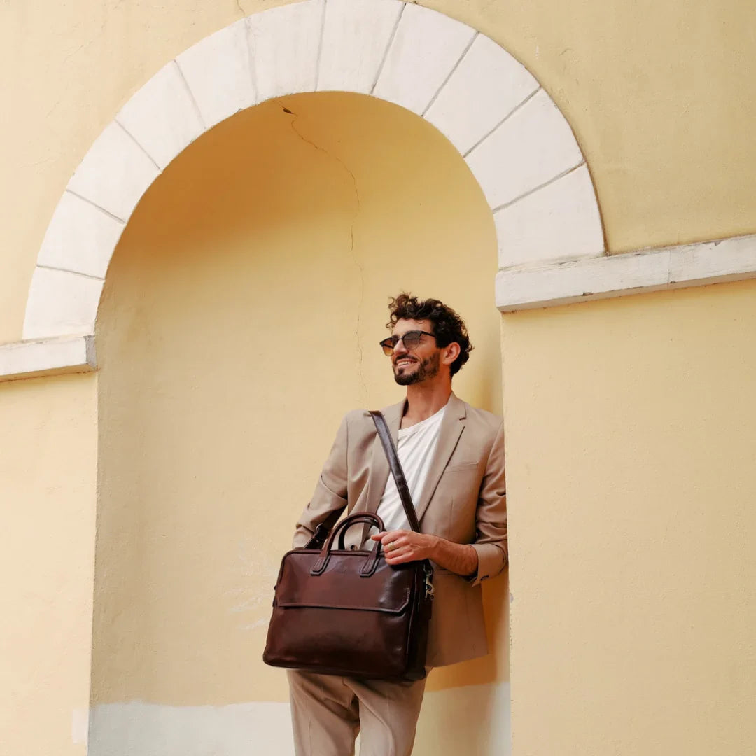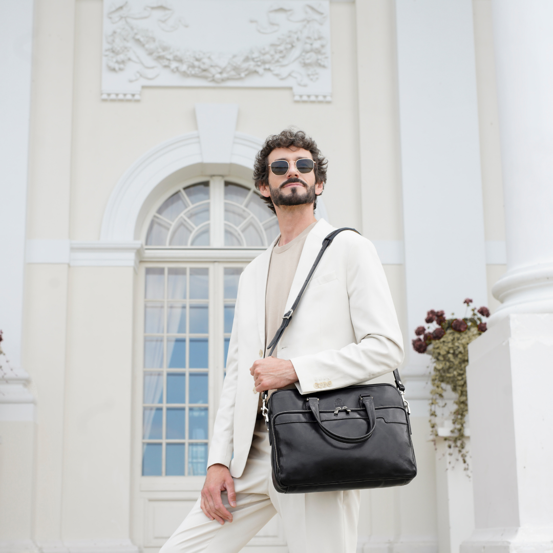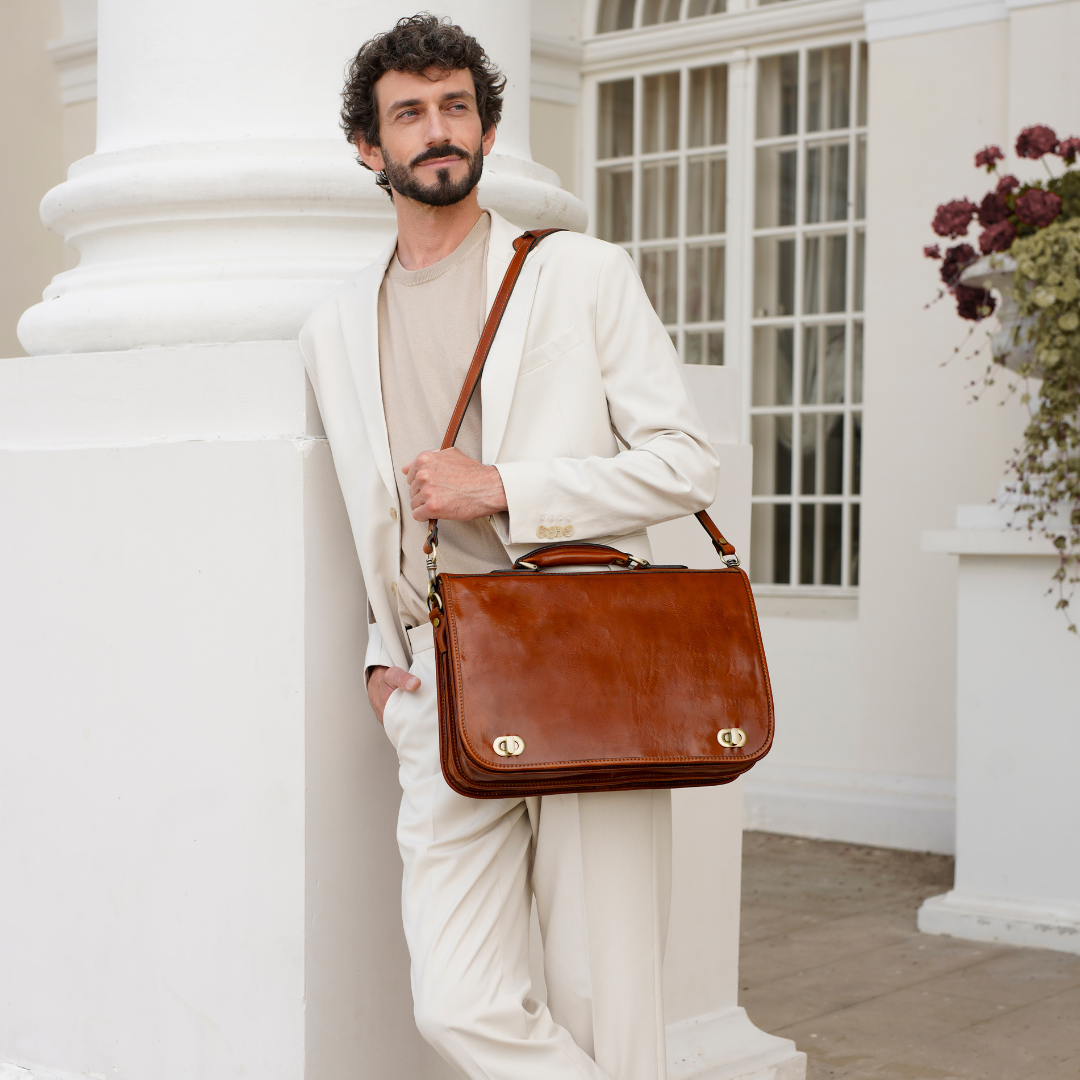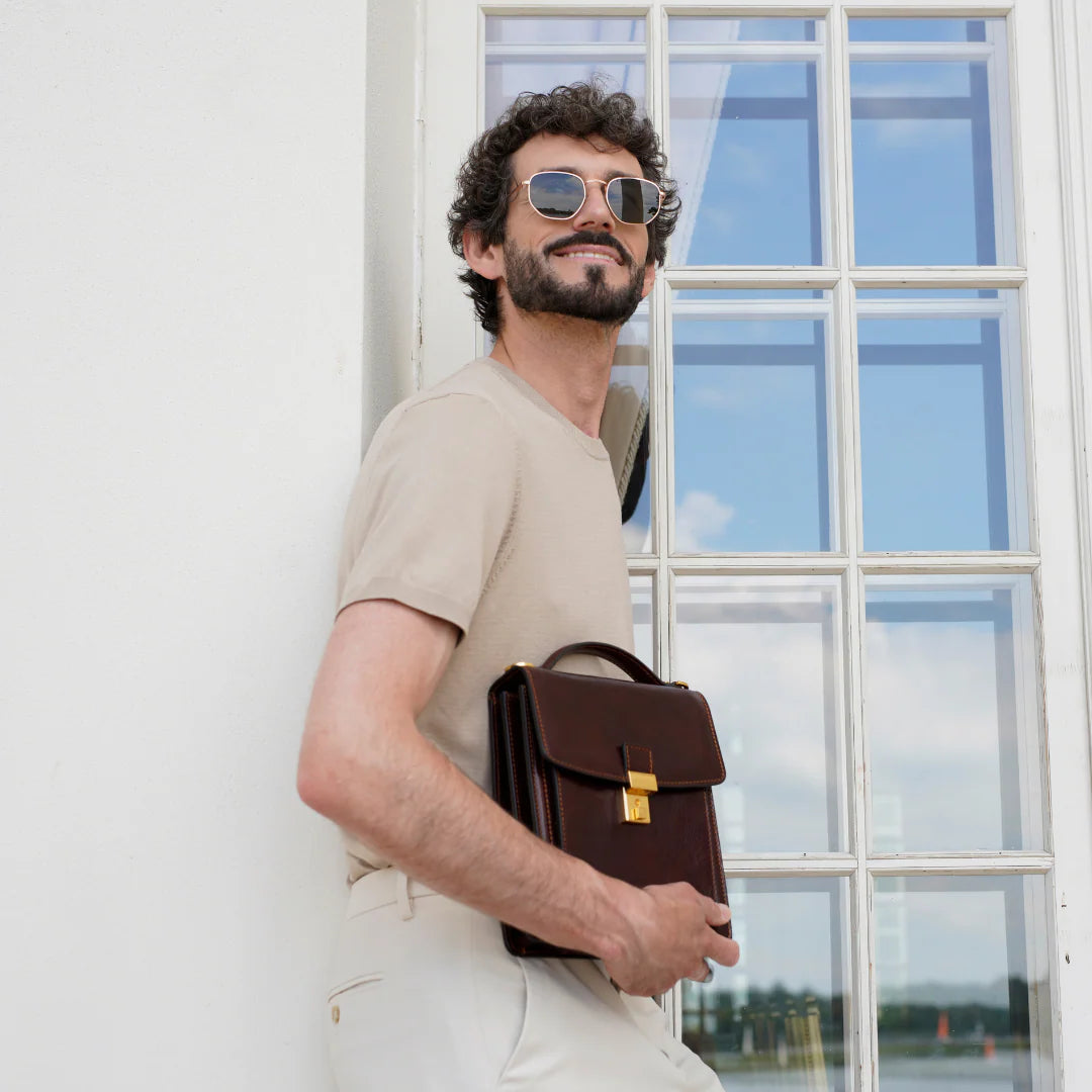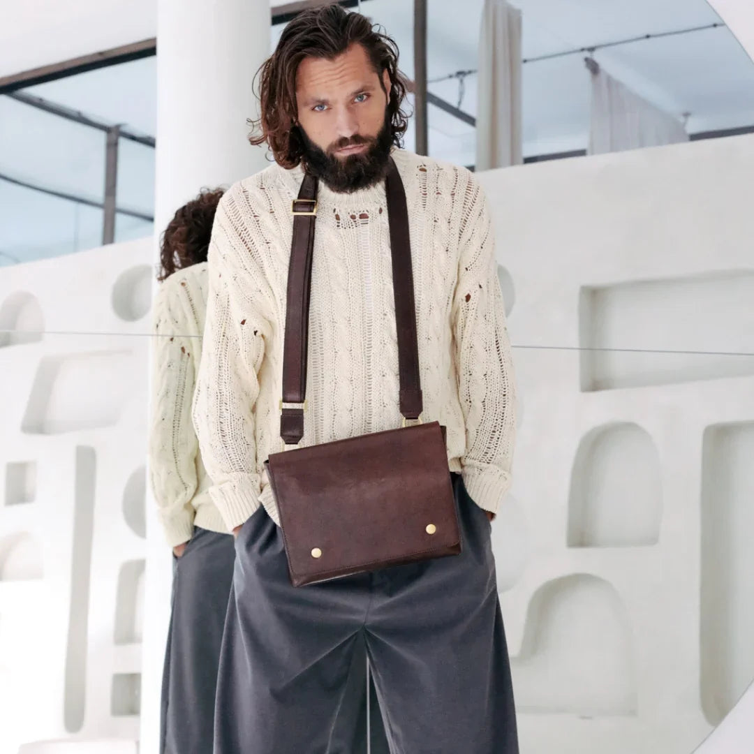Questa primavera celebriamo un nuovo tipo d'amore: quello che si crea con la propria borsa. Il nostro ultimo servizio fotografico rende omaggio a questo legame speciale che supera tempo e spazio. Le nostre borse in pelle non sono semplici accessori. Sono compagne, custodi, presenze affini. Riflettono la bellezza interiore e raccontano lo stile esteriore. Accompagnano i momenti spensierati e quelli più complessi, tra gioie e malinconie, tra impegni e libertà. Sono quelle presenze che infondono vitalità e completezza Il servizio cattura la magia della primavera: la freschezza dell’aria, il calore del sole, il ritmo vibrante della città. Il modello incarna eleganza e fascino, con un completo che rispecchia l’anima della sua borsa e il suo stato d’animo. Lo sfondo gioca tra luci e ombre, un equilibrio sottile tra modernità e memoria. Il servizio fotografico rivela un romanticismo autentico: quello tra la persona e la propria borsa. A volte non serve altro per sentirsi bene. Basta essere con sé stessi e con la propria borsa. Che si dia inizio, allora, a un passione di primavera con le nostre borse in pelle.