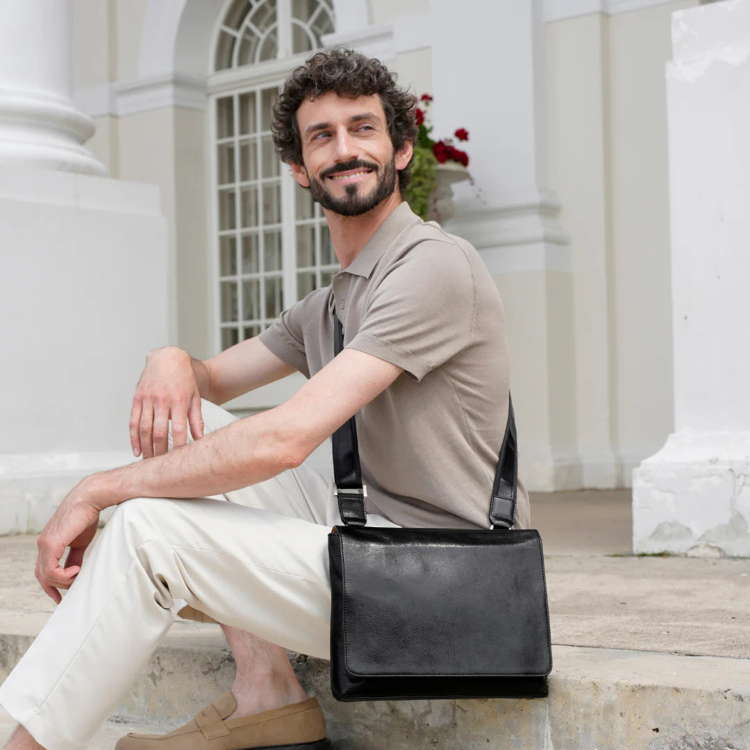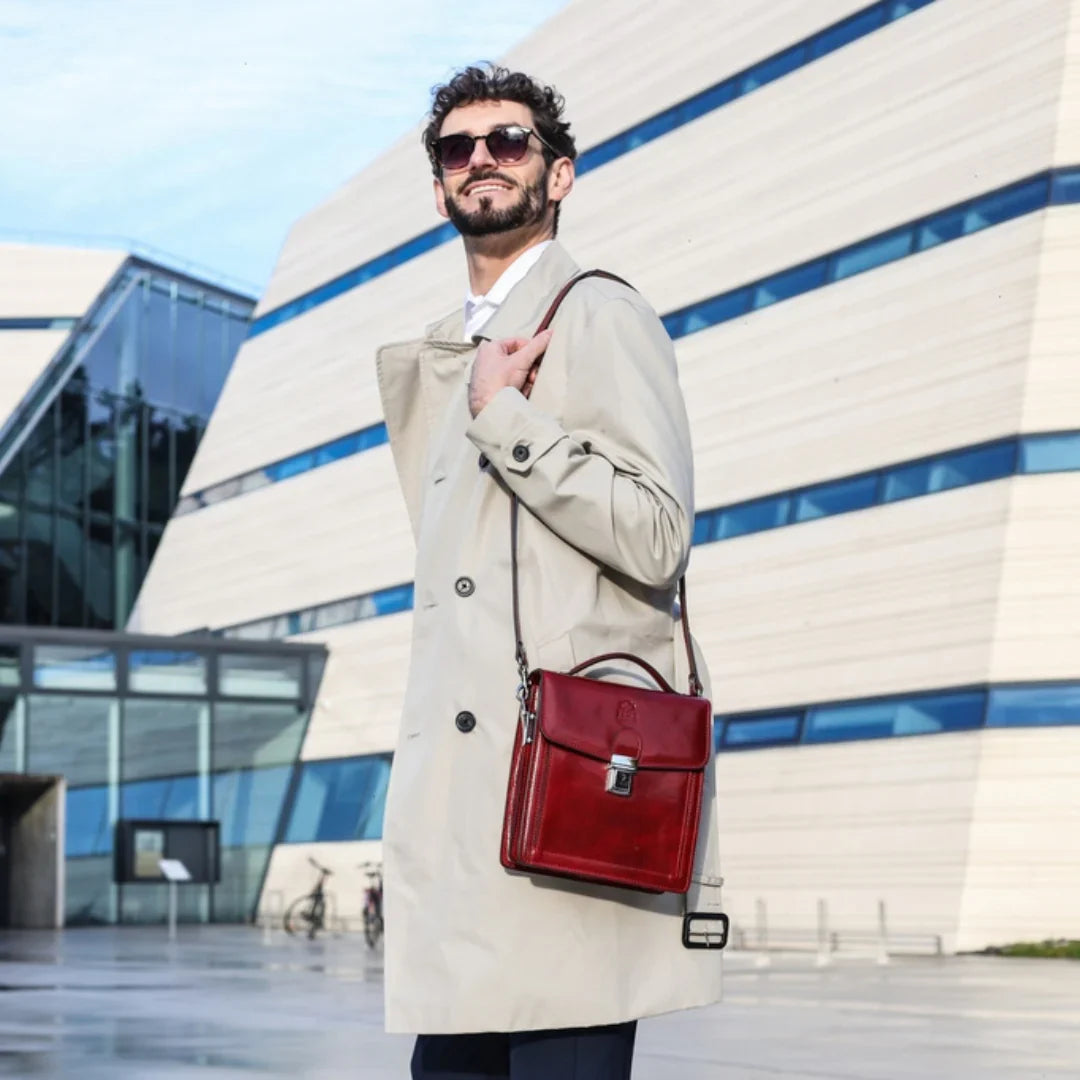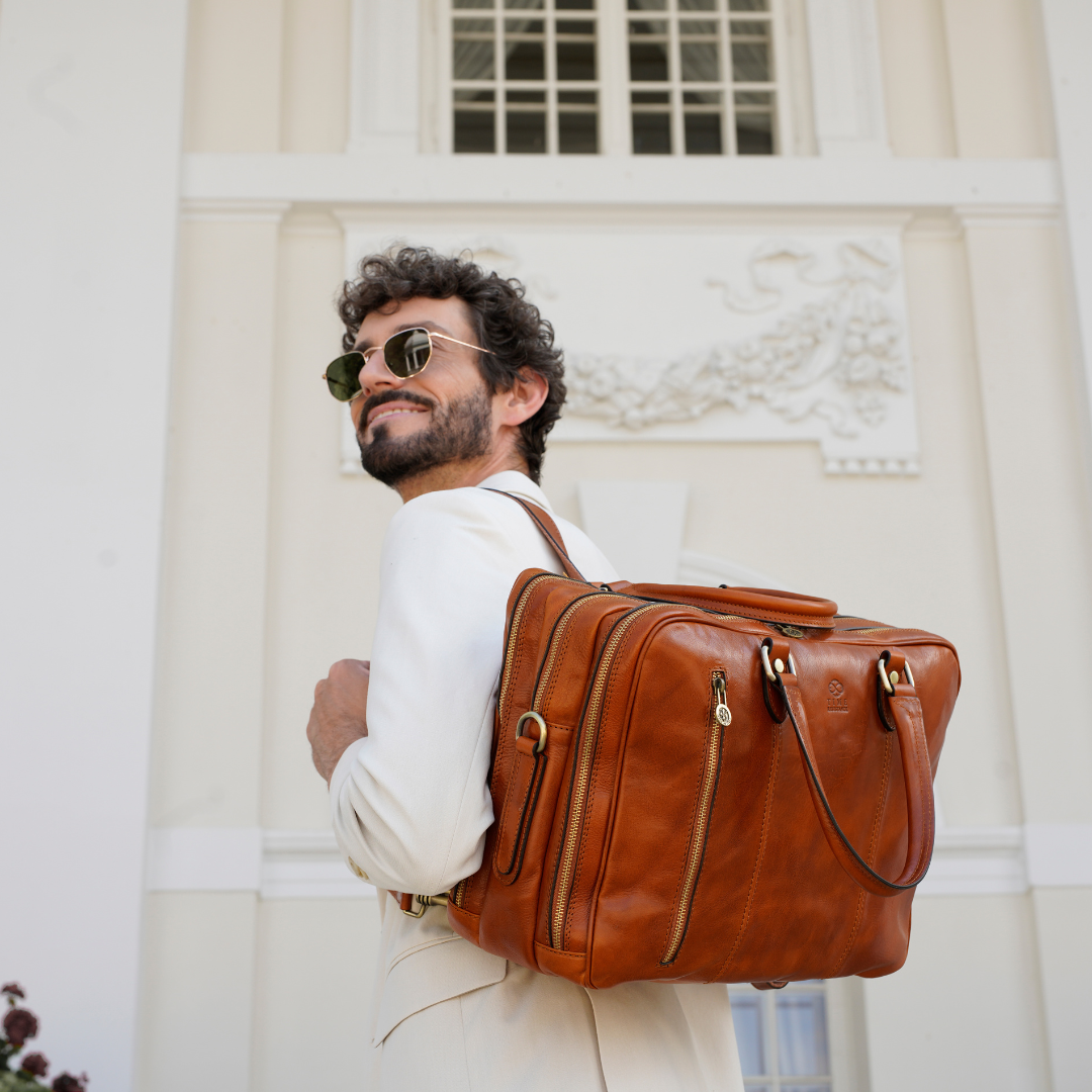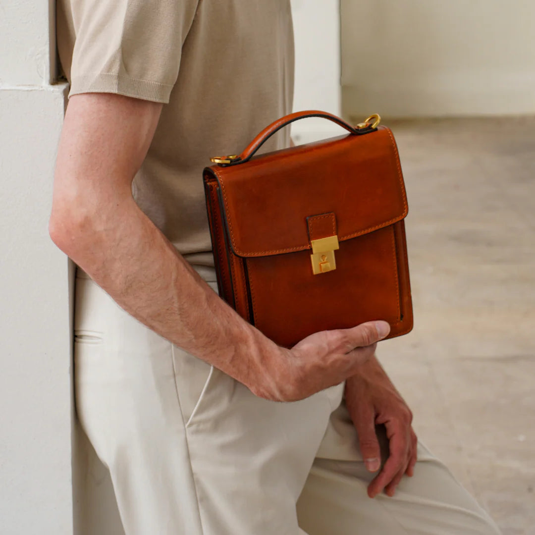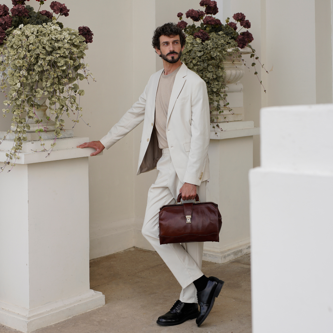 Questa primavera celebriamo un nuovo tipo d'amore: quello che si crea con la propria borsa. Il nostro ultimo servizio fotografico rende omaggio a questo legame speciale che supera tempo e spazio. Le nostre borse in pelle non sono semplici accessori. Sono compagne, custodi, presenze affini. Riflettono la bellezza interiore e raccontano lo stile esteriore. Accompagnano i momenti spensierati e quelli più complessi, tra gioie e malinconie, tra impegni e libertà. Sono quelle presenze che infondono vitalità e completezza Il servizio cattura la magia della primavera: la freschezza dell’aria, il calore del sole, il ritmo vibrante della città. Il modello incarna eleganza e fascino, con un completo che rispecchia l’anima della sua borsa e il suo stato d’animo. Lo sfondo gioca tra luci e ombre, un equilibrio sottile tra modernità e memoria. Il servizio fotografico rivela un romanticismo autentico: quello tra la persona e la propria borsa. A volte non serve altro per sentirsi bene. Basta essere con sé stessi e con la propria borsa. Che si dia inizio, allora, a un passione di primavera con le nostre borse in pelle.