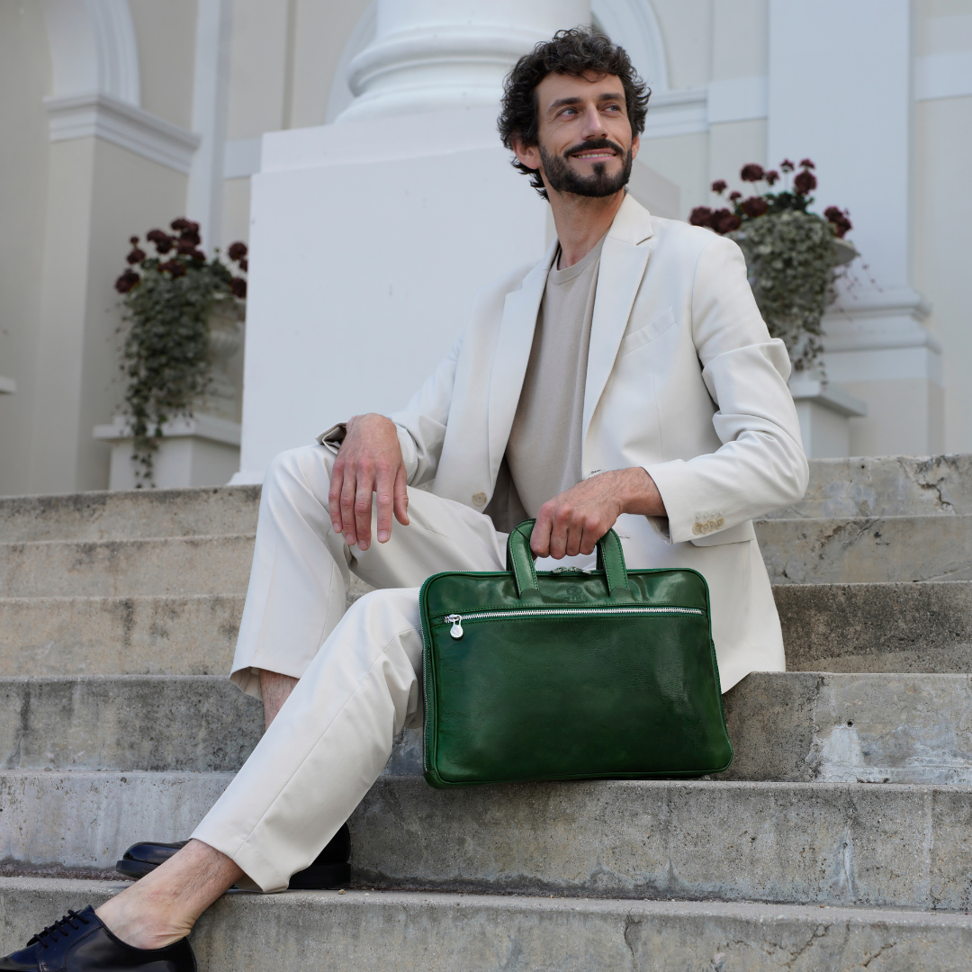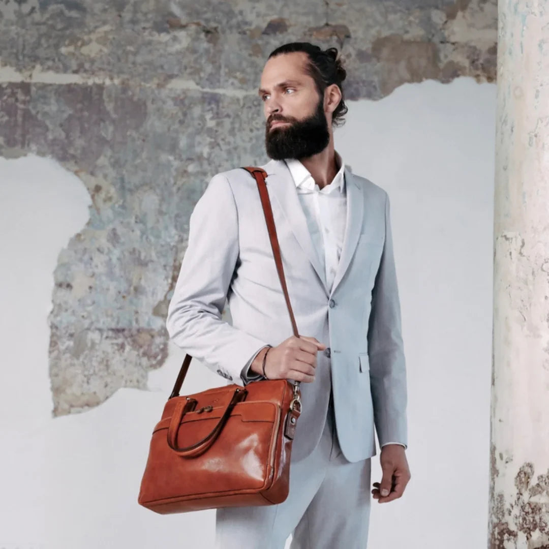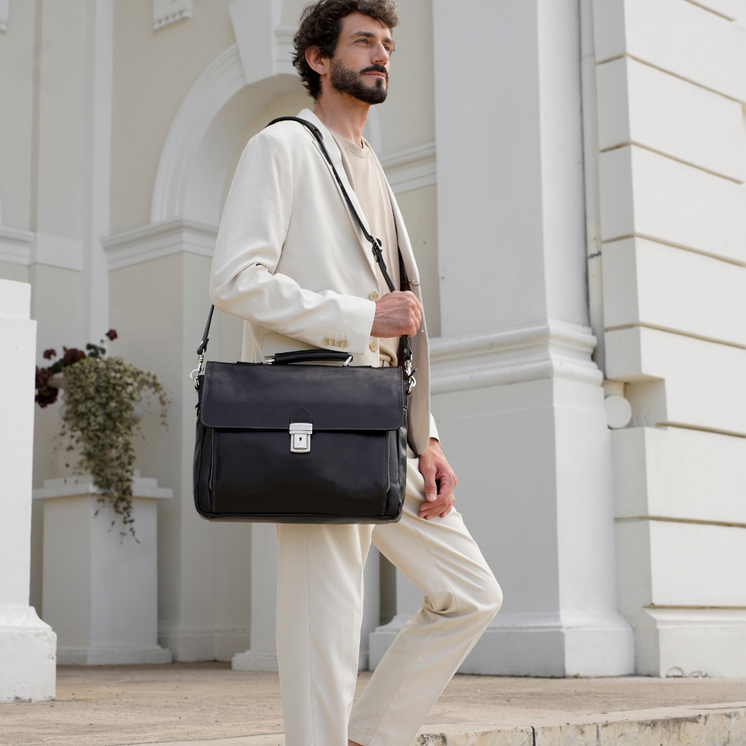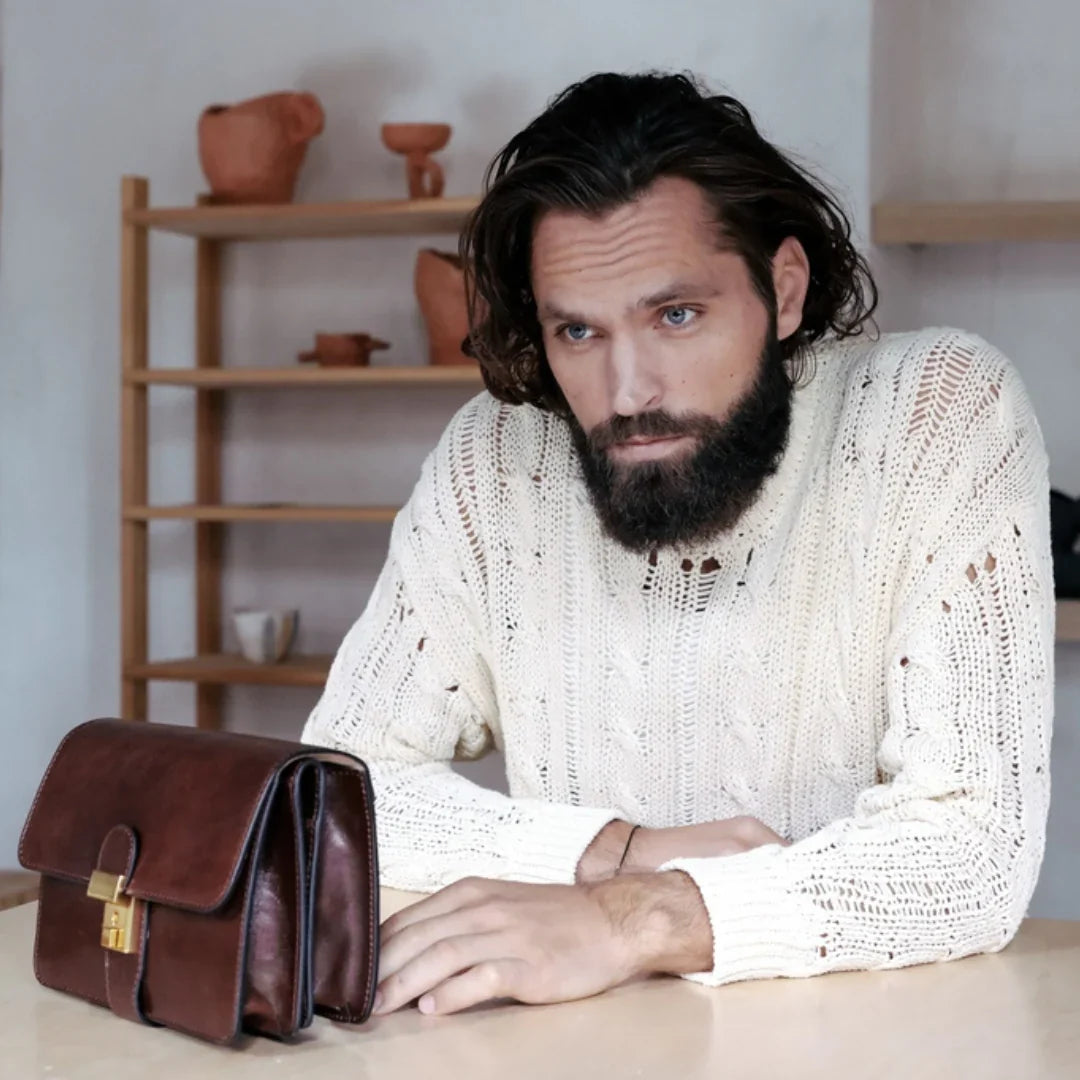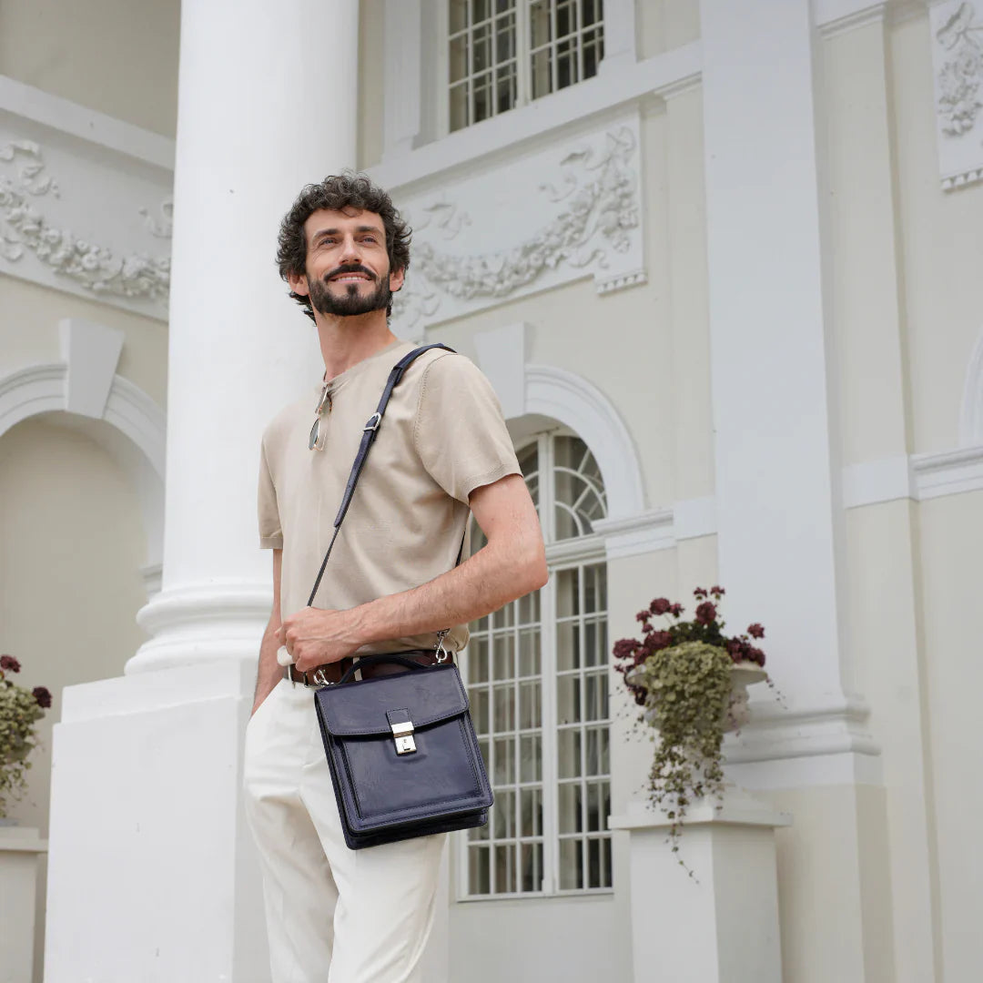 Questa primavera celebriamo un nuovo tipo d'amore: quello che si crea con la propria borsa. Il nostro ultimo servizio fotografico rende omaggio a questo legame speciale che supera tempo e spazio. Le nostre borse in pelle non sono semplici accessori. Sono compagne, custodi, presenze affini. Riflettono la bellezza interiore e raccontano lo stile esteriore. Accompagnano i momenti spensierati e quelli più complessi, tra gioie e malinconie, tra impegni e libertà. Sono quelle presenze che infondono vitalità e completezza Il servizio cattura la magia della primavera: la freschezza dell’aria, il calore del sole, il ritmo vibrante della città. Il modello incarna eleganza e fascino, con un completo che rispecchia l’anima della sua borsa e il suo stato d’animo. Lo sfondo gioca tra luci e ombre, un equilibrio sottile tra modernità e memoria. Il servizio fotografico rivela un romanticismo autentico: quello tra la persona e la propria borsa. A volte non serve altro per sentirsi bene. Basta essere con sé stessi e con la propria borsa. Che si dia inizio, allora, a un passione di primavera con le nostre borse in pelle.