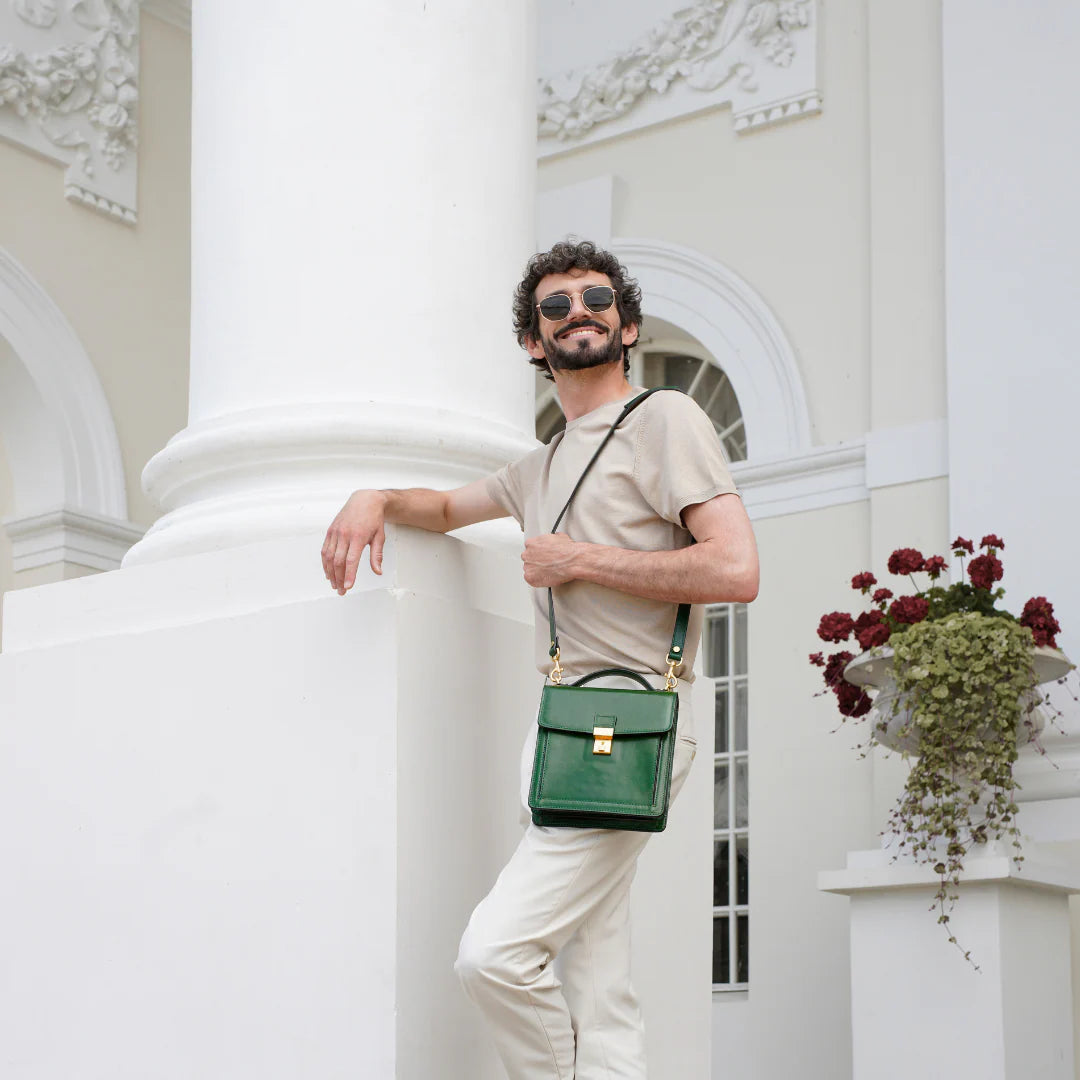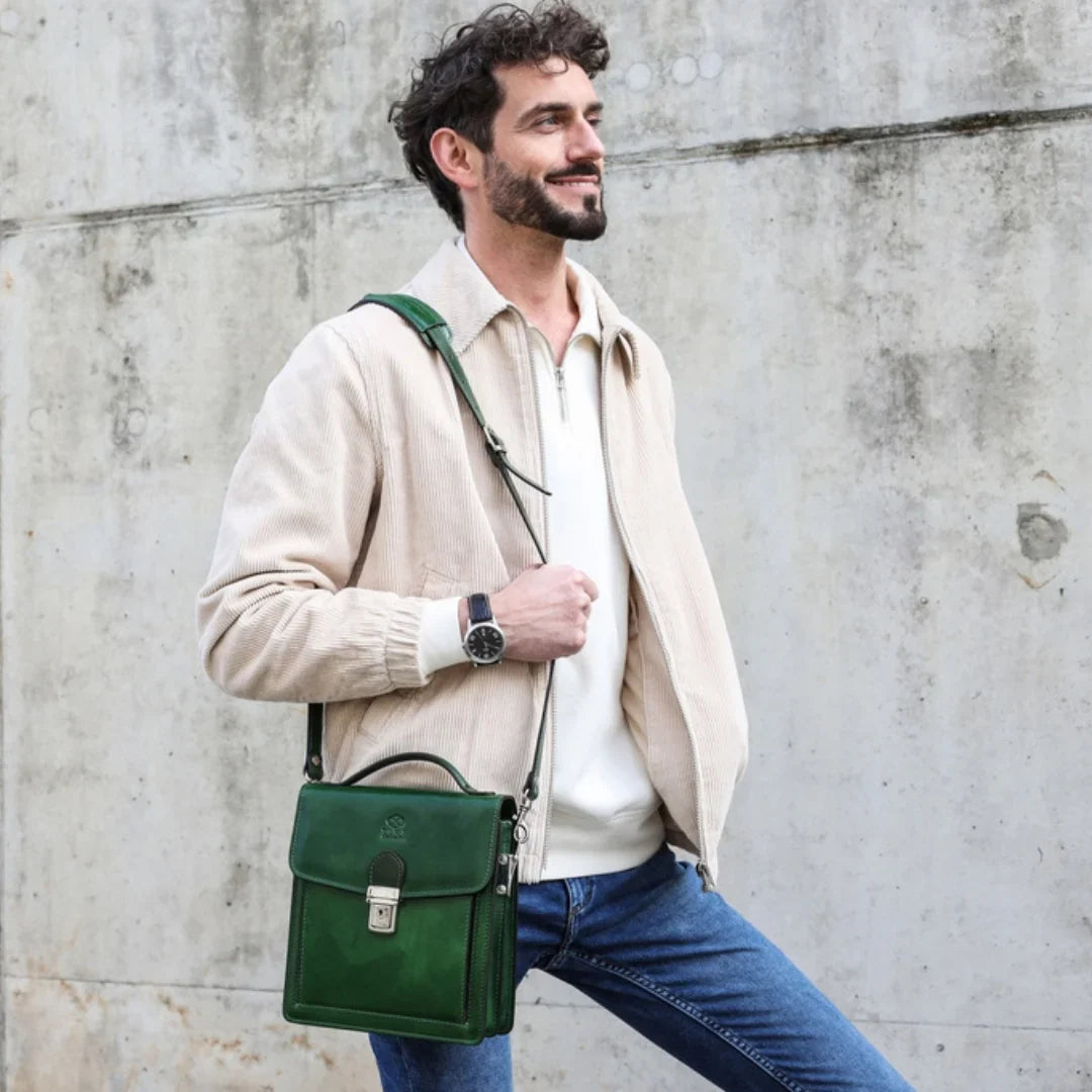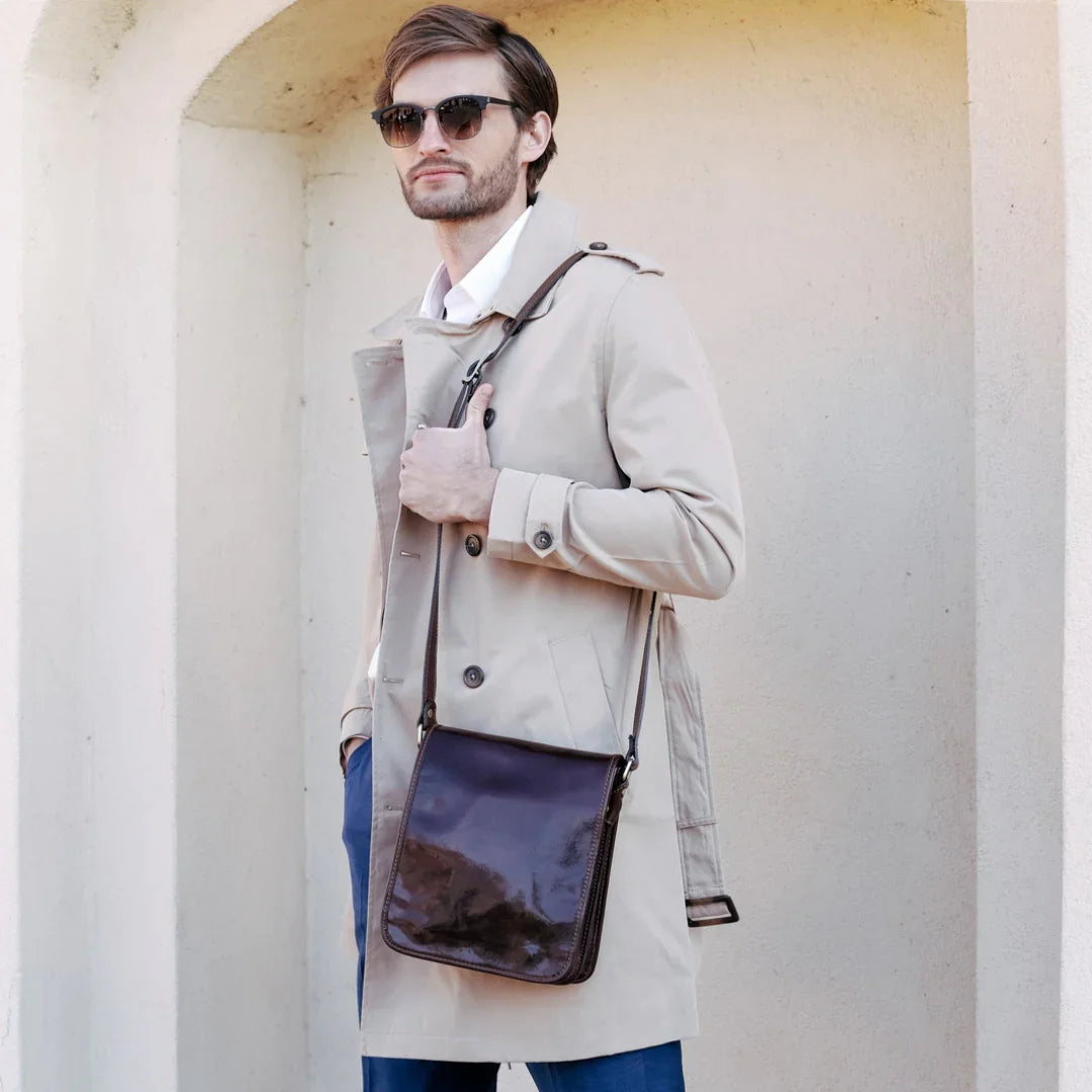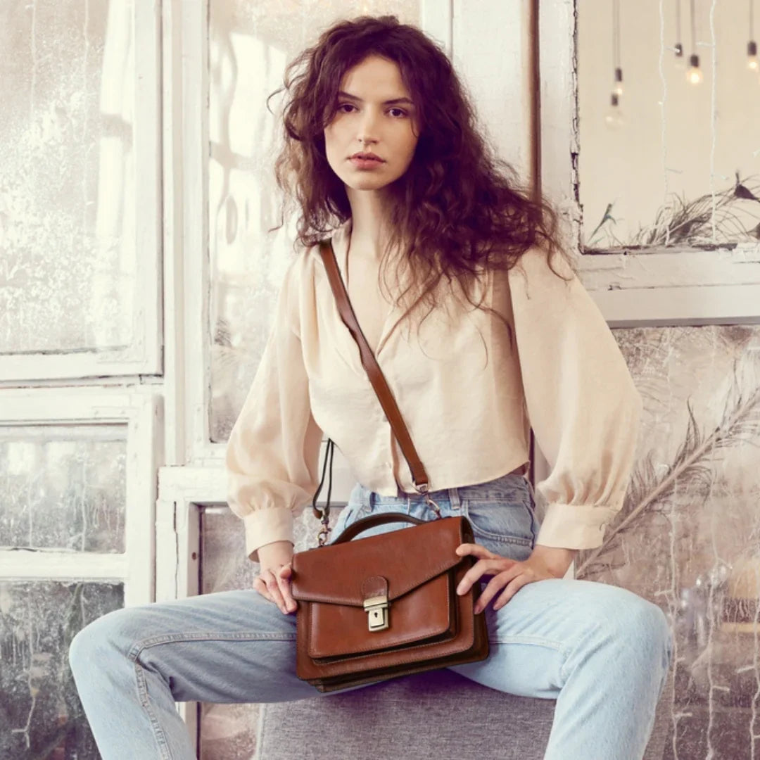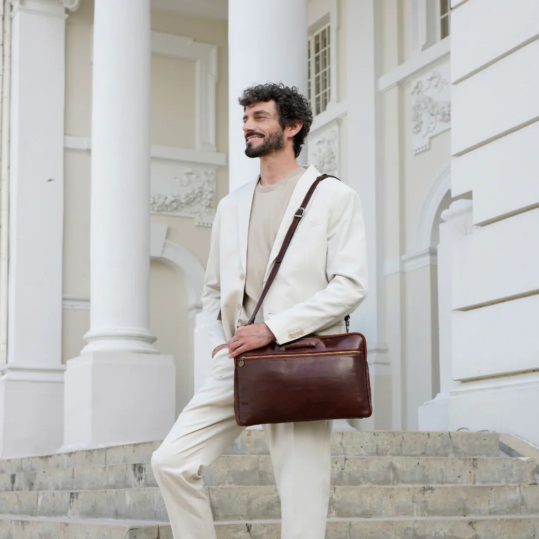 Questa primavera celebriamo un nuovo tipo d'amore: quello che si crea con la propria borsa. Il nostro ultimo servizio fotografico rende omaggio a questo legame speciale che supera tempo e spazio. Le nostre borse in pelle non sono semplici accessori. Sono compagne, custodi, presenze affini. Riflettono la bellezza interiore e raccontano lo stile esteriore. Accompagnano i momenti spensierati e quelli più complessi, tra gioie e malinconie, tra impegni e libertà. Sono quelle presenze che infondono vitalità e completezza Il servizio cattura la magia della primavera: la freschezza dell’aria, il calore del sole, il ritmo vibrante della città. Il modello incarna eleganza e fascino, con un completo che rispecchia l’anima della sua borsa e il suo stato d’animo. Lo sfondo gioca tra luci e ombre, un equilibrio sottile tra modernità e memoria. Il servizio fotografico rivela un romanticismo autentico: quello tra la persona e la propria borsa. A volte non serve altro per sentirsi bene. Basta essere con sé stessi e con la propria borsa. Che si dia inizio, allora, a un passione di primavera con le nostre borse in pelle.
