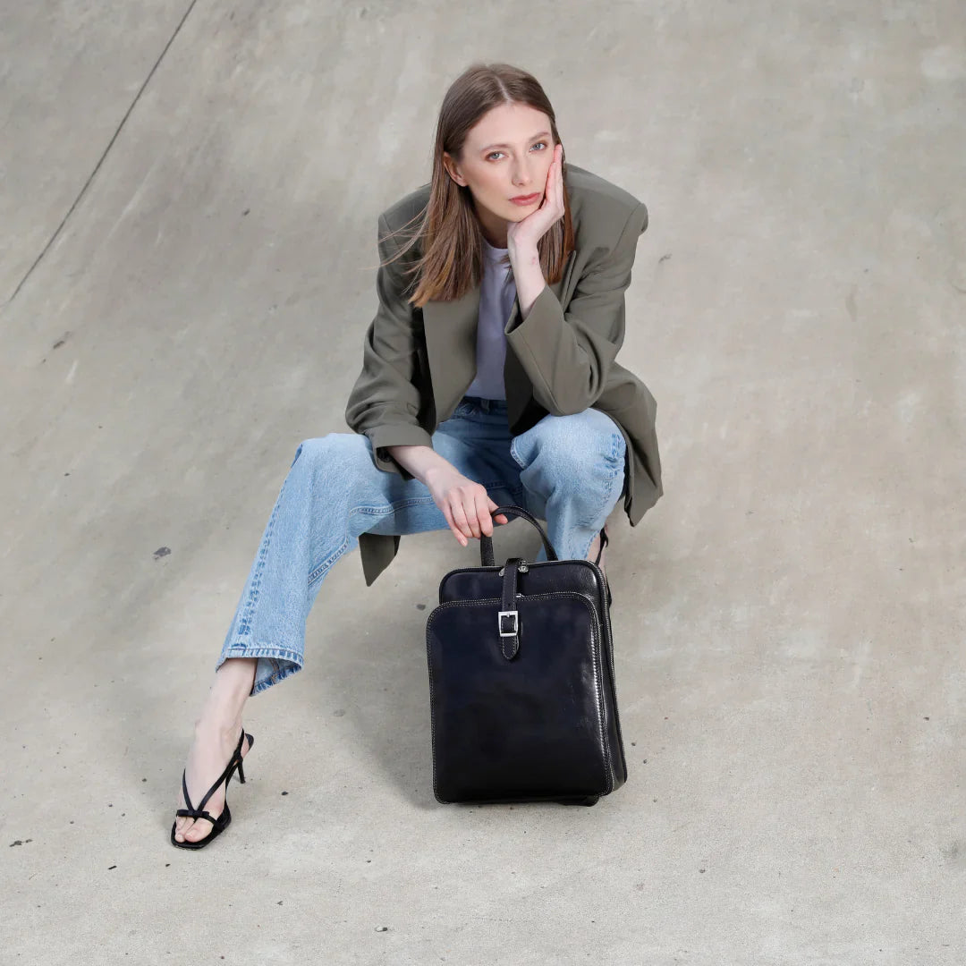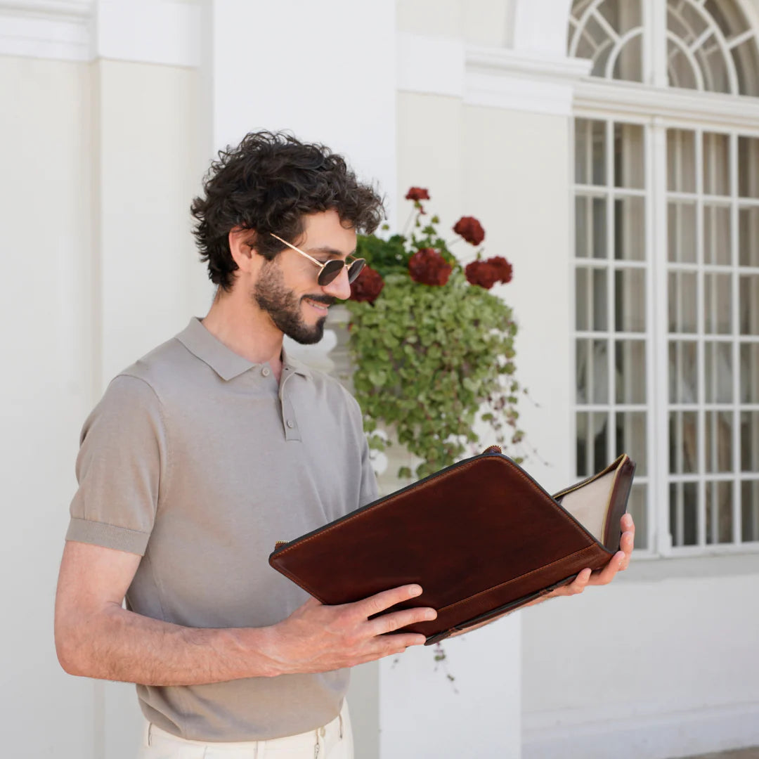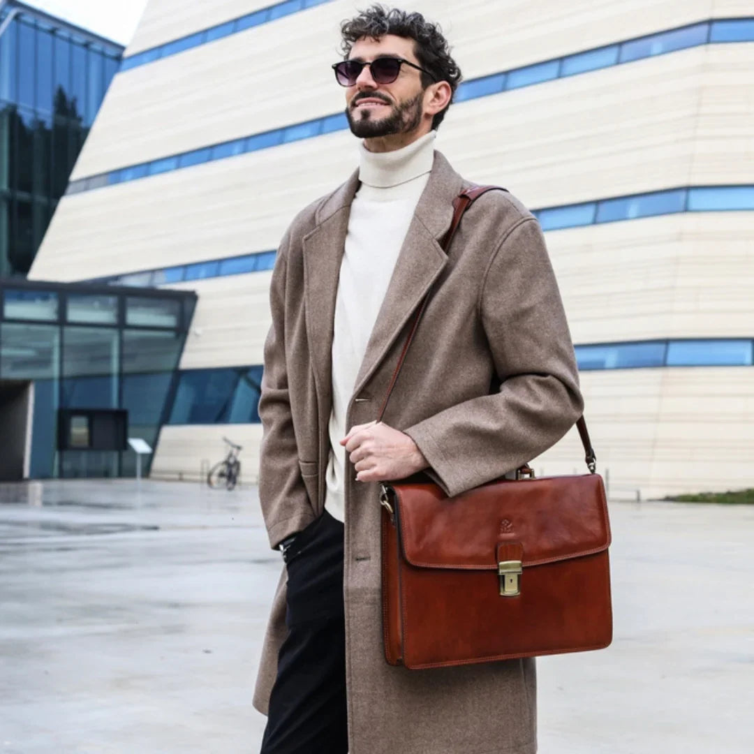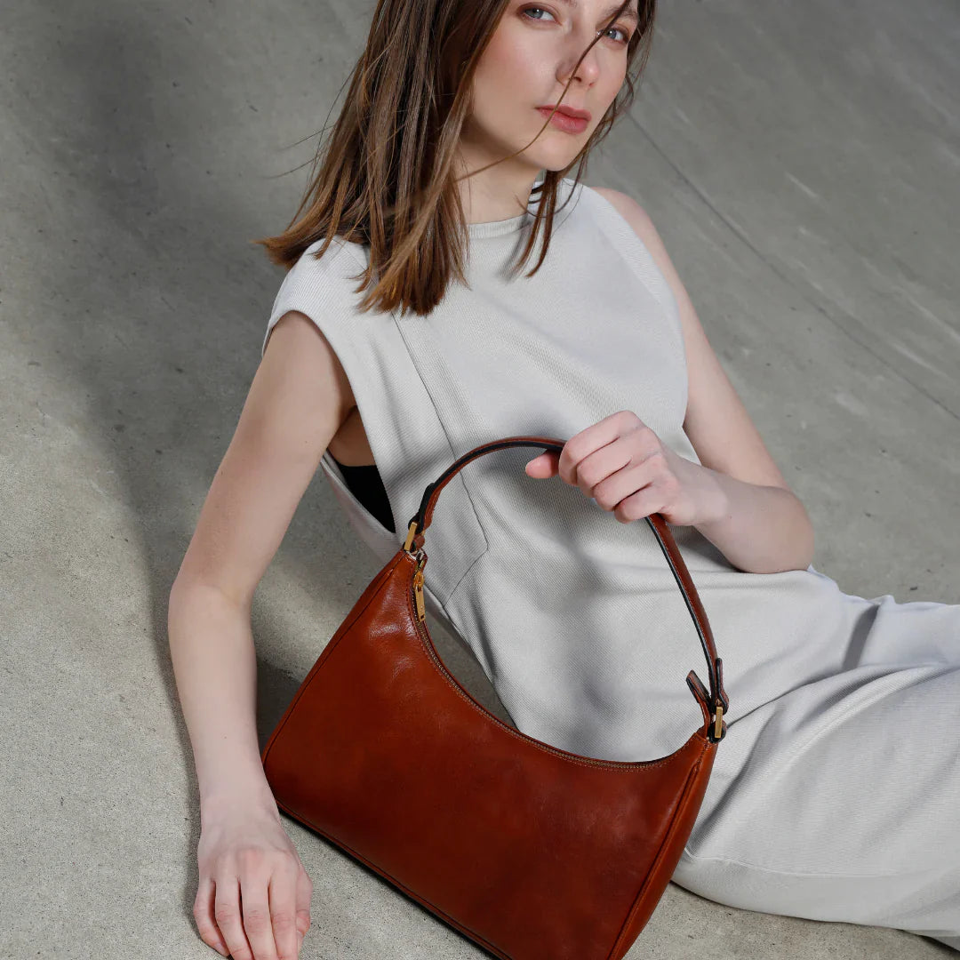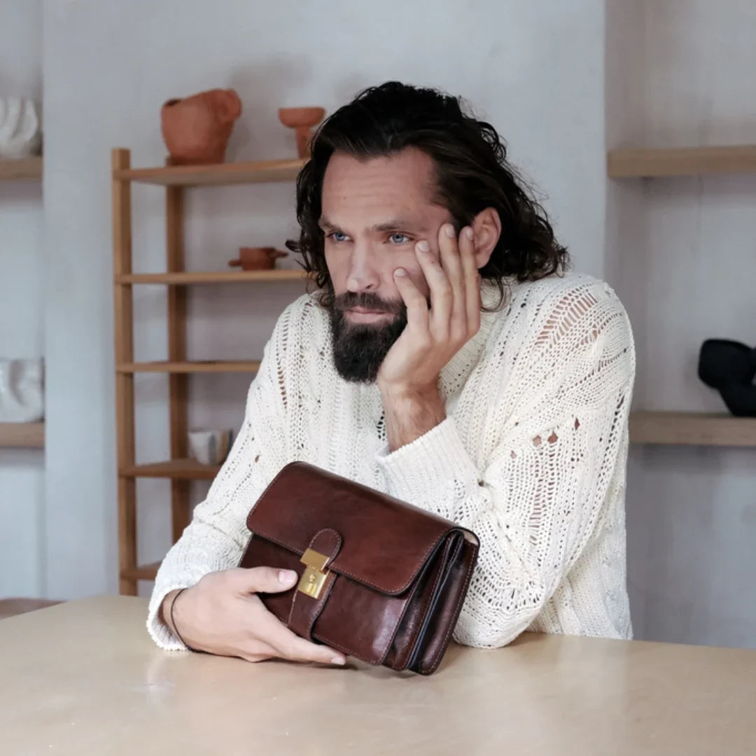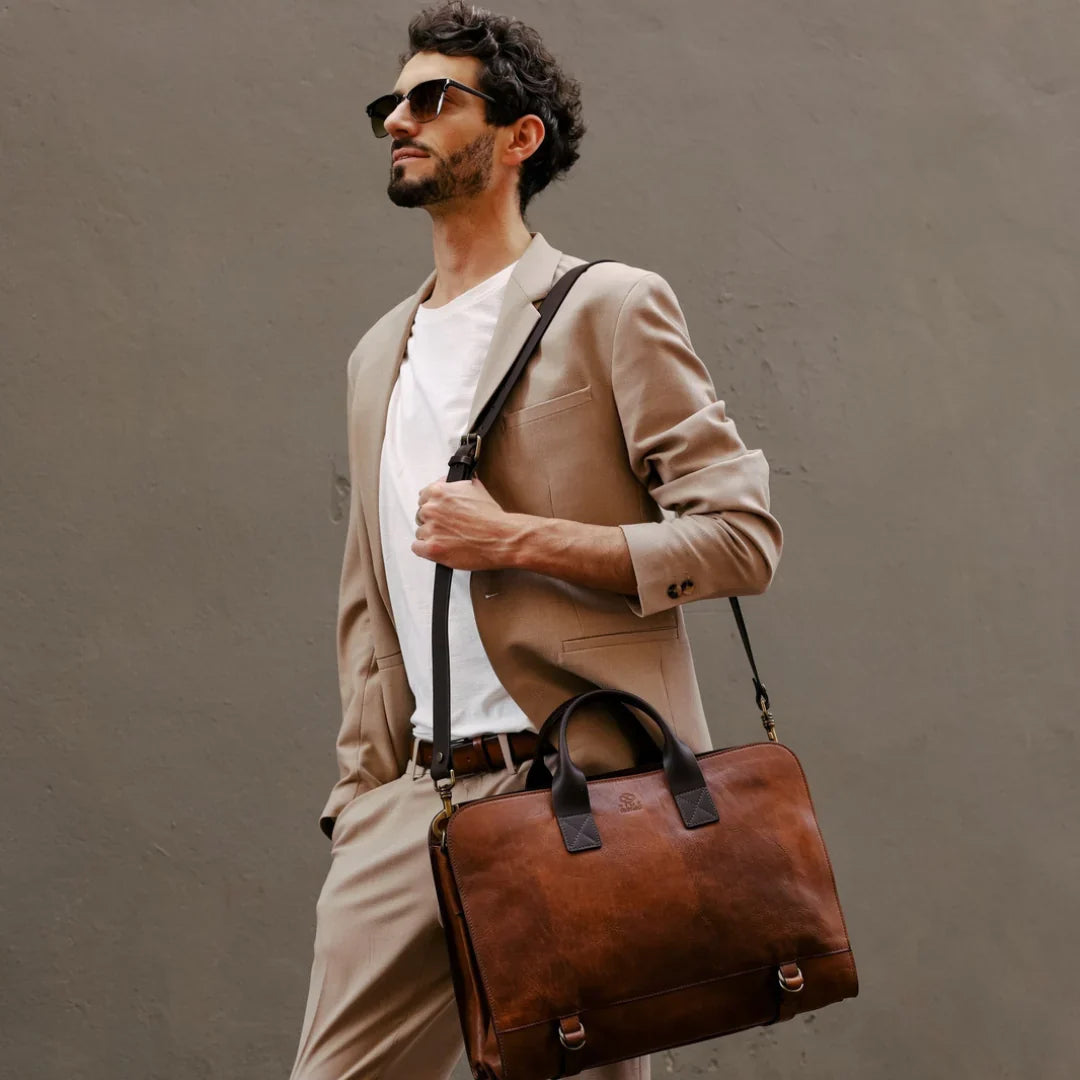 Questa primavera celebriamo un nuovo tipo d'amore: quello che si crea con la propria borsa. Il nostro ultimo servizio fotografico rende omaggio a questo legame speciale che supera tempo e spazio. Le nostre borse in pelle non sono semplici accessori. Sono compagne, custodi, presenze affini. Riflettono la bellezza interiore e raccontano lo stile esteriore. Accompagnano i momenti spensierati e quelli più complessi, tra gioie e malinconie, tra impegni e libertà. Sono quelle presenze che infondono vitalità e completezza Il servizio cattura la magia della primavera: la freschezza dell’aria, il calore del sole, il ritmo vibrante della città. Il modello incarna eleganza e fascino, con un completo che rispecchia l’anima della sua borsa e il suo stato d’animo. Lo sfondo gioca tra luci e ombre, un equilibrio sottile tra modernità e memoria. Il servizio fotografico rivela un romanticismo autentico: quello tra la persona e la propria borsa. A volte non serve altro per sentirsi bene. Basta essere con sé stessi e con la propria borsa. Che si dia inizio, allora, a un passione di primavera con le nostre borse in pelle.