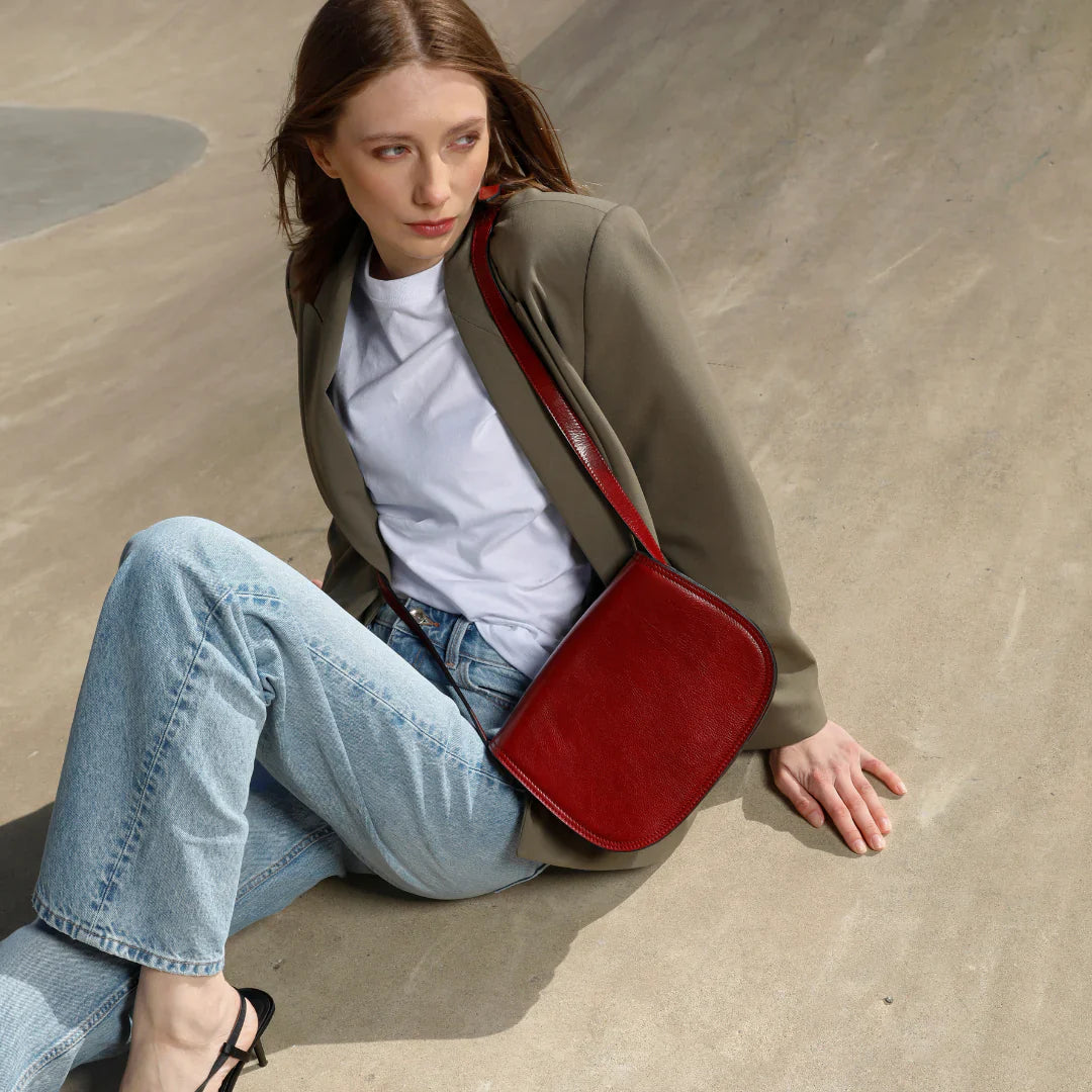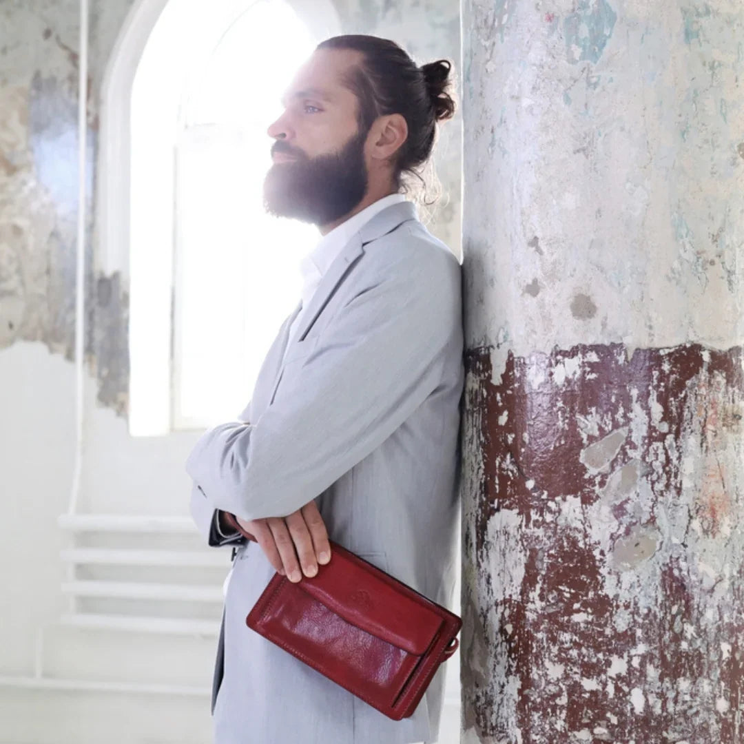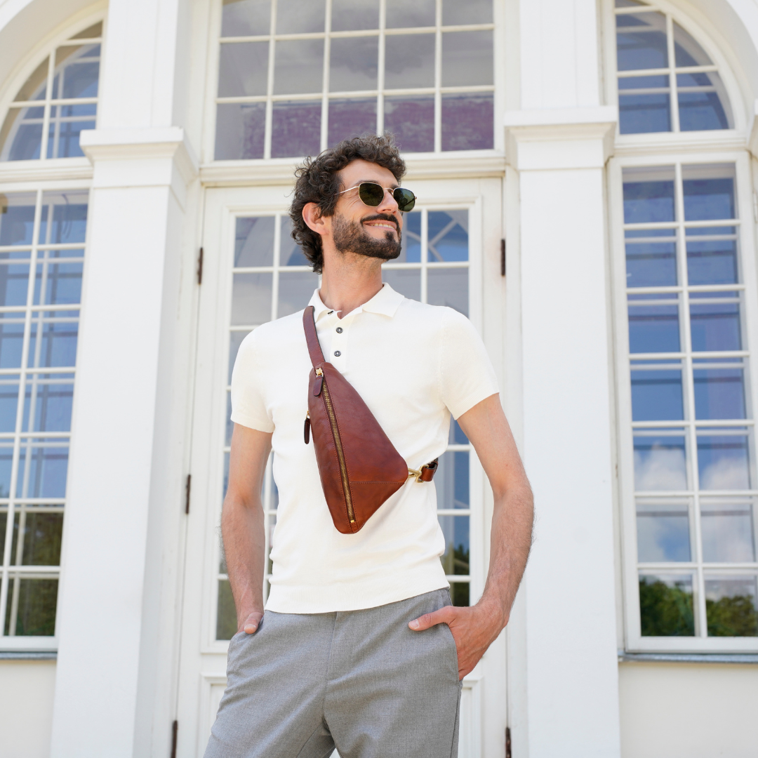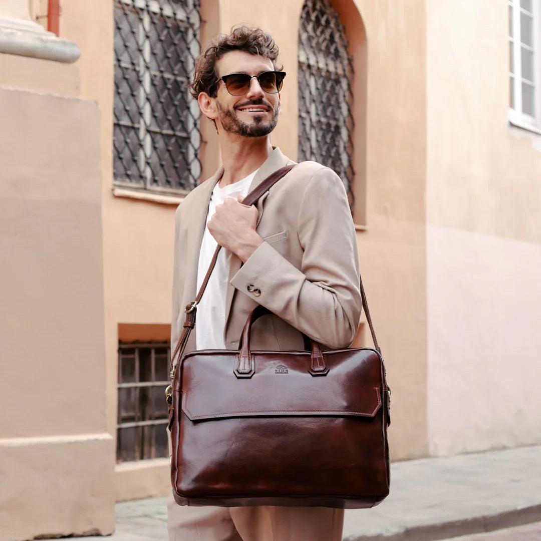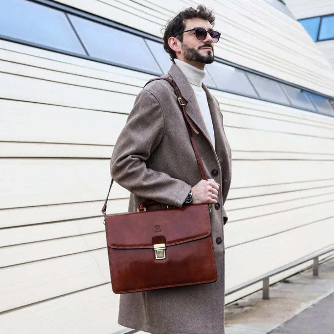 Questa primavera celebriamo un nuovo tipo d'amore: quello che si crea con la propria borsa. Il nostro ultimo servizio fotografico rende omaggio a questo legame speciale che supera tempo e spazio. Le nostre borse in pelle non sono semplici accessori. Sono compagne, custodi, presenze affini. Riflettono la bellezza interiore e raccontano lo stile esteriore. Accompagnano i momenti spensierati e quelli più complessi, tra gioie e malinconie, tra impegni e libertà. Sono quelle presenze che infondono vitalità e completezza Il servizio cattura la magia della primavera: la freschezza dell’aria, il calore del sole, il ritmo vibrante della città. Il modello incarna eleganza e fascino, con un completo che rispecchia l’anima della sua borsa e il suo stato d’animo. Lo sfondo gioca tra luci e ombre, un equilibrio sottile tra modernità e memoria. Il servizio fotografico rivela un romanticismo autentico: quello tra la persona e la propria borsa. A volte non serve altro per sentirsi bene. Basta essere con sé stessi e con la propria borsa. Che si dia inizio, allora, a un passione di primavera con le nostre borse in pelle.
