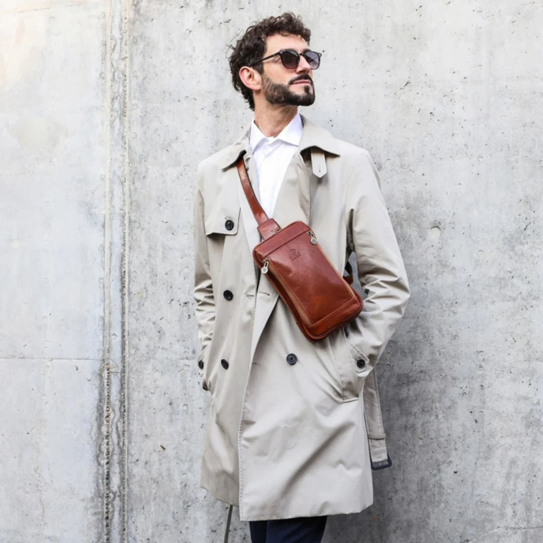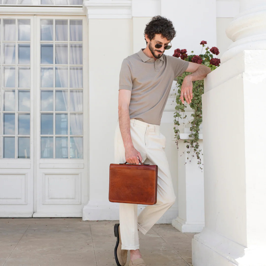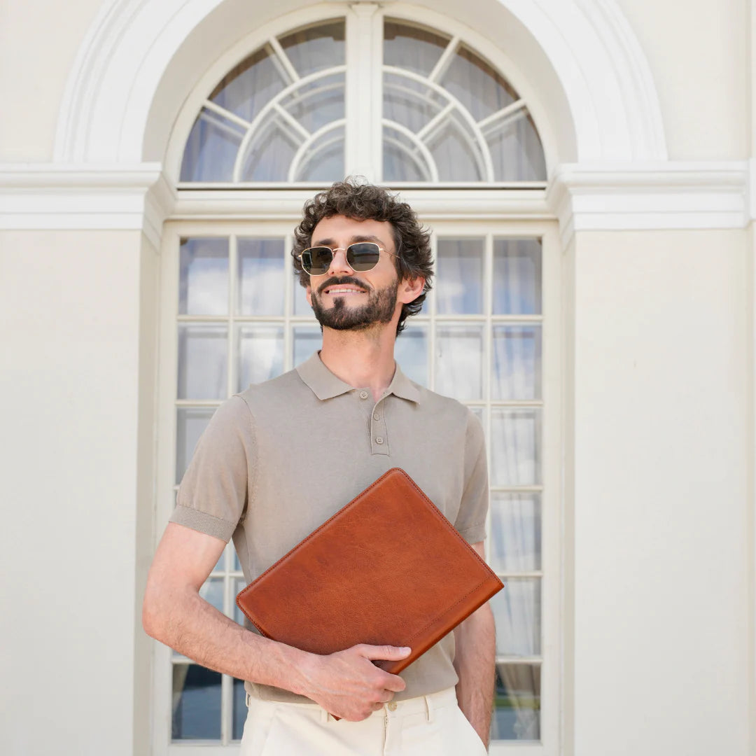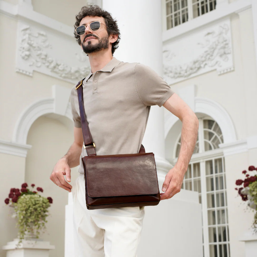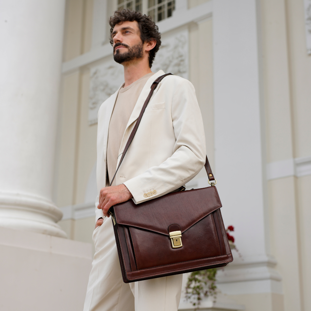 Questa primavera celebriamo un nuovo tipo d'amore: quello che si crea con la propria borsa. Il nostro ultimo servizio fotografico rende omaggio a questo legame speciale che supera tempo e spazio. Le nostre borse in pelle non sono semplici accessori. Sono compagne, custodi, presenze affini. Riflettono la bellezza interiore e raccontano lo stile esteriore. Accompagnano i momenti spensierati e quelli più complessi, tra gioie e malinconie, tra impegni e libertà. Sono quelle presenze che infondono vitalità e completezza Il servizio cattura la magia della primavera: la freschezza dell’aria, il calore del sole, il ritmo vibrante della città. Il modello incarna eleganza e fascino, con un completo che rispecchia l’anima della sua borsa e il suo stato d’animo. Lo sfondo gioca tra luci e ombre, un equilibrio sottile tra modernità e memoria. Il servizio fotografico rivela un romanticismo autentico: quello tra la persona e la propria borsa. A volte non serve altro per sentirsi bene. Basta essere con sé stessi e con la propria borsa. Che si dia inizio, allora, a un passione di primavera con le nostre borse in pelle.
