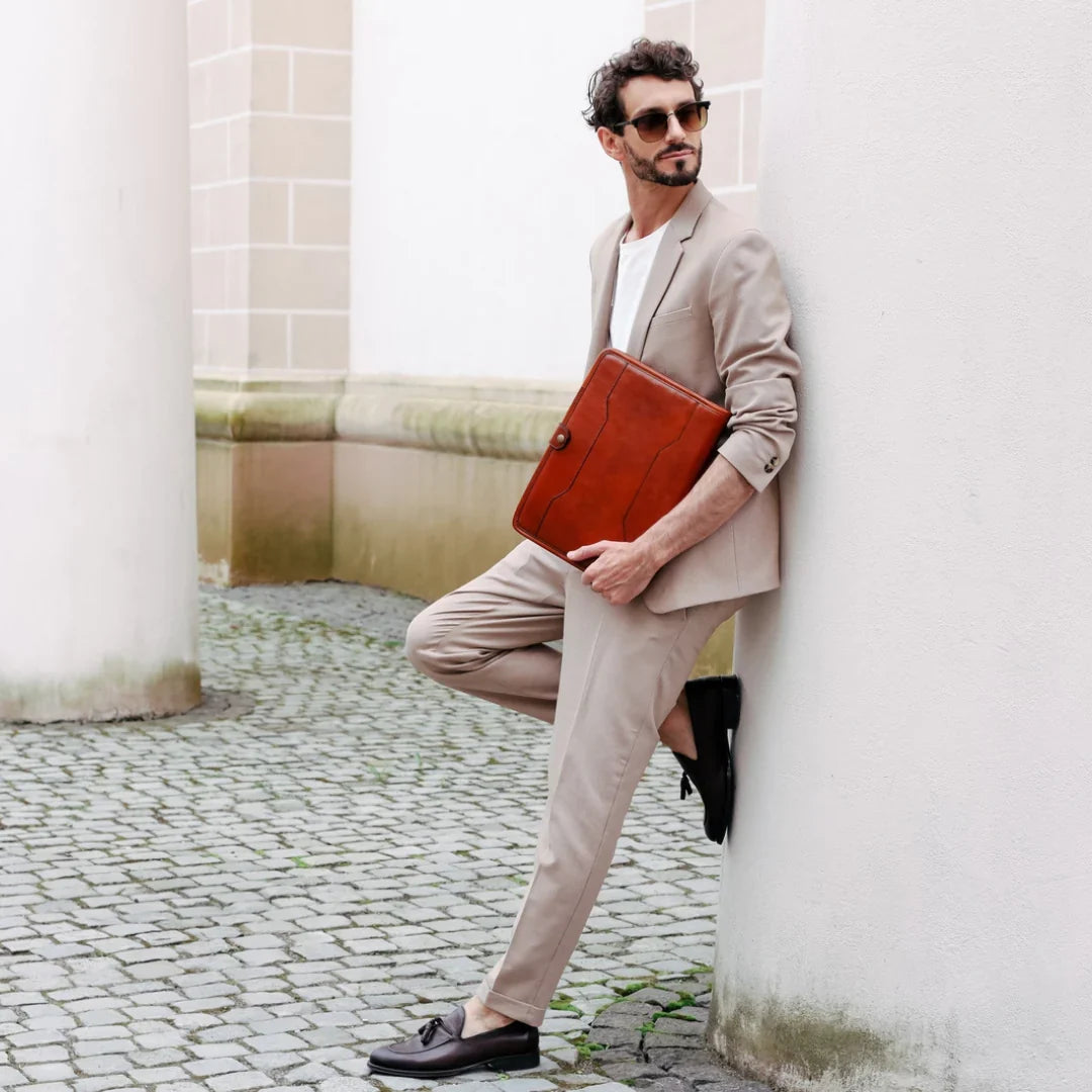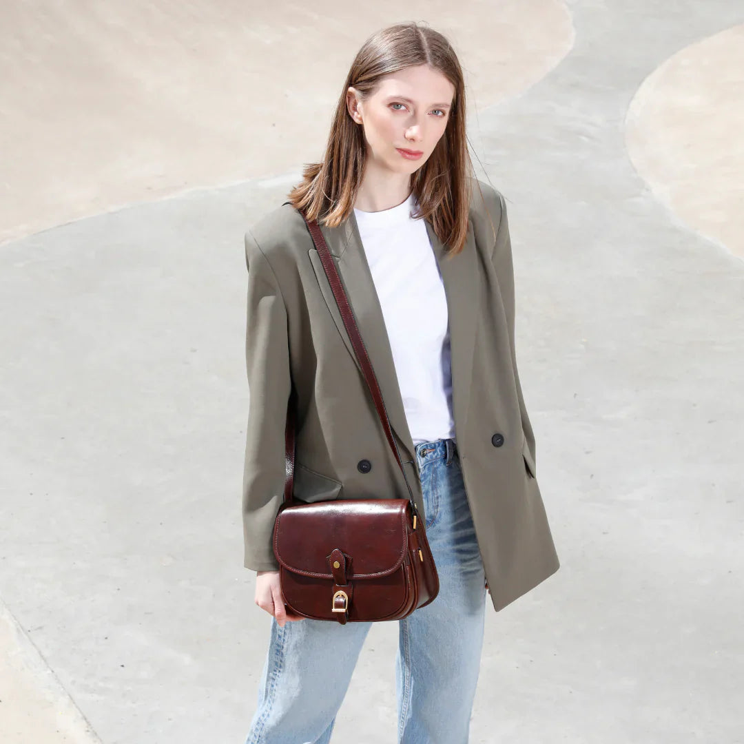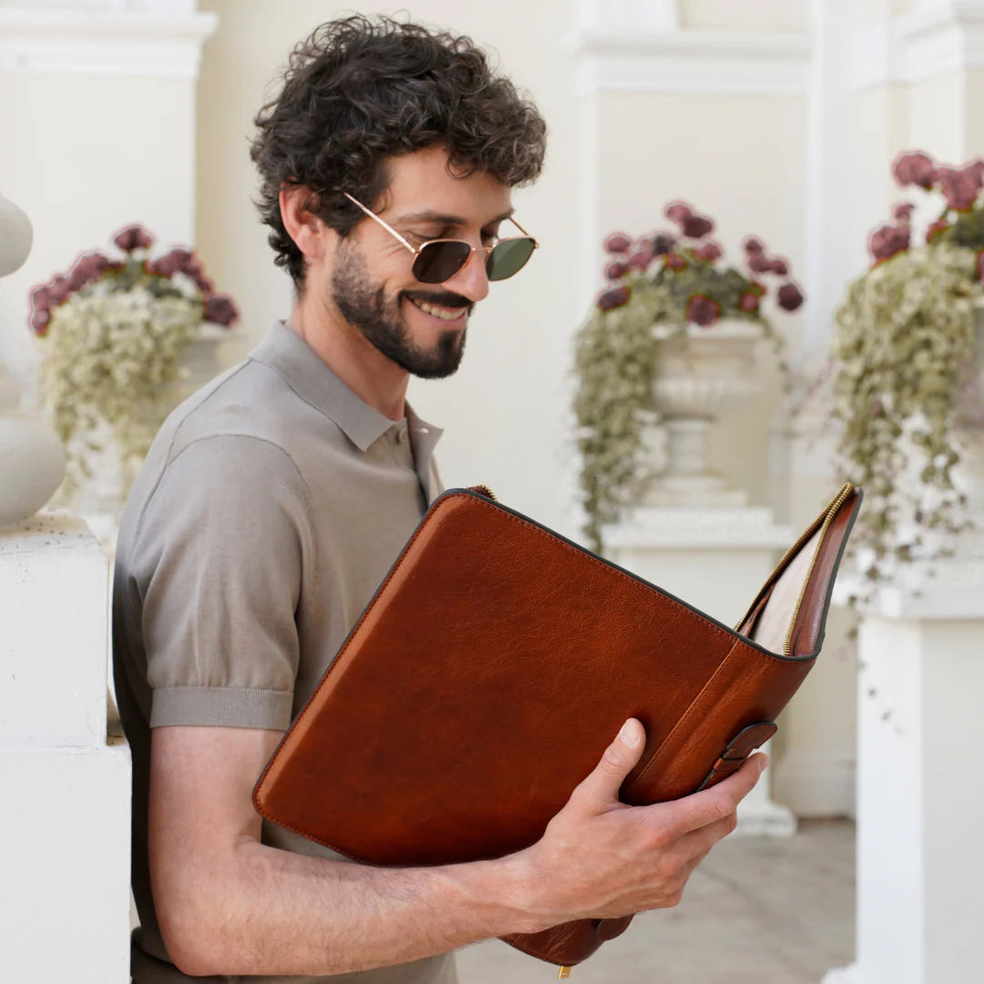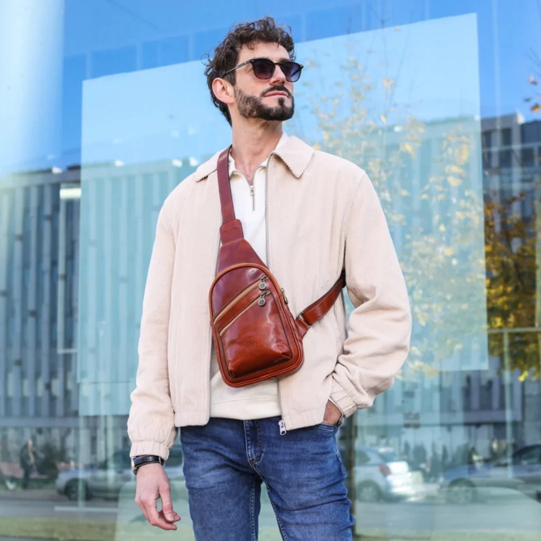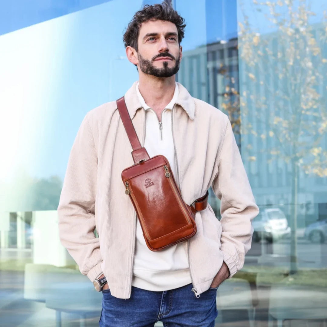 Questa primavera celebriamo un nuovo tipo d'amore: quello che si crea con la propria borsa. Il nostro ultimo servizio fotografico rende omaggio a questo legame speciale che supera tempo e spazio. Le nostre borse in pelle non sono semplici accessori. Sono compagne, custodi, presenze affini. Riflettono la bellezza interiore e raccontano lo stile esteriore. Accompagnano i momenti spensierati e quelli più complessi, tra gioie e malinconie, tra impegni e libertà. Sono quelle presenze che infondono vitalità e completezza Il servizio cattura la magia della primavera: la freschezza dell’aria, il calore del sole, il ritmo vibrante della città. Il modello incarna eleganza e fascino, con un completo che rispecchia l’anima della sua borsa e il suo stato d’animo. Lo sfondo gioca tra luci e ombre, un equilibrio sottile tra modernità e memoria. Il servizio fotografico rivela un romanticismo autentico: quello tra la persona e la propria borsa. A volte non serve altro per sentirsi bene. Basta essere con sé stessi e con la propria borsa. Che si dia inizio, allora, a un passione di primavera con le nostre borse in pelle.