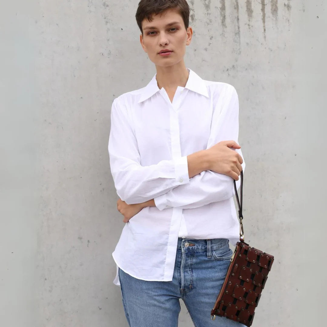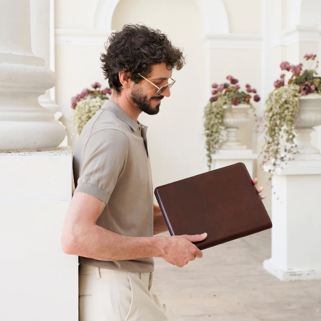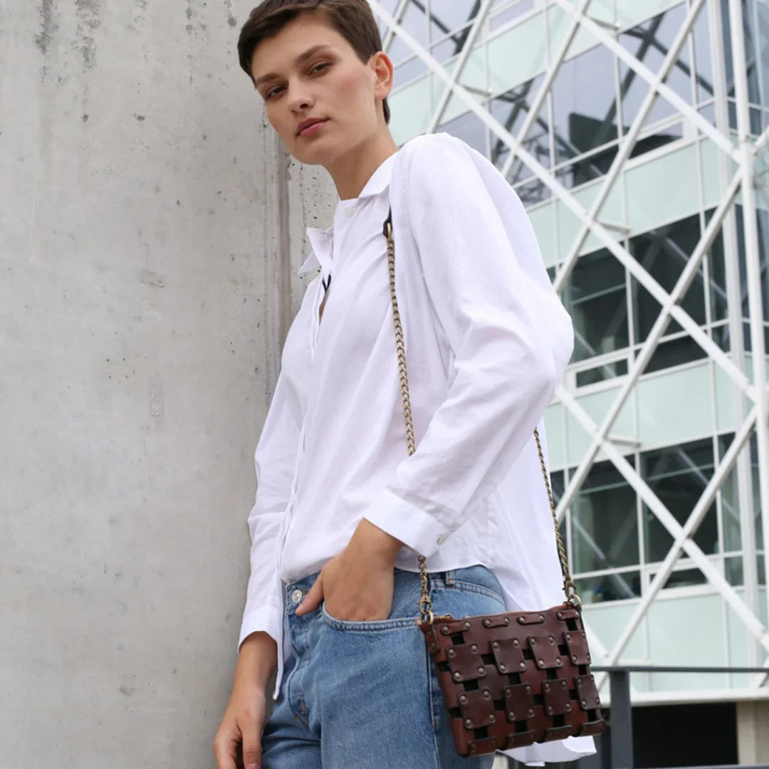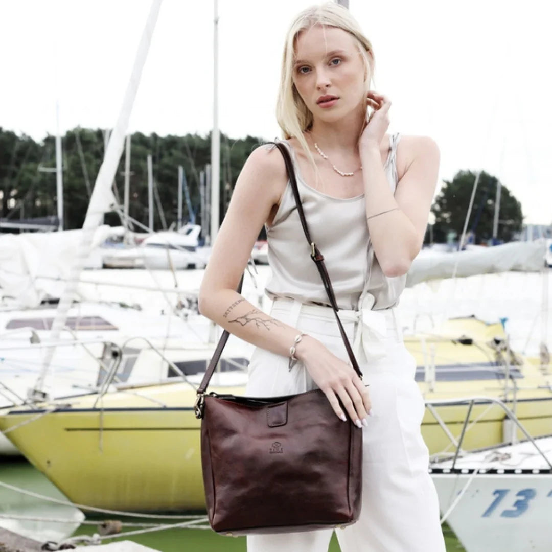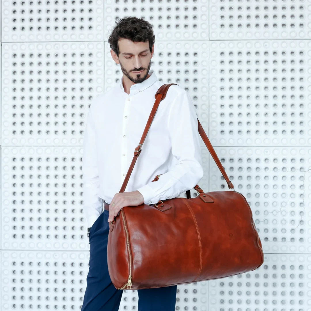 Questa primavera celebriamo un nuovo tipo d'amore: quello che si crea con la propria borsa. Il nostro ultimo servizio fotografico rende omaggio a questo legame speciale che supera tempo e spazio. Le nostre borse in pelle non sono semplici accessori. Sono compagne, custodi, presenze affini. Riflettono la bellezza interiore e raccontano lo stile esteriore. Accompagnano i momenti spensierati e quelli più complessi, tra gioie e malinconie, tra impegni e libertà. Sono quelle presenze che infondono vitalità e completezza Il servizio cattura la magia della primavera: la freschezza dell’aria, il calore del sole, il ritmo vibrante della città. Il modello incarna eleganza e fascino, con un completo che rispecchia l’anima della sua borsa e il suo stato d’animo. Lo sfondo gioca tra luci e ombre, un equilibrio sottile tra modernità e memoria. Il servizio fotografico rivela un romanticismo autentico: quello tra la persona e la propria borsa. A volte non serve altro per sentirsi bene. Basta essere con sé stessi e con la propria borsa. Che si dia inizio, allora, a un passione di primavera con le nostre borse in pelle.