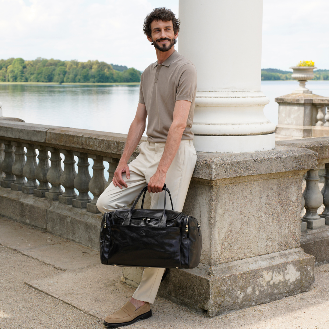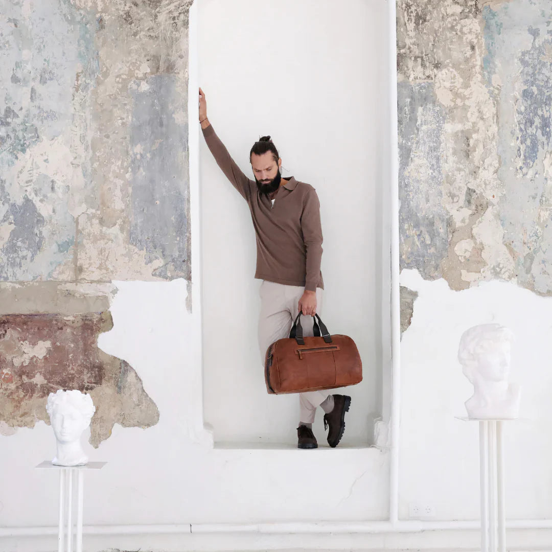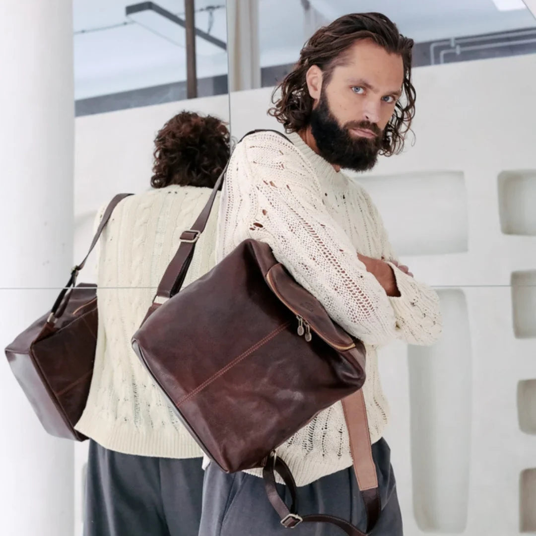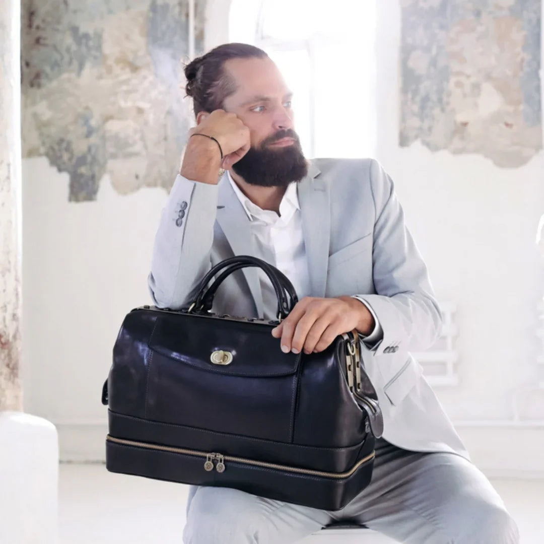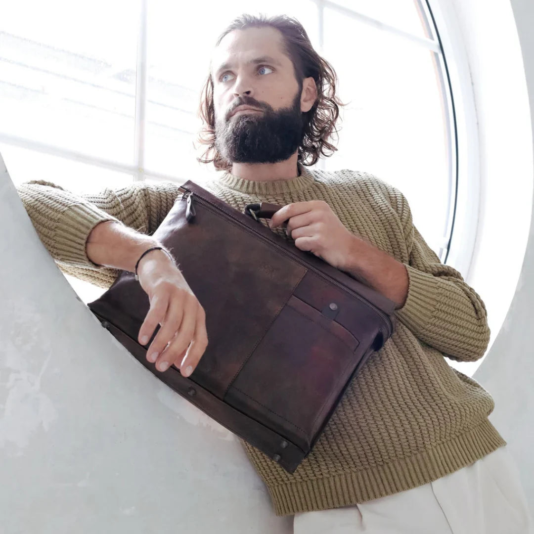 Abbiamo sempre creduto che le borse in pelle dal gusto classico non siano riservate esclusivamente ai formali uomini d’affari: anche chi ha uno stile più disinvolto può indossarle senza rinunciare al proprio carisma. È proprio questo che abbiamo voluto dimostrare con lo shooting "Gli opposti si attraggono". Alcuni scatti sono stati realizzati in un’antica dimora, dove le nostre borse da dottore dal design classico ci hanno fatto viaggiare indietro nel tempo. In seguito ci siamo spostati in uno skate park, non lontano da edifici direzionali, dove lavorano molti giovani come il nostro affascinante modello. Le borse si sono perfettamente adattate al nuovo contesto, trasformando l’uomo in un moderno e audace millennial.