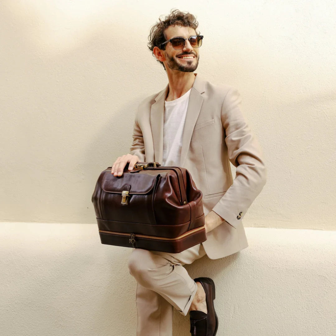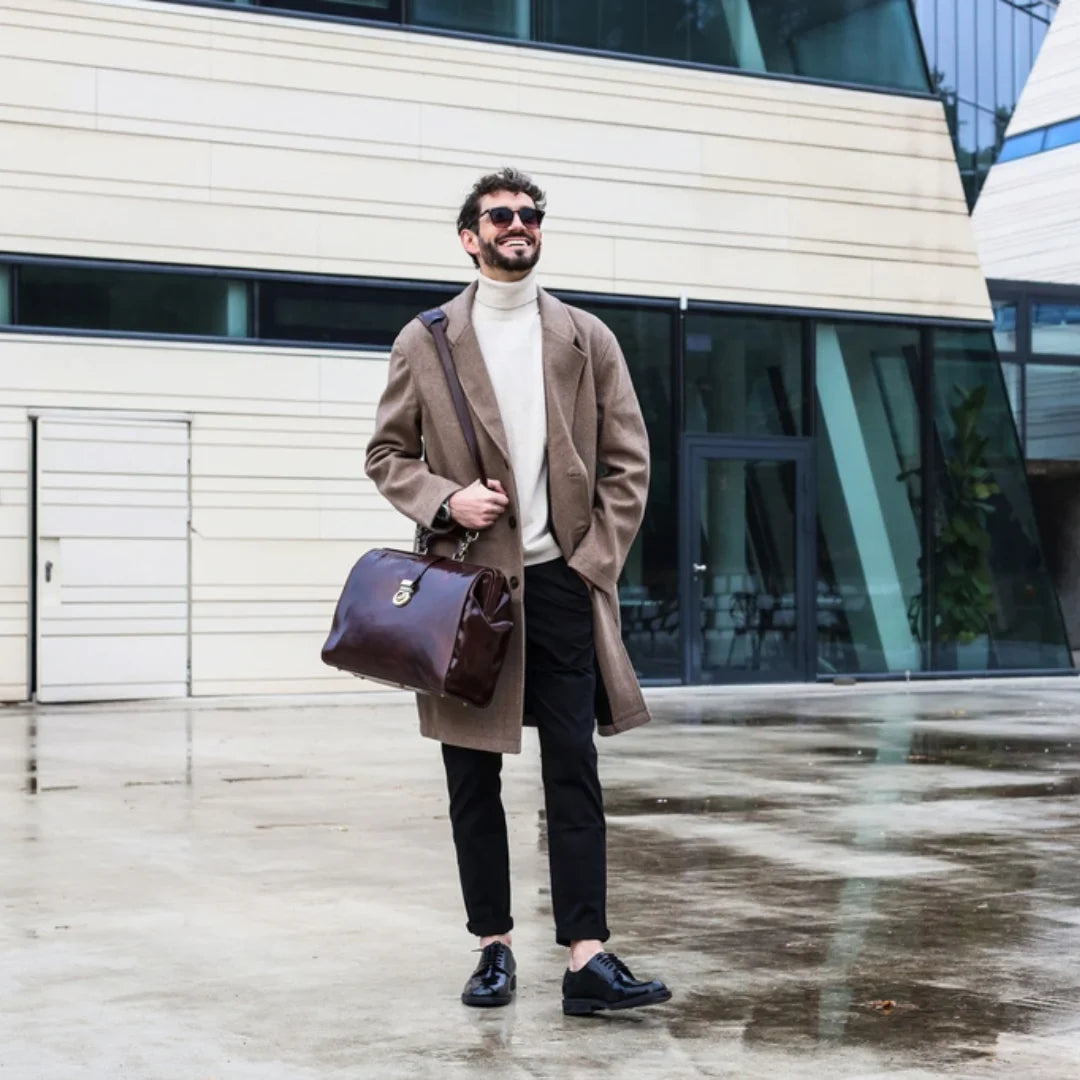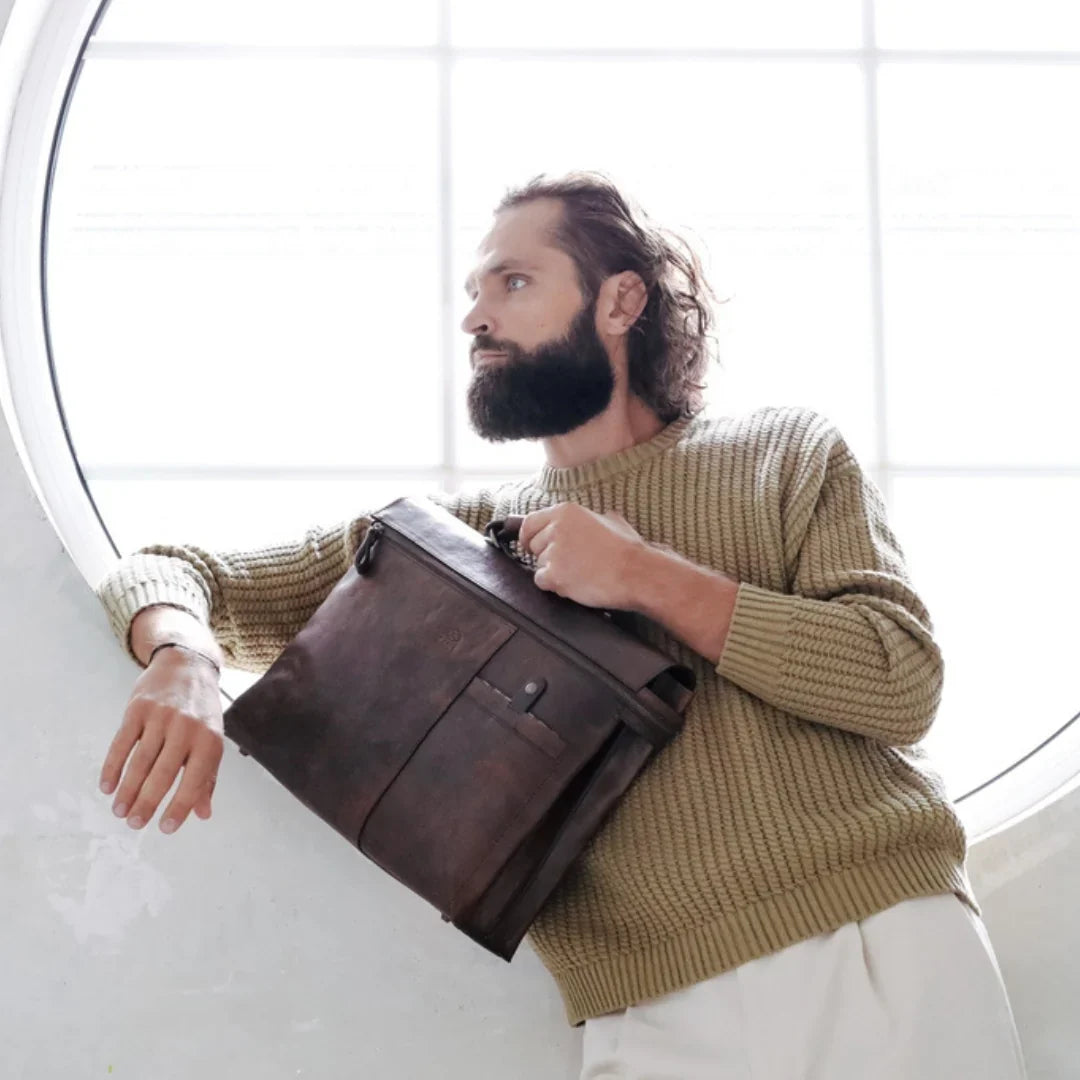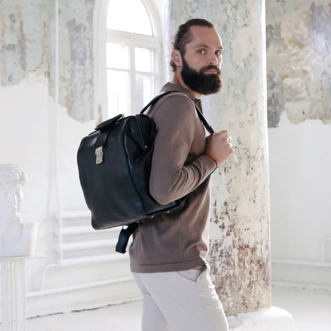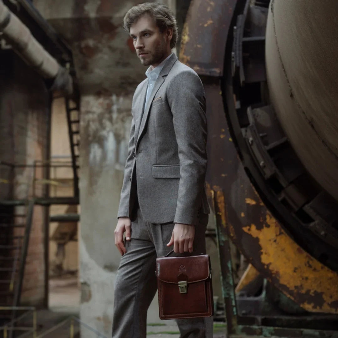 Abbiamo sempre creduto che le borse in pelle dal gusto classico non siano riservate esclusivamente ai formali uomini d’affari: anche chi ha uno stile più disinvolto può indossarle senza rinunciare al proprio carisma. È proprio questo che abbiamo voluto dimostrare con lo shooting "Gli opposti si attraggono". Alcuni scatti sono stati realizzati in un’antica dimora, dove le nostre borse da dottore dal design classico ci hanno fatto viaggiare indietro nel tempo. In seguito ci siamo spostati in uno skate park, non lontano da edifici direzionali, dove lavorano molti giovani come il nostro affascinante modello. Le borse si sono perfettamente adattate al nuovo contesto, trasformando l’uomo in un moderno e audace millennial.
