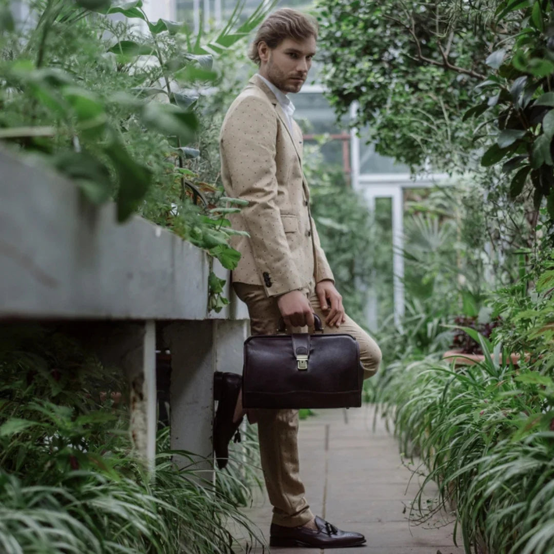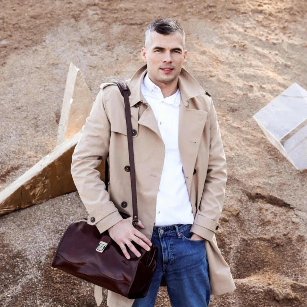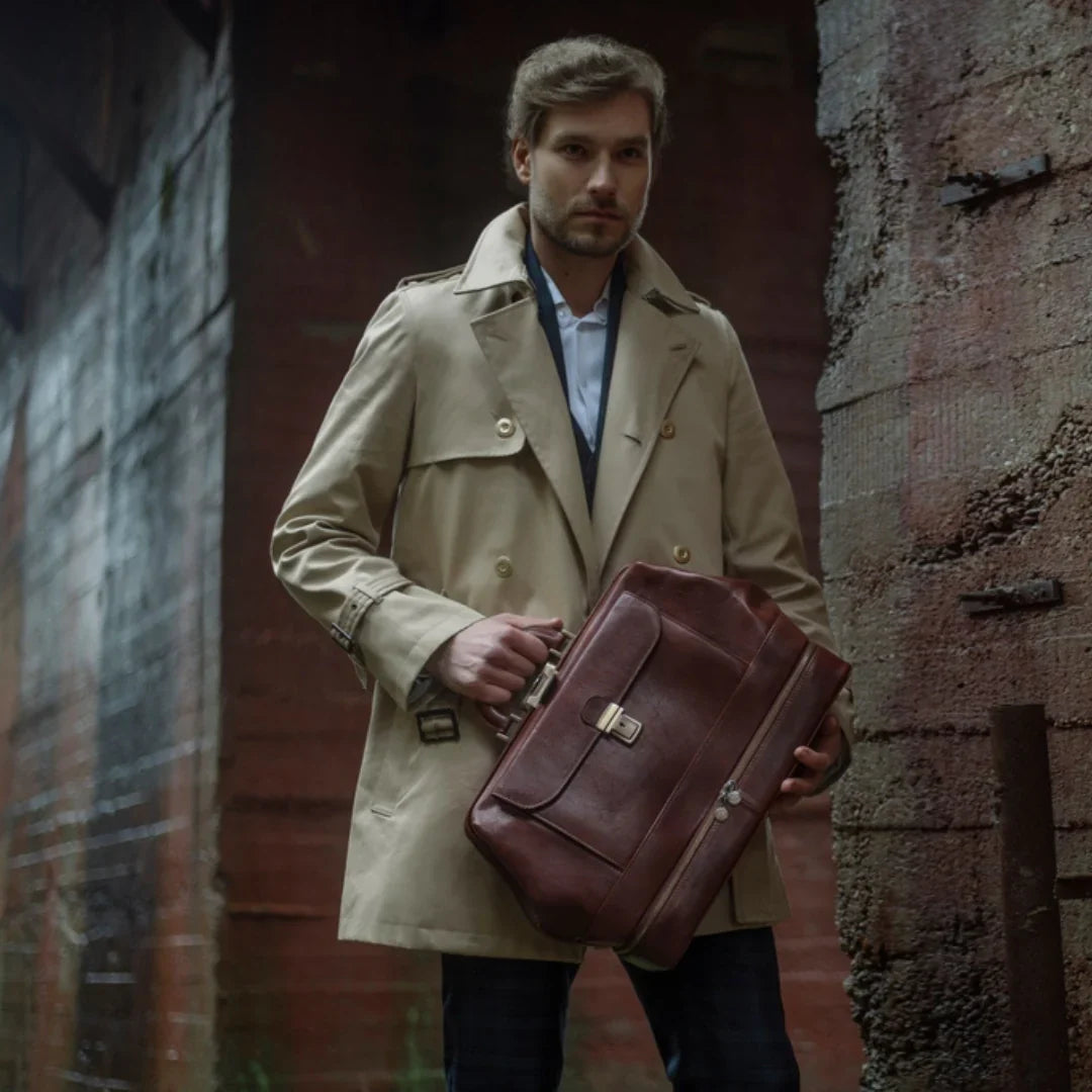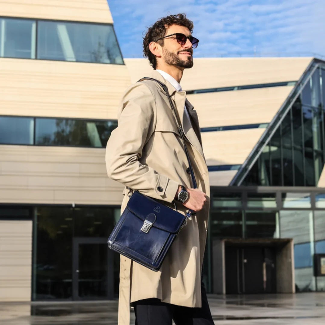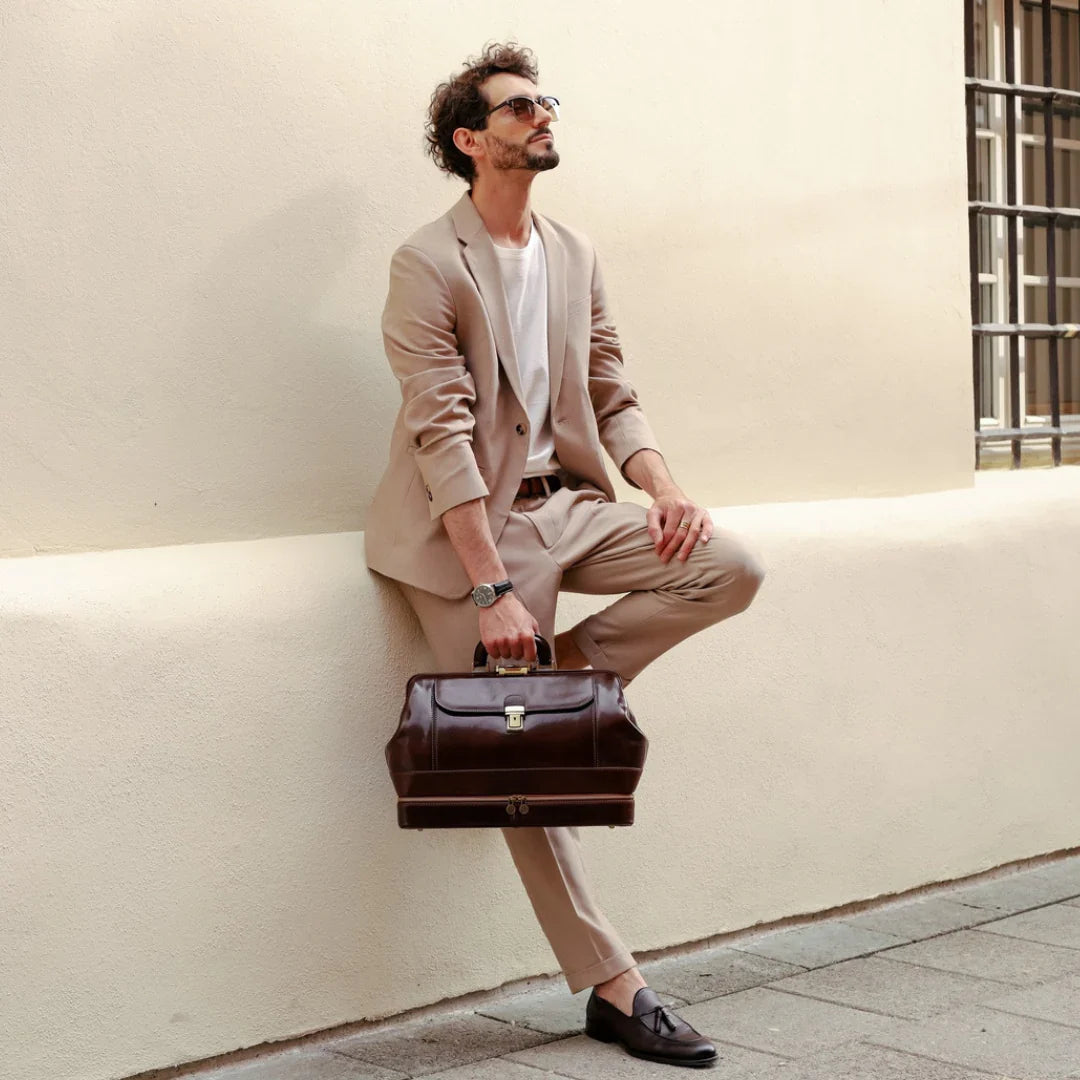 Abbiamo sempre creduto che le borse in pelle dal gusto classico non siano riservate esclusivamente ai formali uomini d’affari: anche chi ha uno stile più disinvolto può indossarle senza rinunciare al proprio carisma. È proprio questo che abbiamo voluto dimostrare con lo shooting "Gli opposti si attraggono". Alcuni scatti sono stati realizzati in un’antica dimora, dove le nostre borse da dottore dal design classico ci hanno fatto viaggiare indietro nel tempo. In seguito ci siamo spostati in uno skate park, non lontano da edifici direzionali, dove lavorano molti giovani come il nostro affascinante modello. Le borse si sono perfettamente adattate al nuovo contesto, trasformando l’uomo in un moderno e audace millennial.