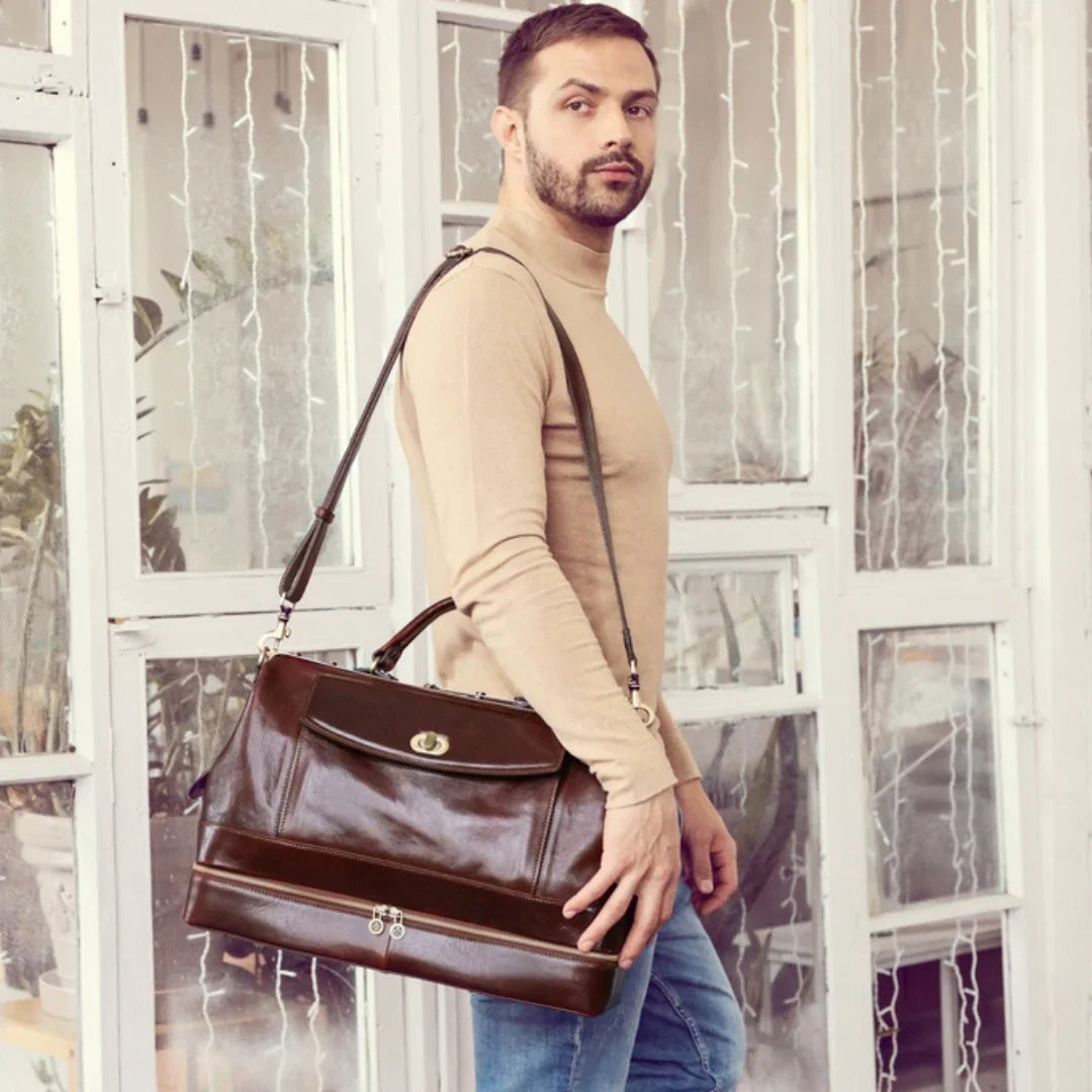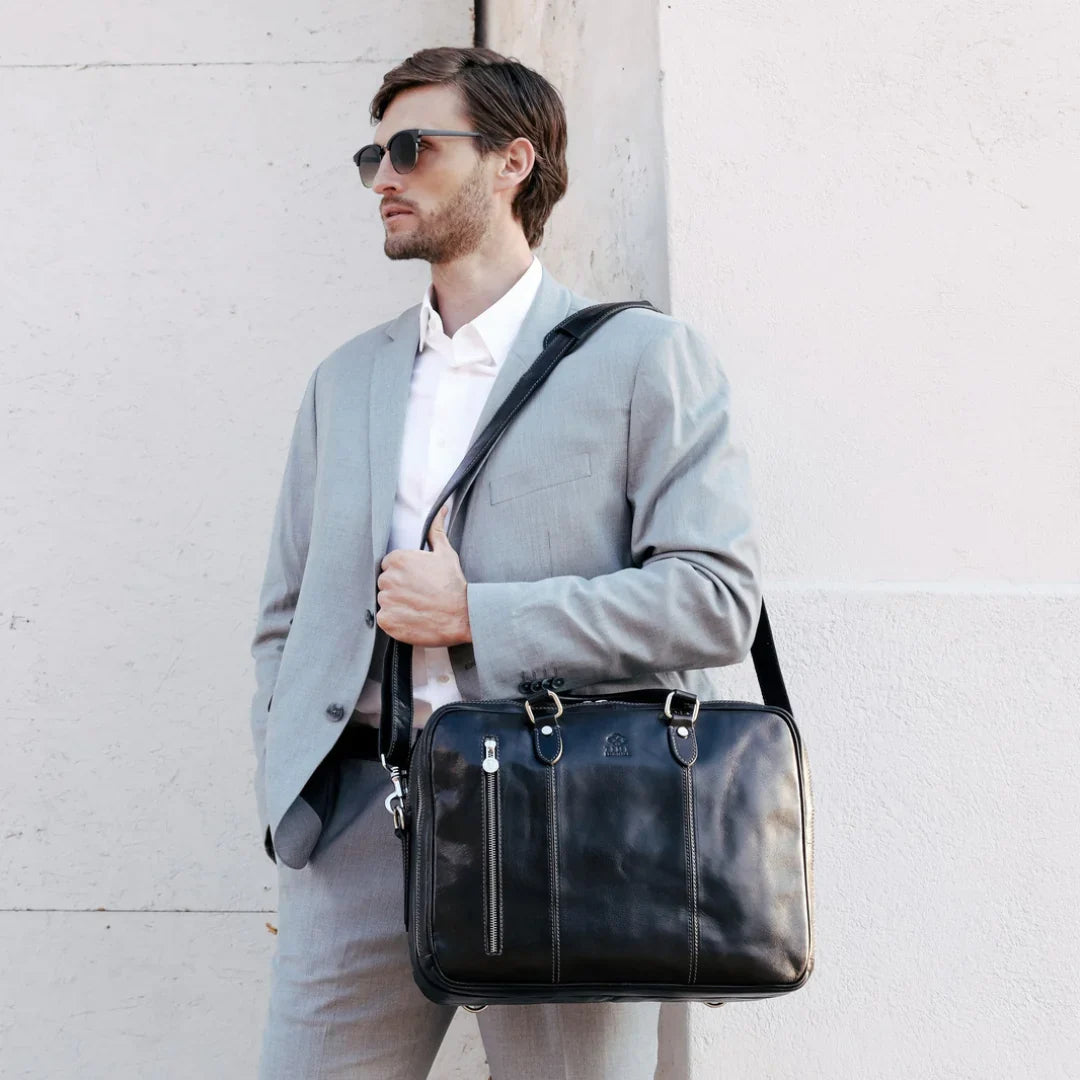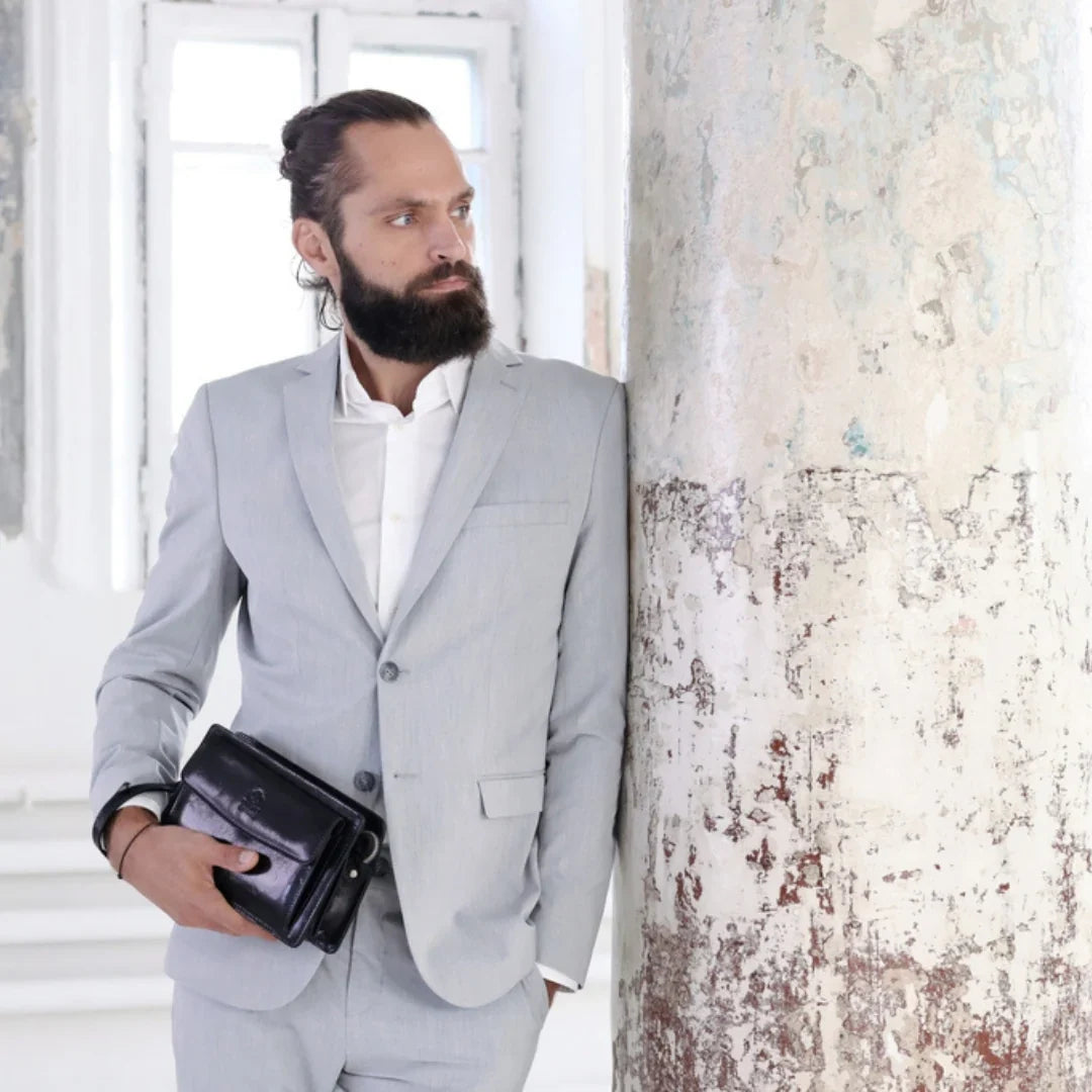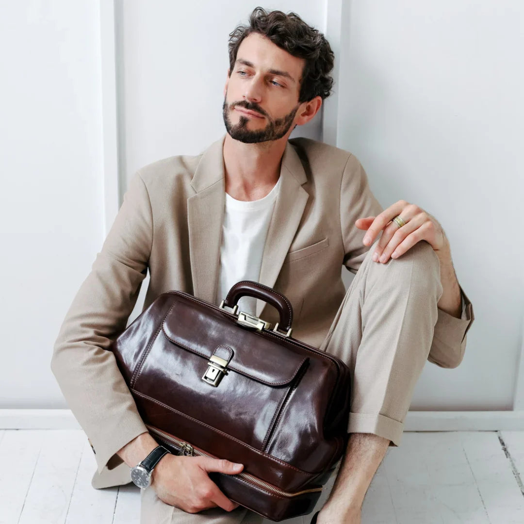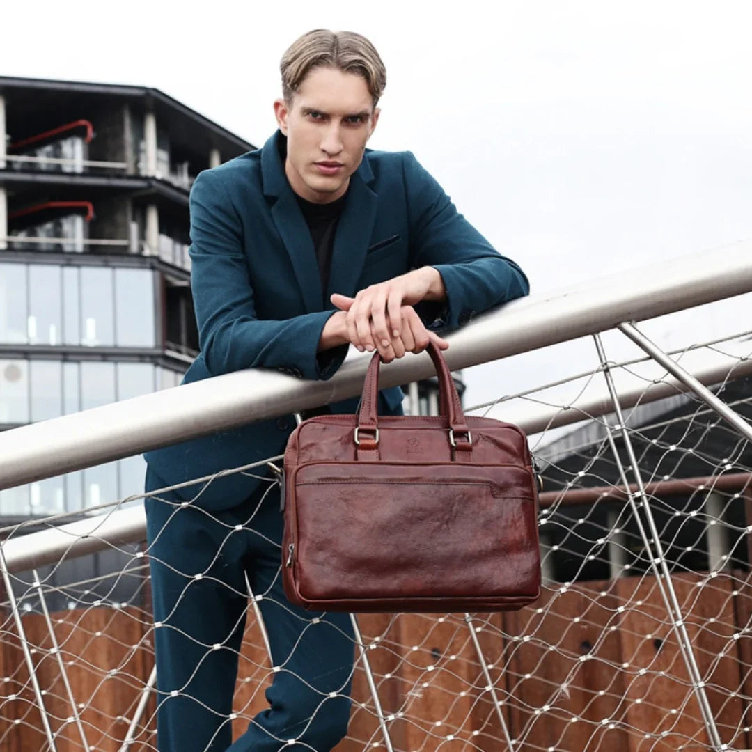 Abbiamo sempre creduto che le borse in pelle dal gusto classico non siano riservate esclusivamente ai formali uomini d’affari: anche chi ha uno stile più disinvolto può indossarle senza rinunciare al proprio carisma. È proprio questo che abbiamo voluto dimostrare con lo shooting "Gli opposti si attraggono". Alcuni scatti sono stati realizzati in un’antica dimora, dove le nostre borse da dottore dal design classico ci hanno fatto viaggiare indietro nel tempo. In seguito ci siamo spostati in uno skate park, non lontano da edifici direzionali, dove lavorano molti giovani come il nostro affascinante modello. Le borse si sono perfettamente adattate al nuovo contesto, trasformando l’uomo in un moderno e audace millennial.