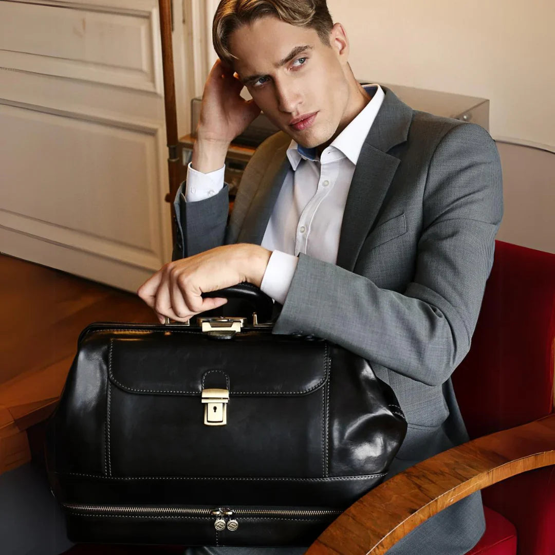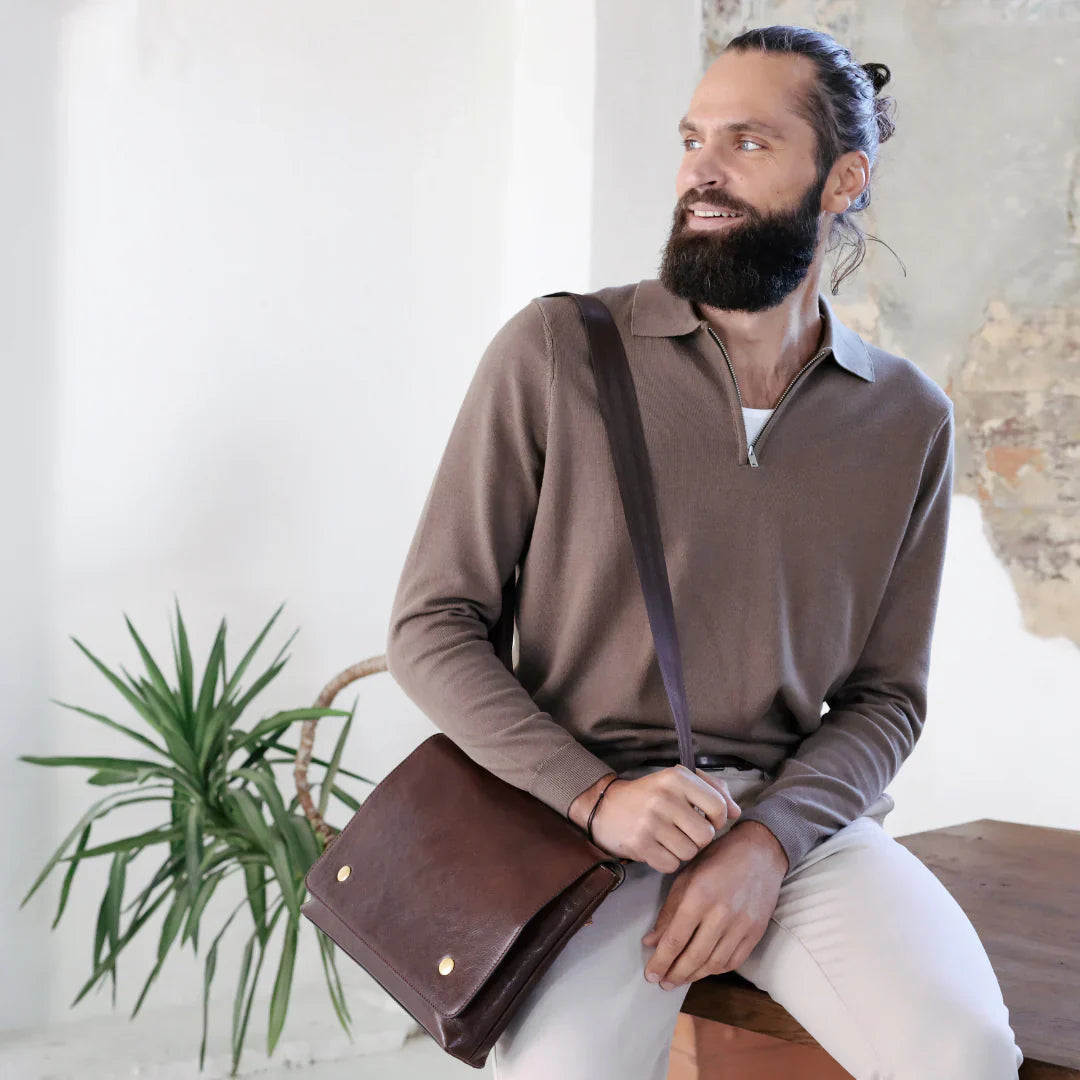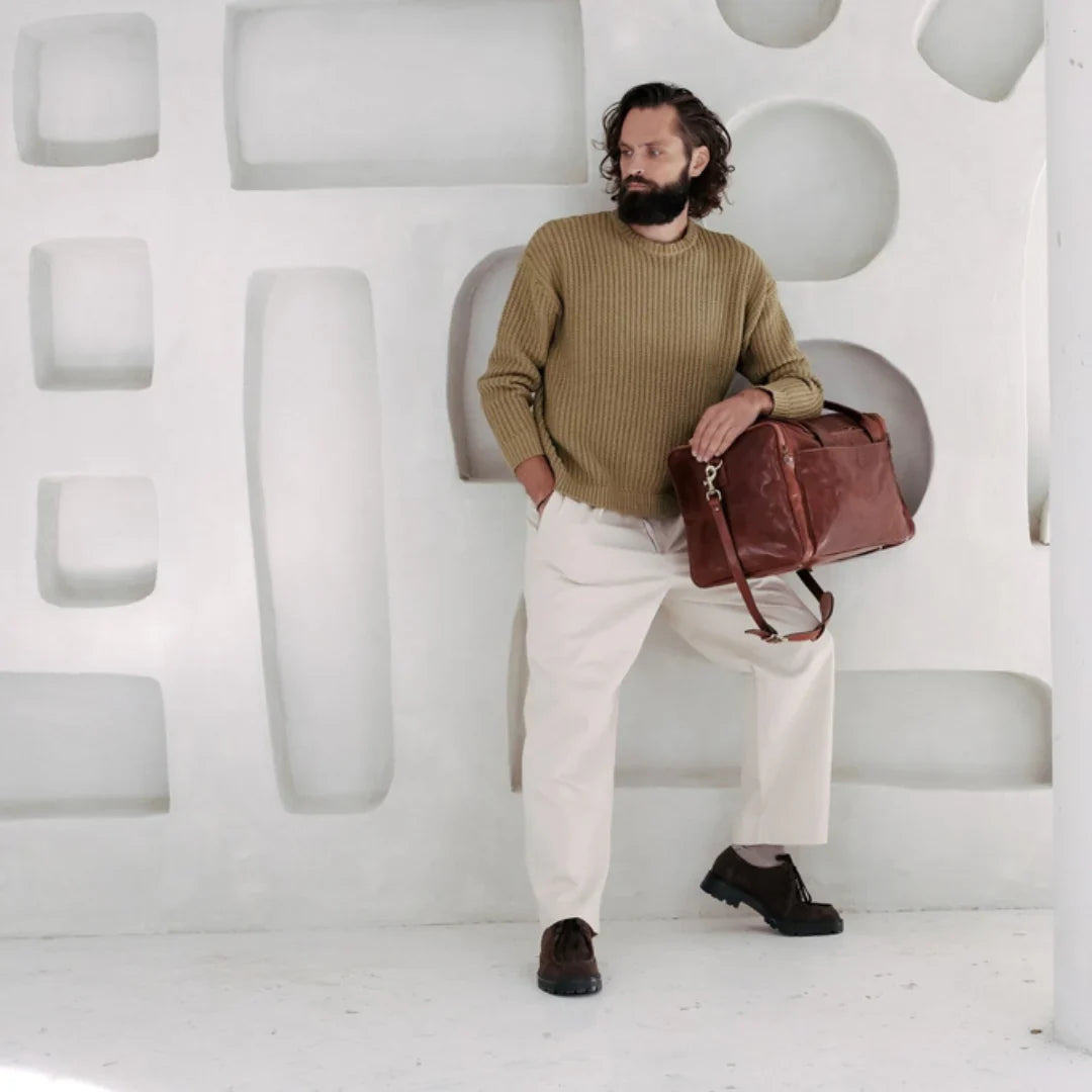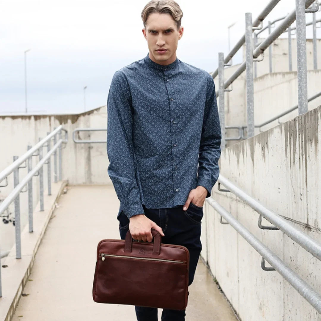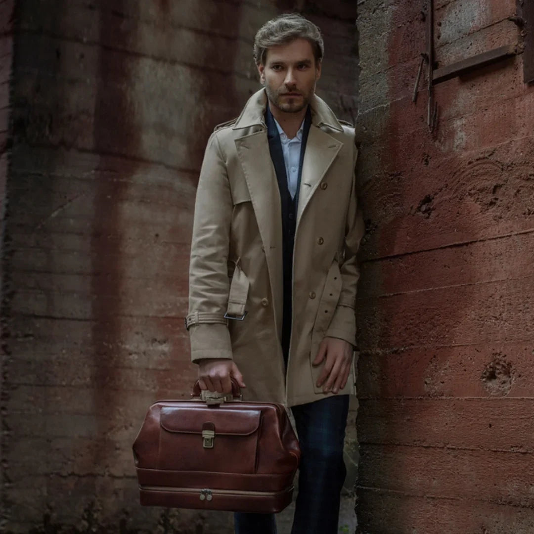 Abbiamo sempre creduto che le borse in pelle dal gusto classico non siano riservate esclusivamente ai formali uomini d’affari: anche chi ha uno stile più disinvolto può indossarle senza rinunciare al proprio carisma. È proprio questo che abbiamo voluto dimostrare con lo shooting "Gli opposti si attraggono". Alcuni scatti sono stati realizzati in un’antica dimora, dove le nostre borse da dottore dal design classico ci hanno fatto viaggiare indietro nel tempo. In seguito ci siamo spostati in uno skate park, non lontano da edifici direzionali, dove lavorano molti giovani come il nostro affascinante modello. Le borse si sono perfettamente adattate al nuovo contesto, trasformando l’uomo in un moderno e audace millennial.