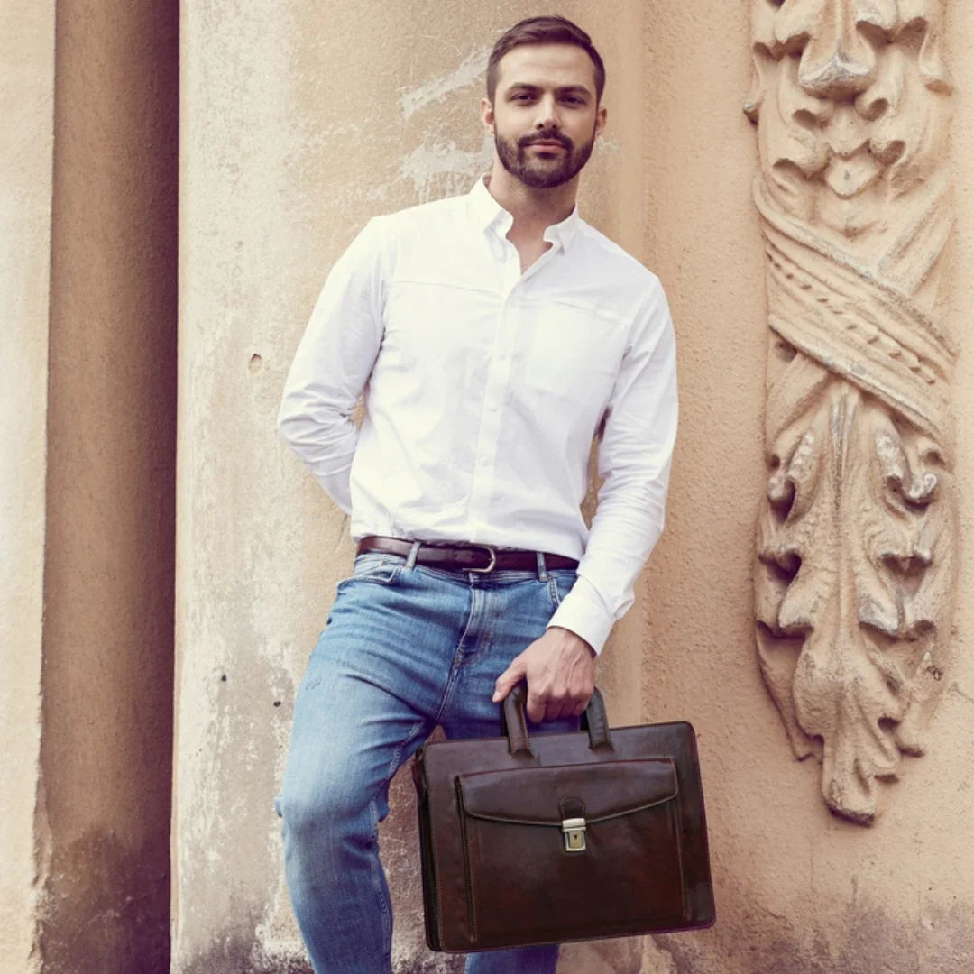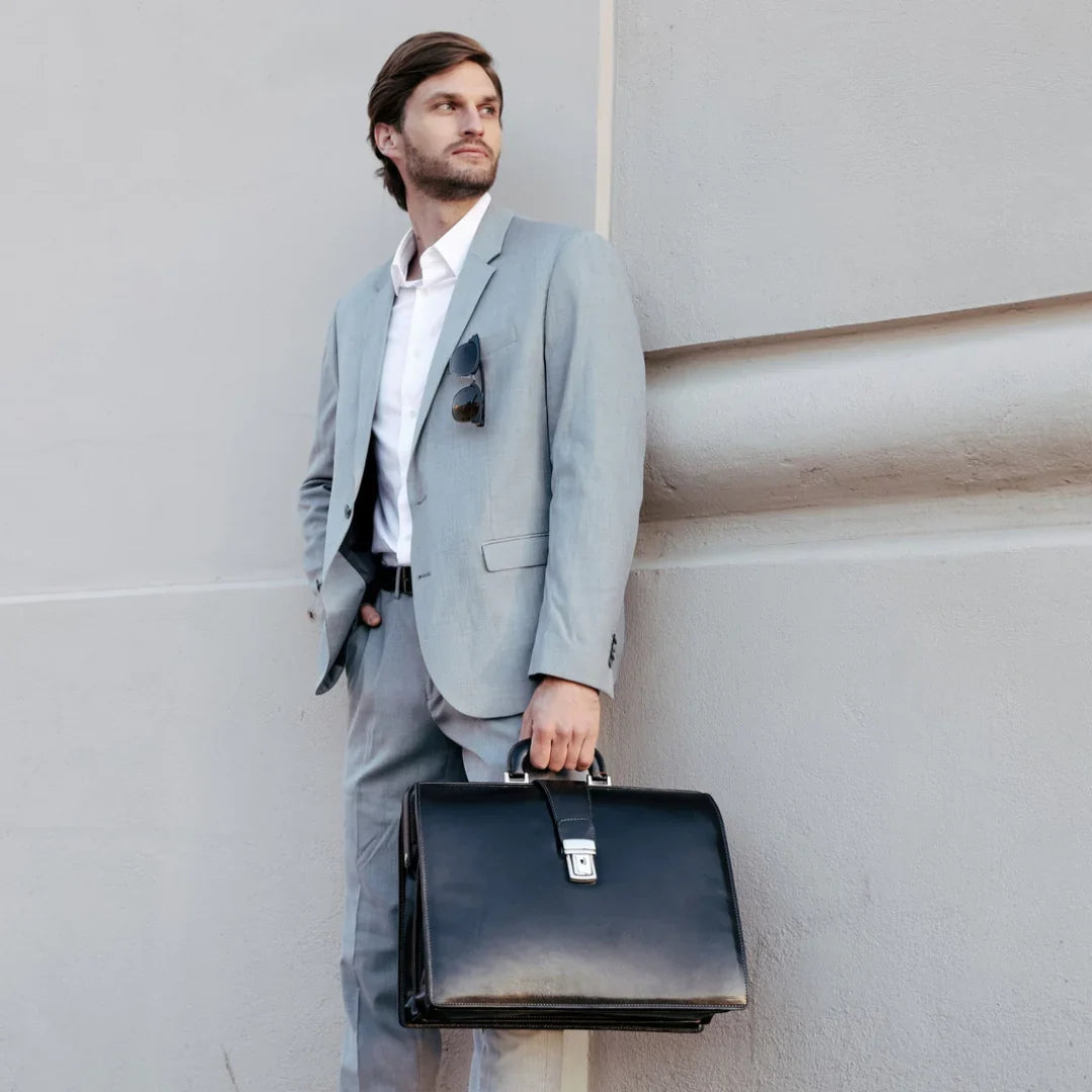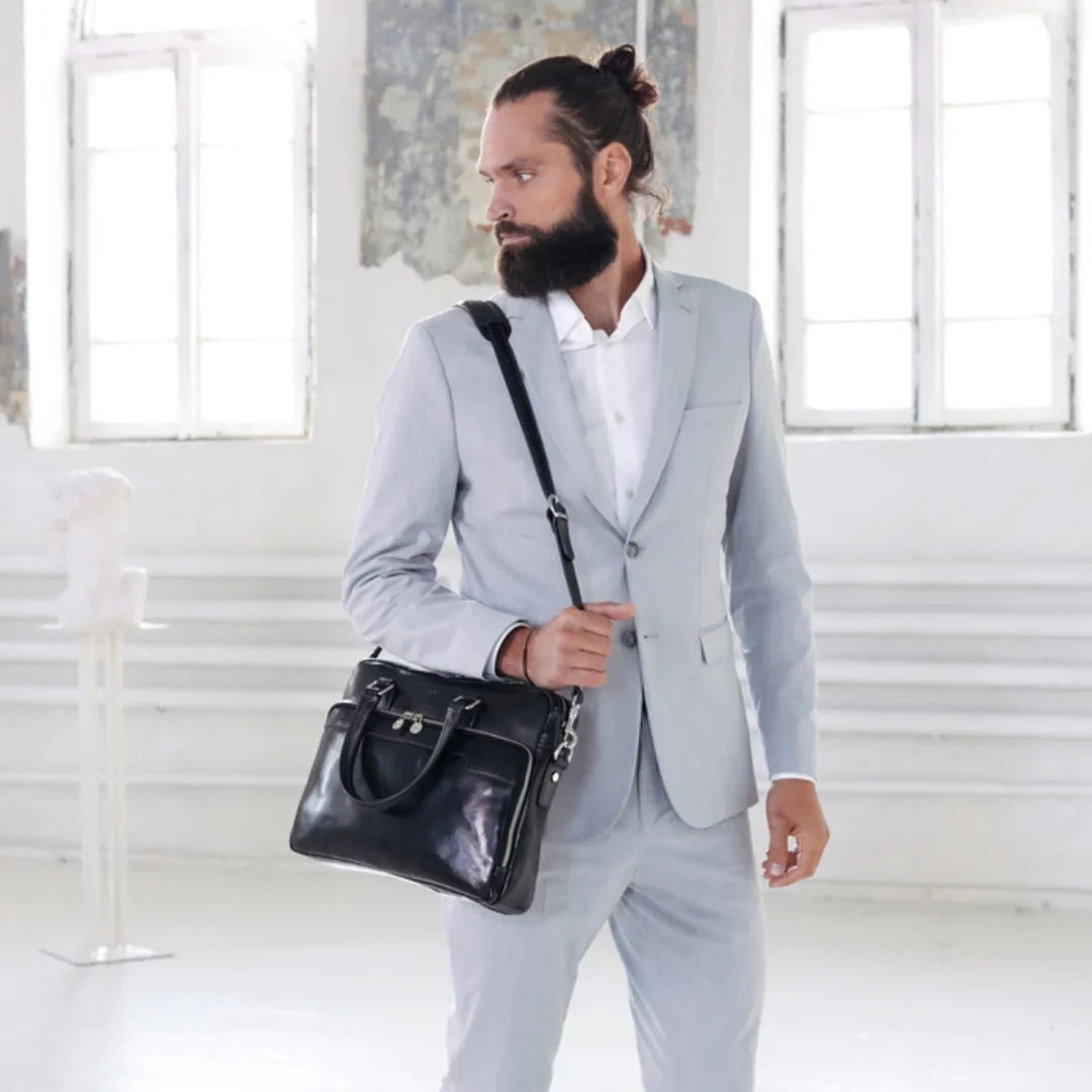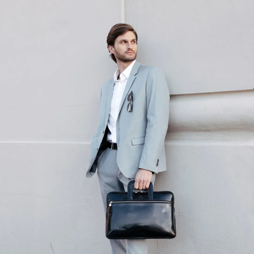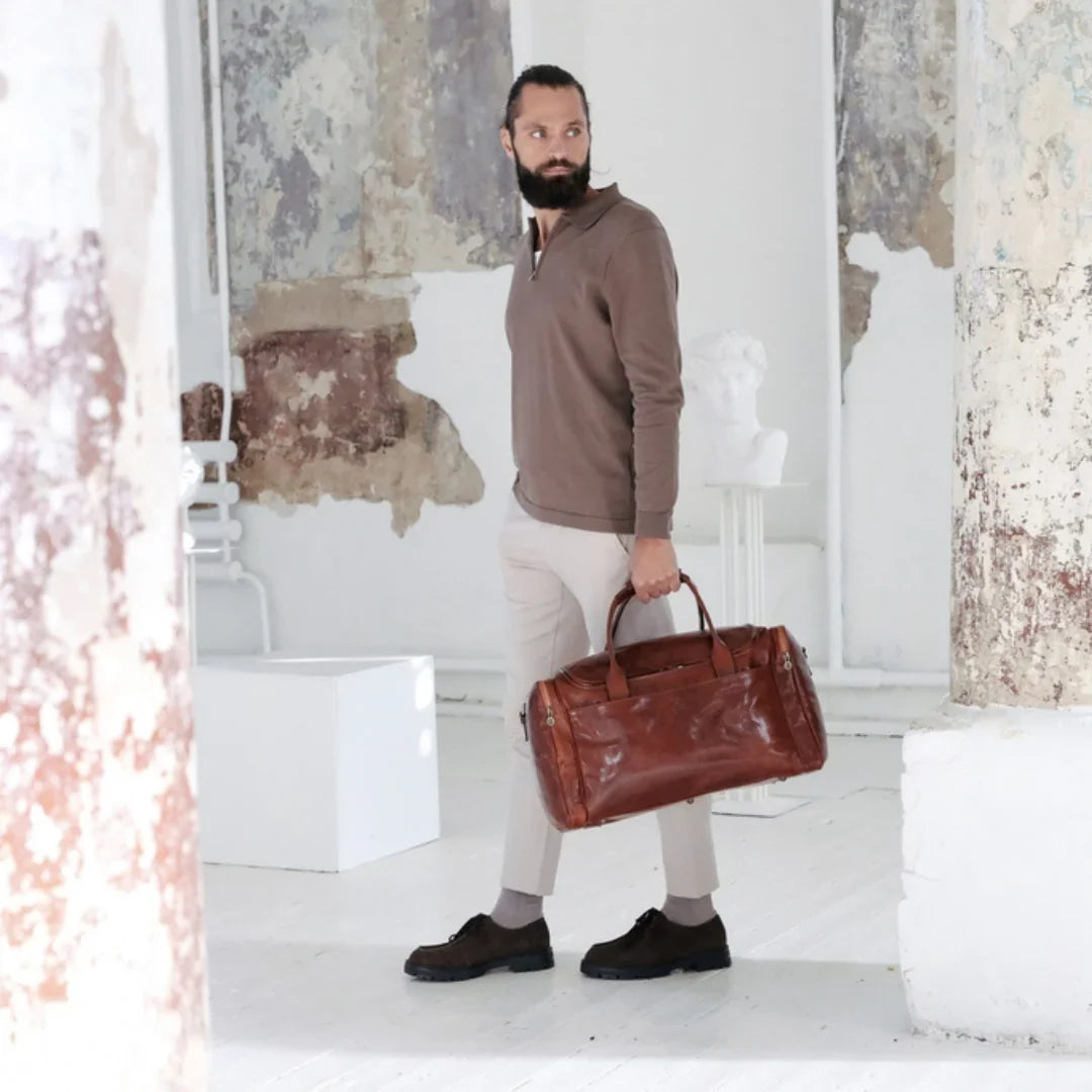 Abbiamo sempre creduto che le borse in pelle dal gusto classico non siano riservate esclusivamente ai formali uomini d’affari: anche chi ha uno stile più disinvolto può indossarle senza rinunciare al proprio carisma. È proprio questo che abbiamo voluto dimostrare con lo shooting "Gli opposti si attraggono". Alcuni scatti sono stati realizzati in un’antica dimora, dove le nostre borse da dottore dal design classico ci hanno fatto viaggiare indietro nel tempo. In seguito ci siamo spostati in uno skate park, non lontano da edifici direzionali, dove lavorano molti giovani come il nostro affascinante modello. Le borse si sono perfettamente adattate al nuovo contesto, trasformando l’uomo in un moderno e audace millennial.