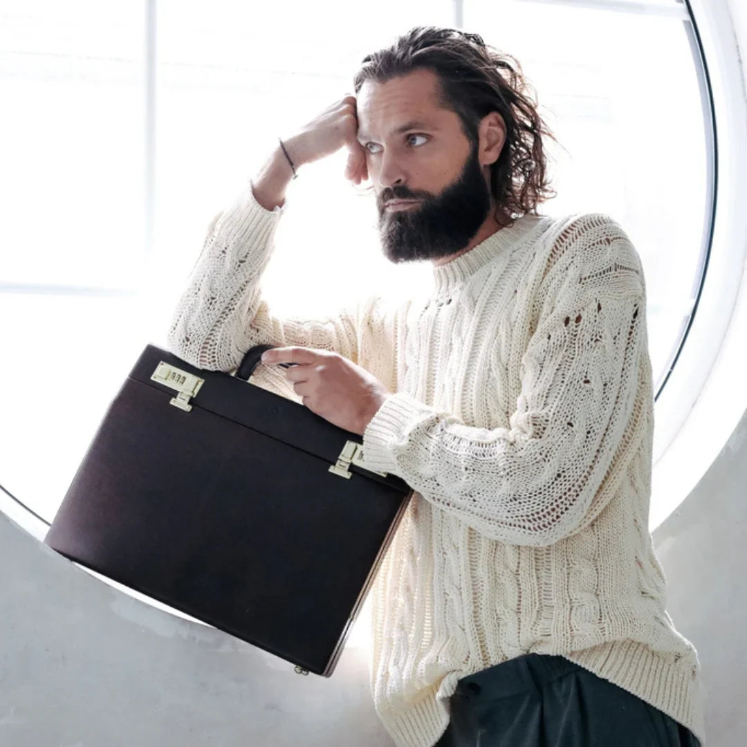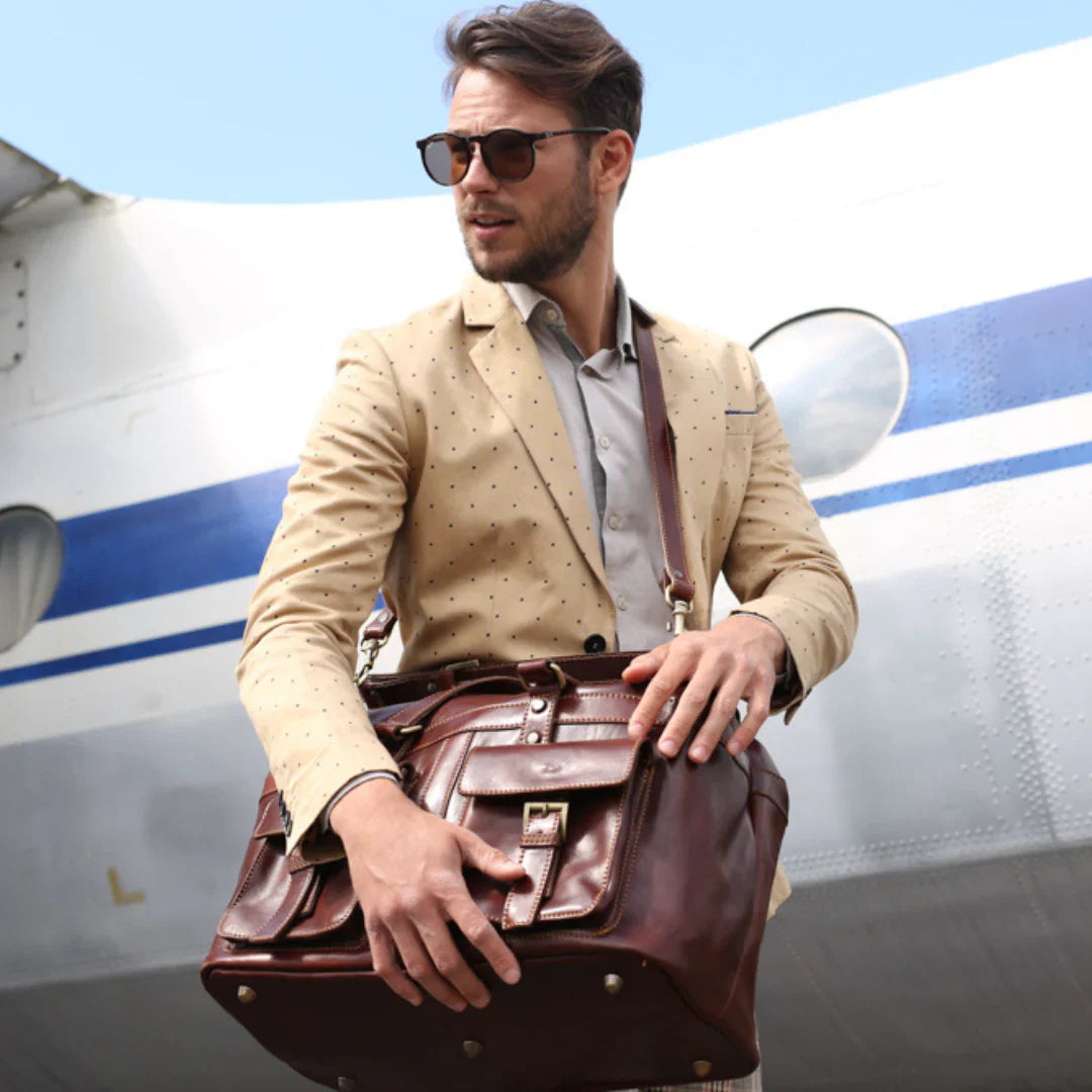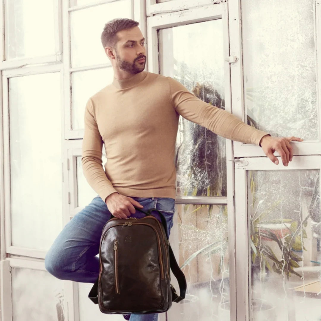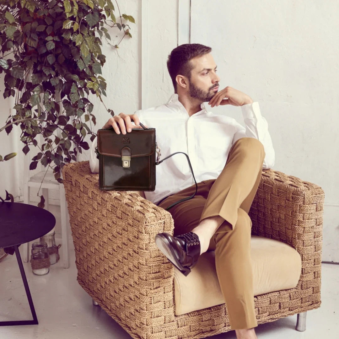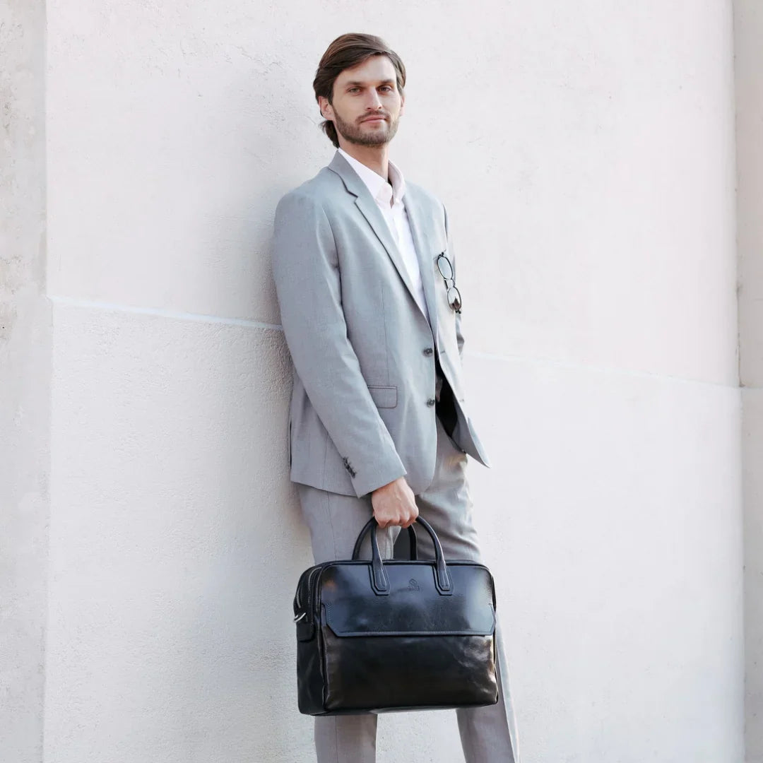 Abbiamo sempre creduto che le borse in pelle dal gusto classico non siano riservate esclusivamente ai formali uomini d’affari: anche chi ha uno stile più disinvolto può indossarle senza rinunciare al proprio carisma. È proprio questo che abbiamo voluto dimostrare con lo shooting "Gli opposti si attraggono". Alcuni scatti sono stati realizzati in un’antica dimora, dove le nostre borse da dottore dal design classico ci hanno fatto viaggiare indietro nel tempo. In seguito ci siamo spostati in uno skate park, non lontano da edifici direzionali, dove lavorano molti giovani come il nostro affascinante modello. Le borse si sono perfettamente adattate al nuovo contesto, trasformando l’uomo in un moderno e audace millennial.