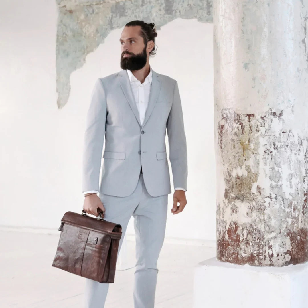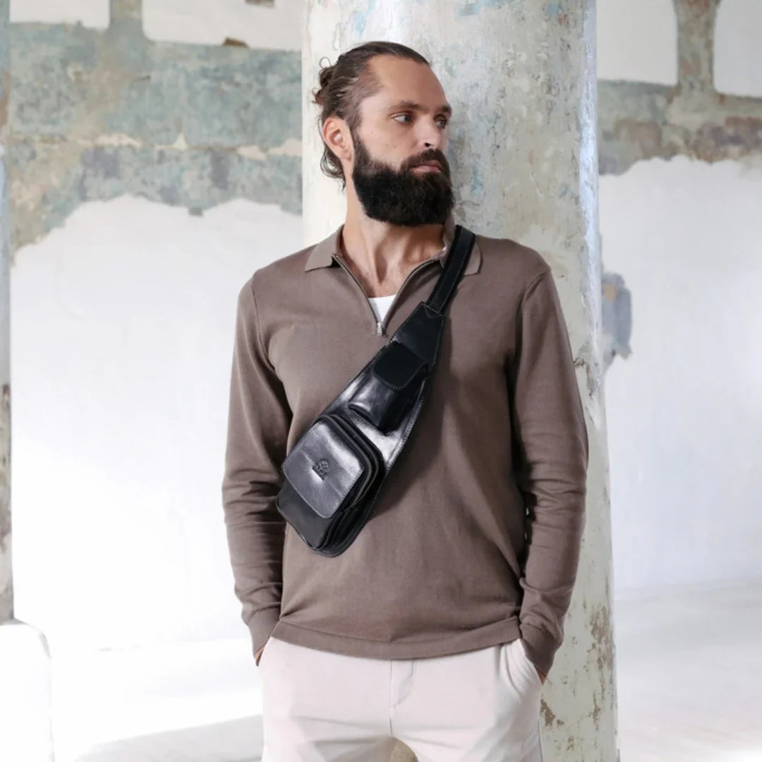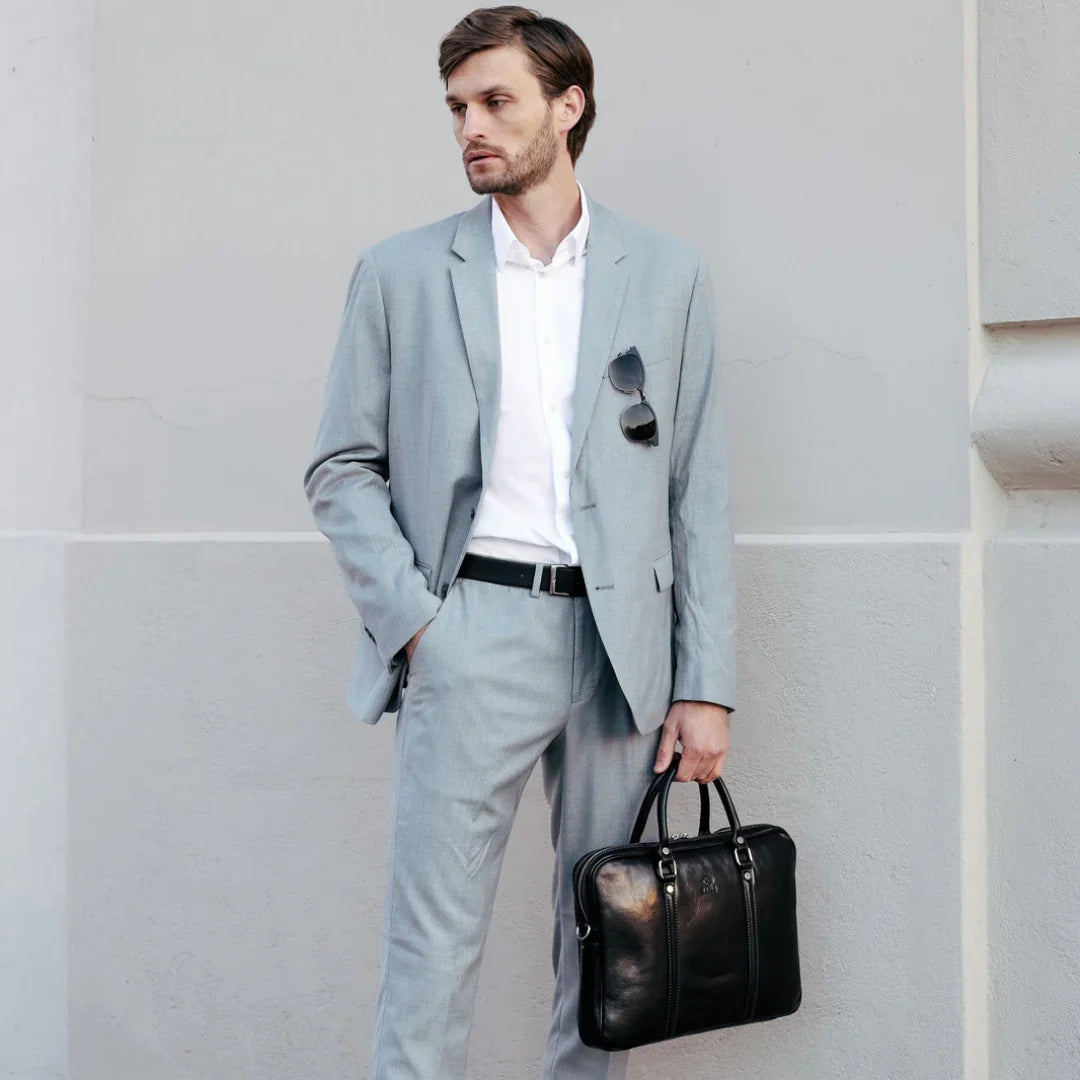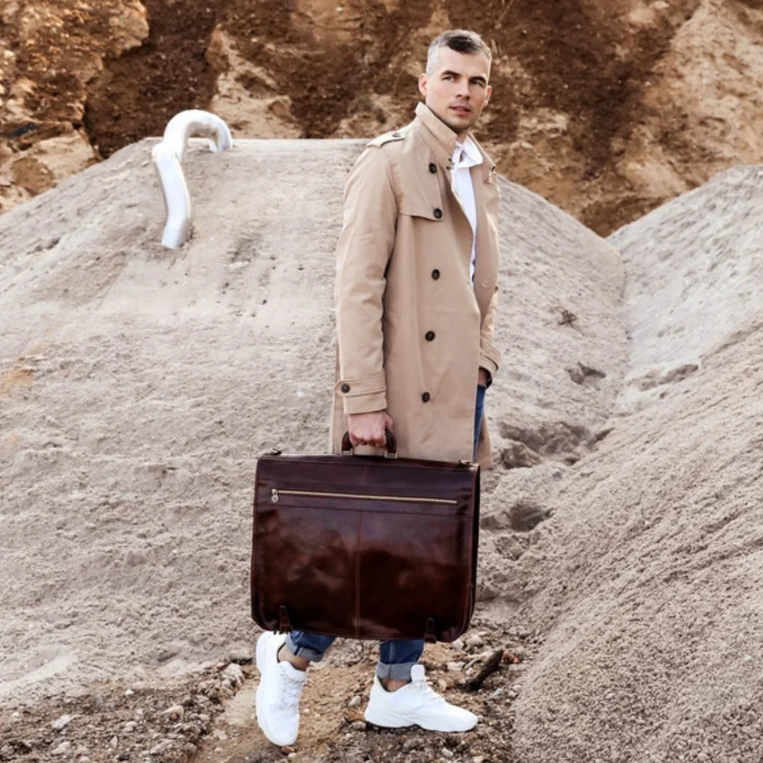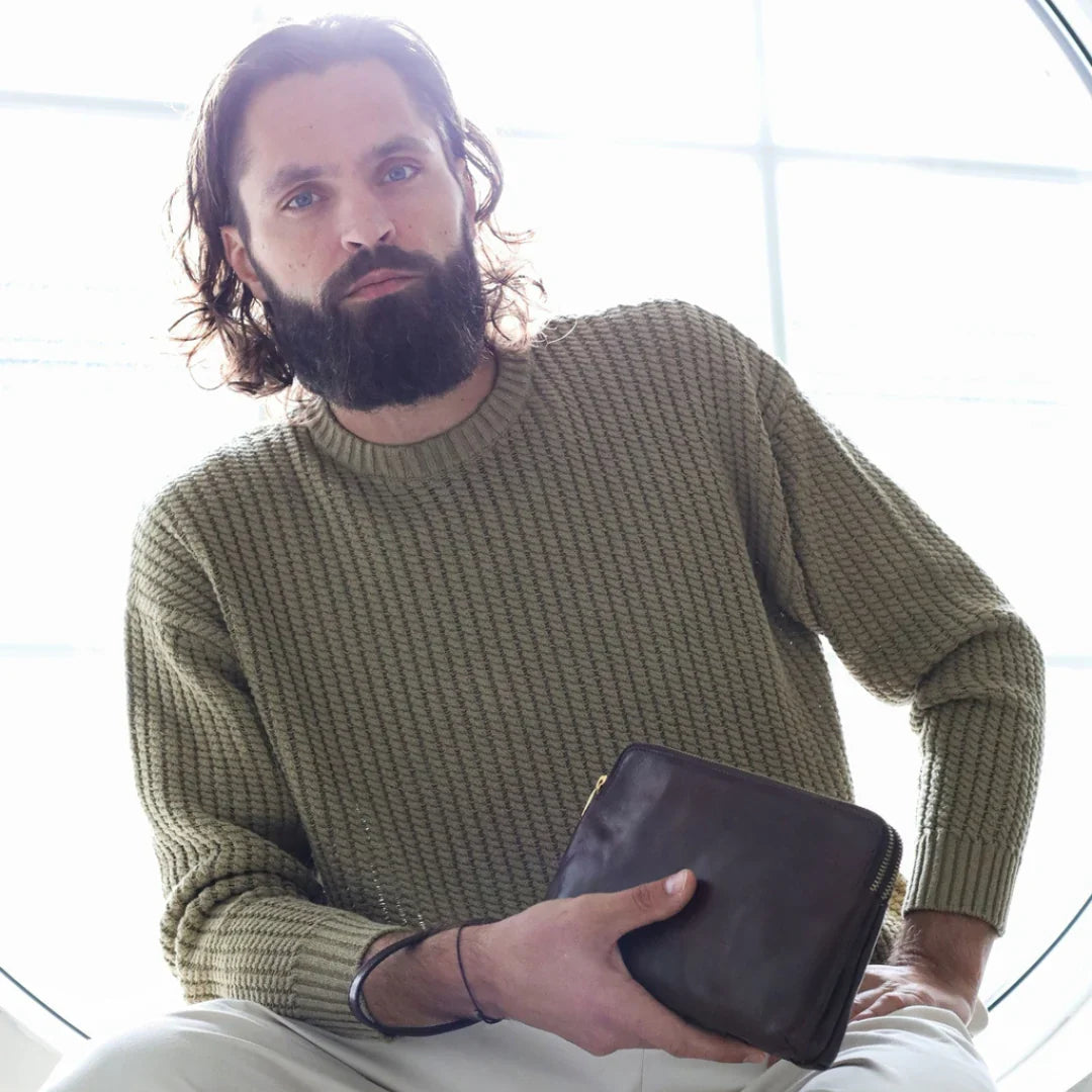 Abbiamo sempre creduto che le borse in pelle dal gusto classico non siano riservate esclusivamente ai formali uomini d’affari: anche chi ha uno stile più disinvolto può indossarle senza rinunciare al proprio carisma. È proprio questo che abbiamo voluto dimostrare con lo shooting "Gli opposti si attraggono". Alcuni scatti sono stati realizzati in un’antica dimora, dove le nostre borse da dottore dal design classico ci hanno fatto viaggiare indietro nel tempo. In seguito ci siamo spostati in uno skate park, non lontano da edifici direzionali, dove lavorano molti giovani come il nostro affascinante modello. Le borse si sono perfettamente adattate al nuovo contesto, trasformando l’uomo in un moderno e audace millennial.