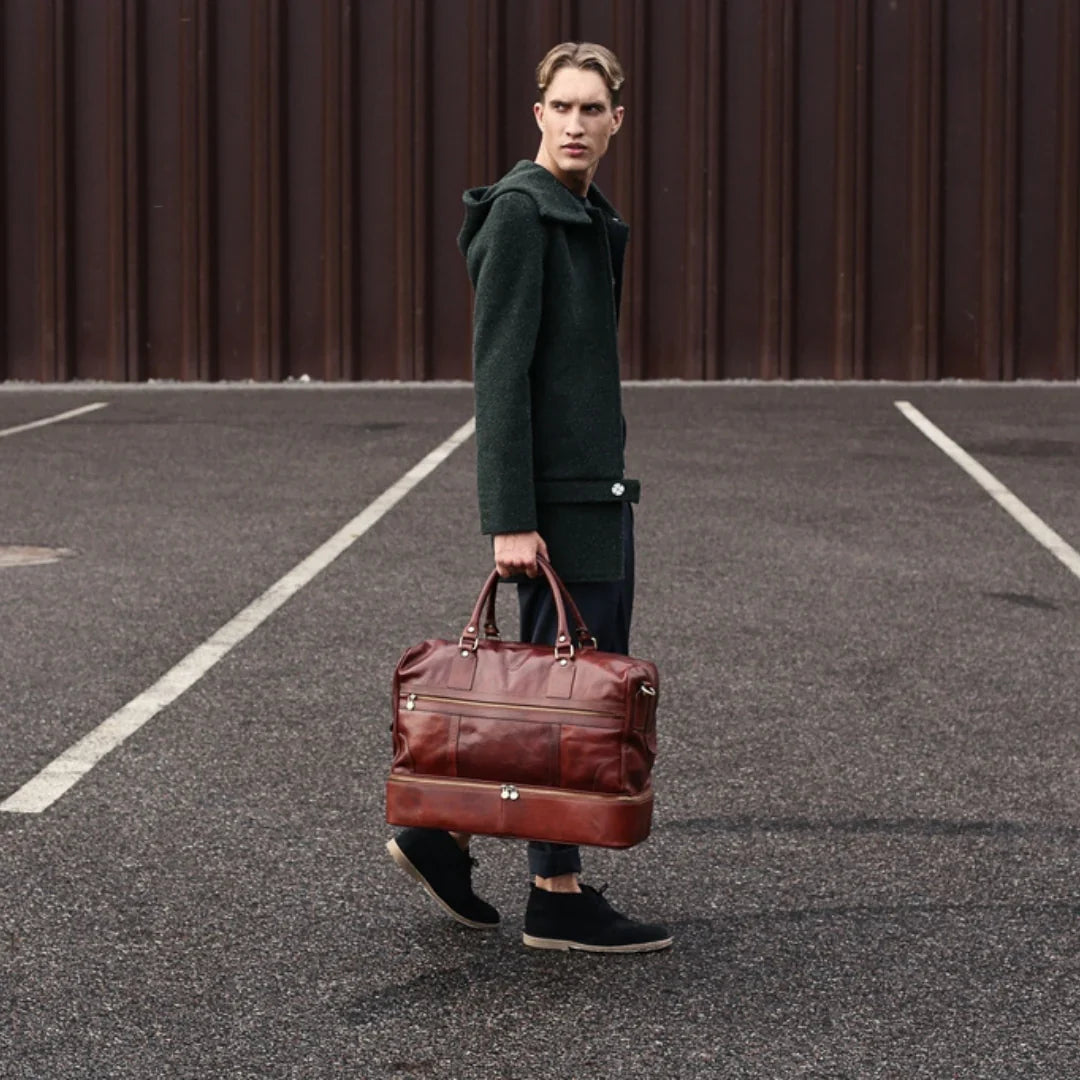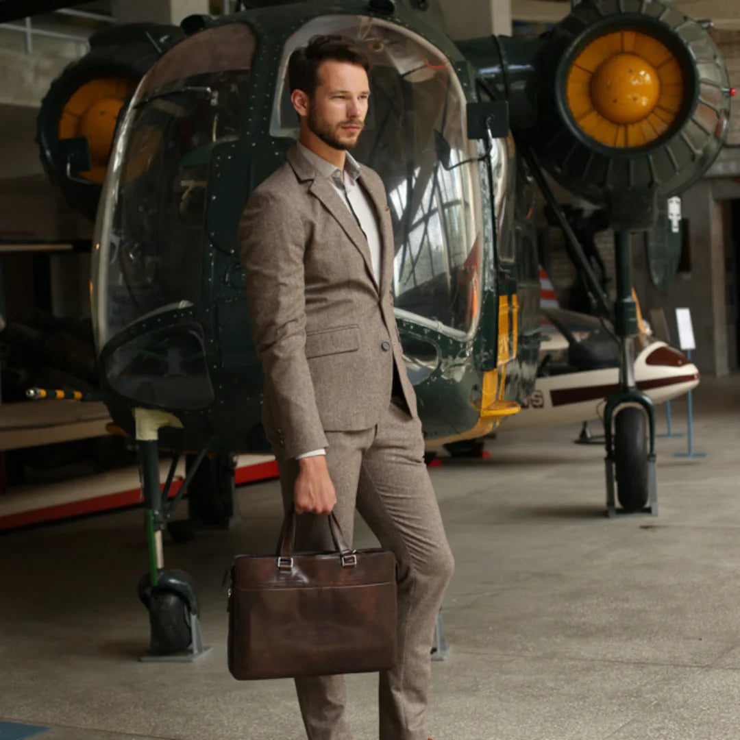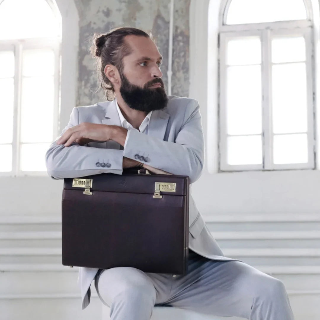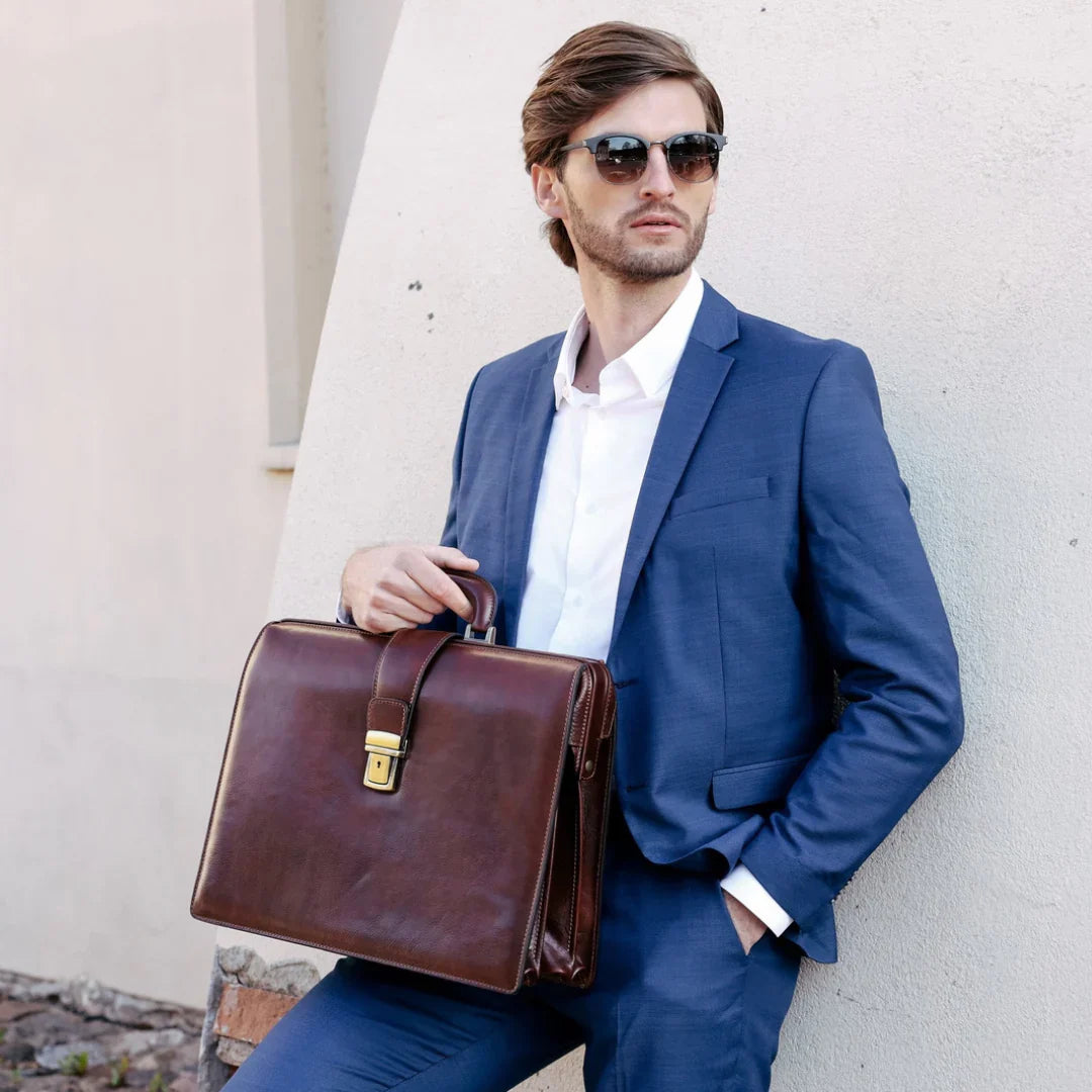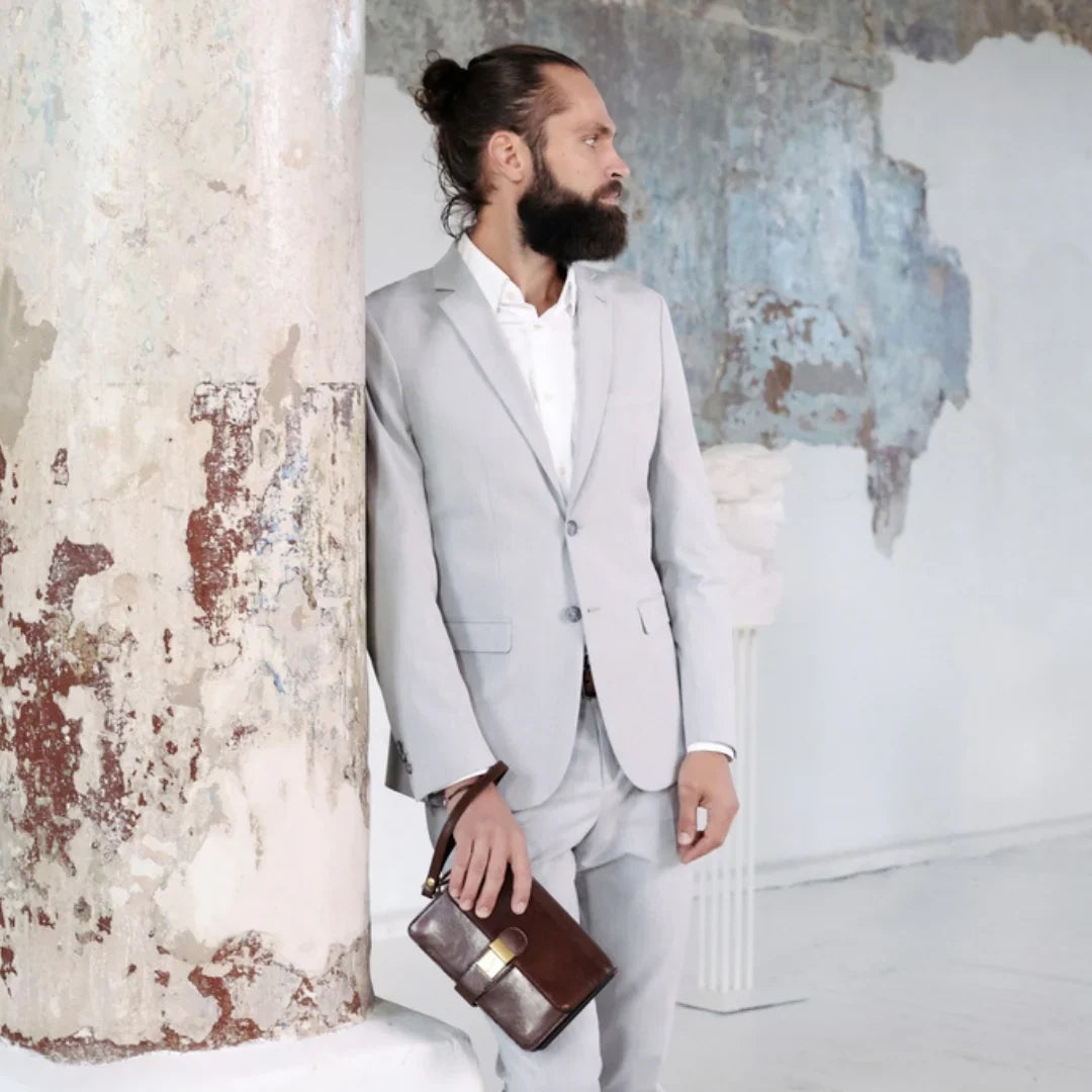 Abbiamo sempre creduto che le borse in pelle dal gusto classico non siano riservate esclusivamente ai formali uomini d’affari: anche chi ha uno stile più disinvolto può indossarle senza rinunciare al proprio carisma. È proprio questo che abbiamo voluto dimostrare con lo shooting "Gli opposti si attraggono". Alcuni scatti sono stati realizzati in un’antica dimora, dove le nostre borse da dottore dal design classico ci hanno fatto viaggiare indietro nel tempo. In seguito ci siamo spostati in uno skate park, non lontano da edifici direzionali, dove lavorano molti giovani come il nostro affascinante modello. Le borse si sono perfettamente adattate al nuovo contesto, trasformando l’uomo in un moderno e audace millennial.