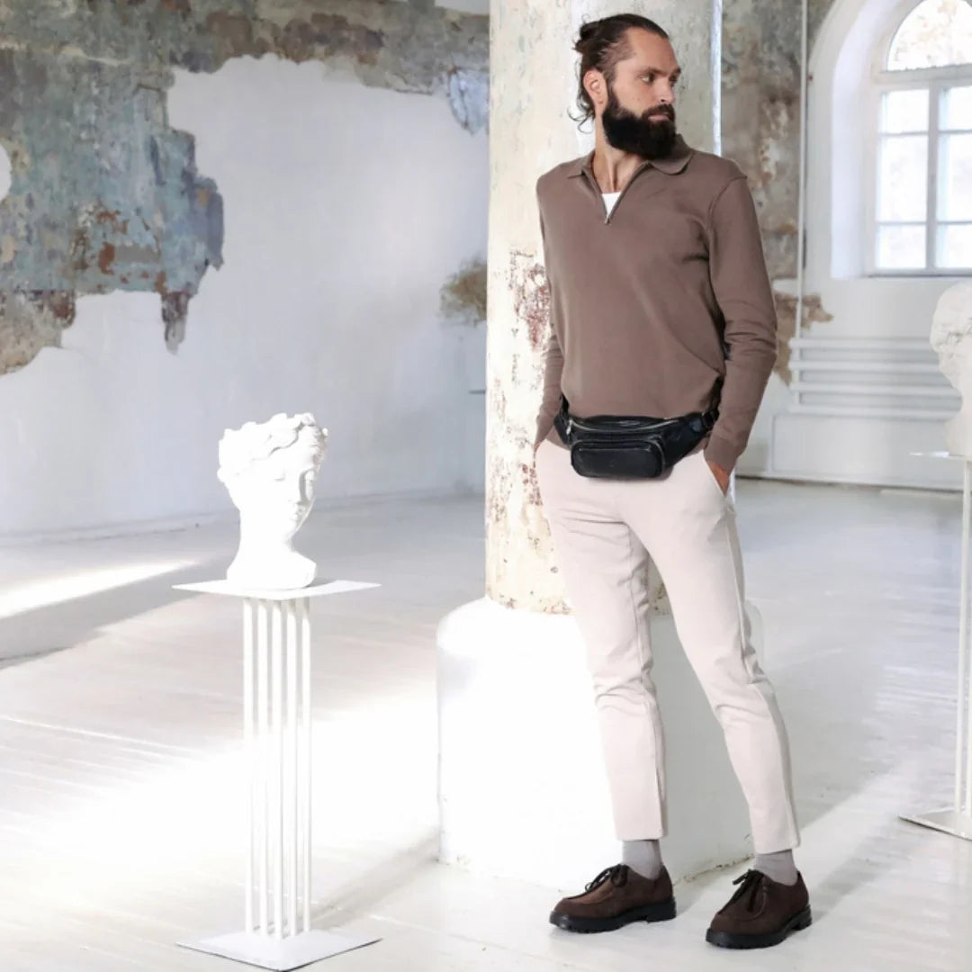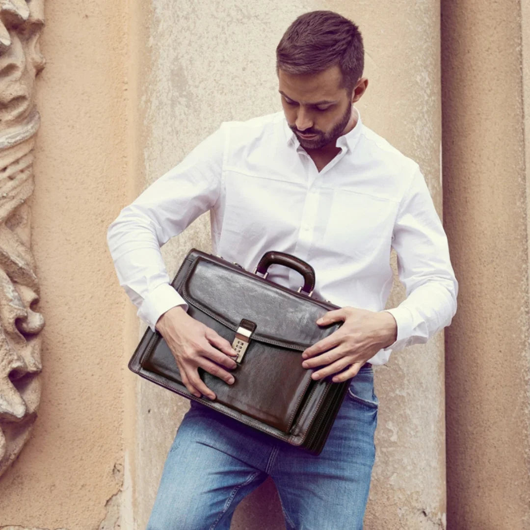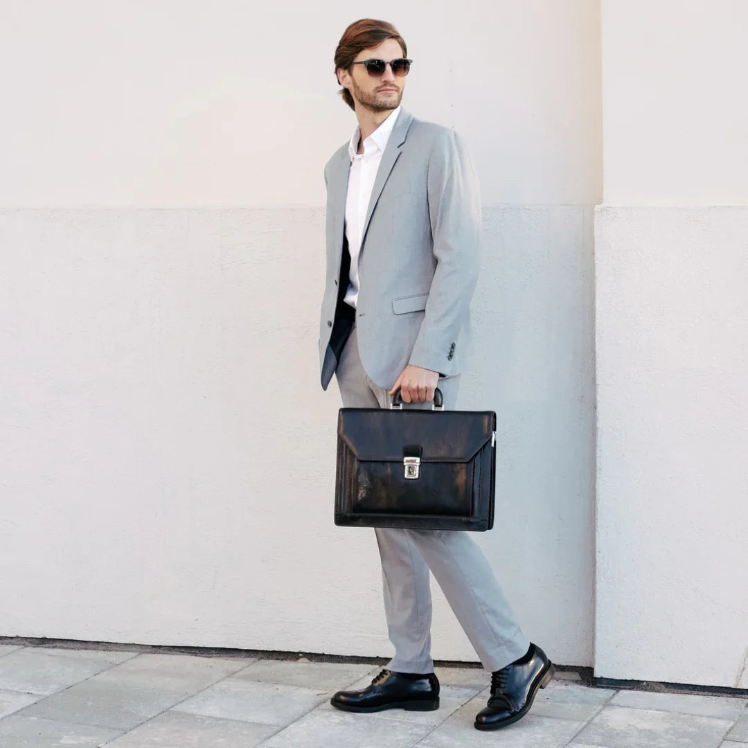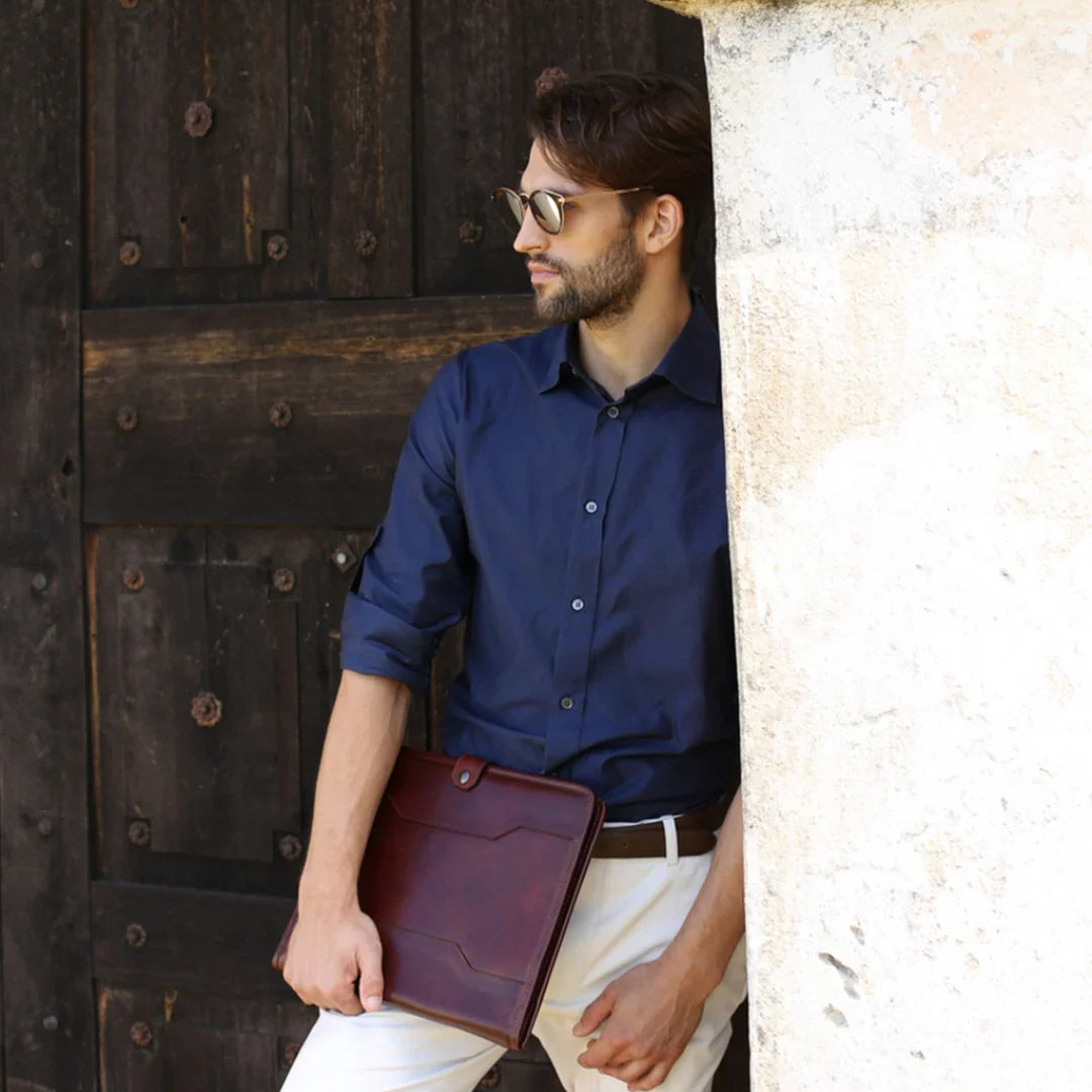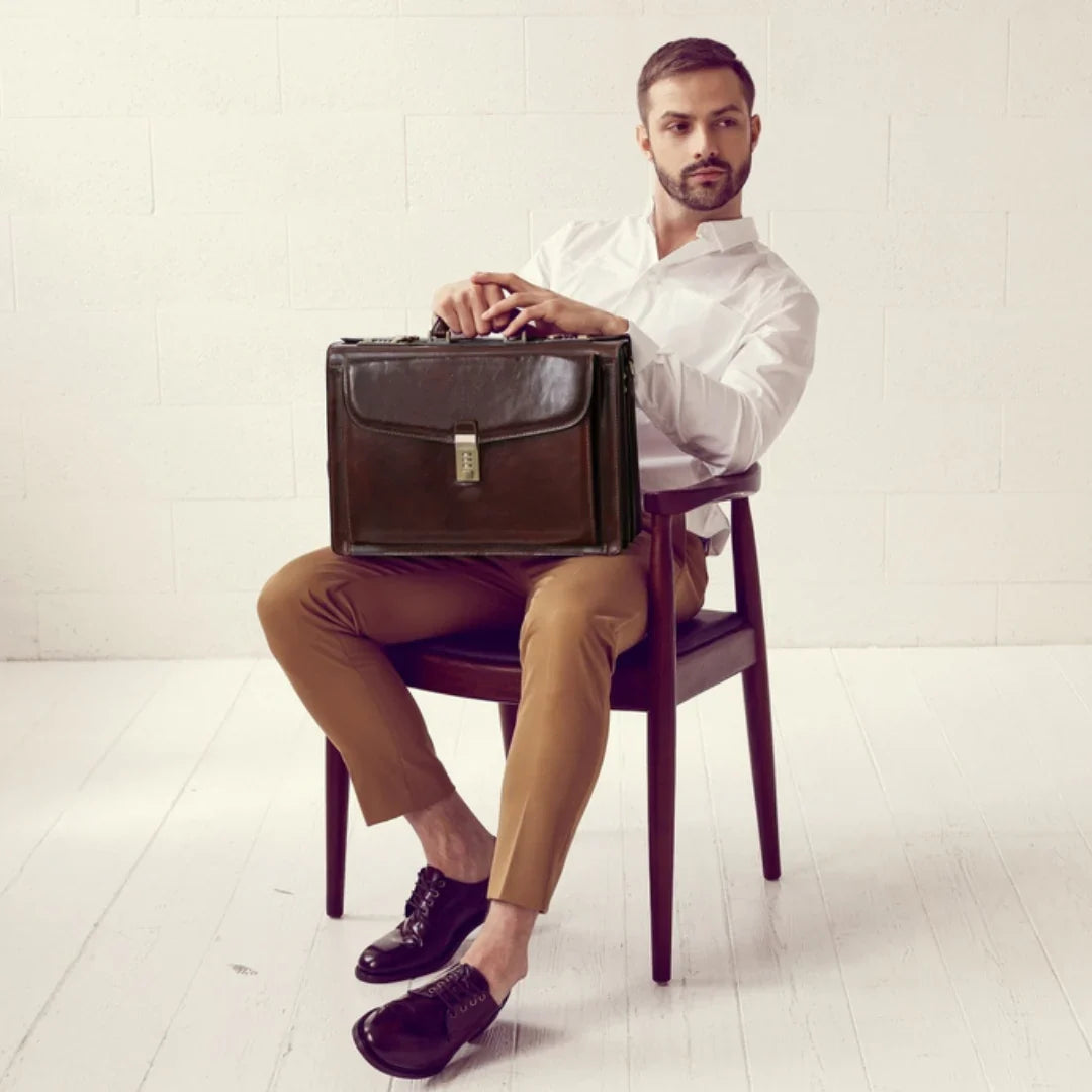 Abbiamo sempre creduto che le borse in pelle dal gusto classico non siano riservate esclusivamente ai formali uomini d’affari: anche chi ha uno stile più disinvolto può indossarle senza rinunciare al proprio carisma. È proprio questo che abbiamo voluto dimostrare con lo shooting "Gli opposti si attraggono". Alcuni scatti sono stati realizzati in un’antica dimora, dove le nostre borse da dottore dal design classico ci hanno fatto viaggiare indietro nel tempo. In seguito ci siamo spostati in uno skate park, non lontano da edifici direzionali, dove lavorano molti giovani come il nostro affascinante modello. Le borse si sono perfettamente adattate al nuovo contesto, trasformando l’uomo in un moderno e audace millennial.
