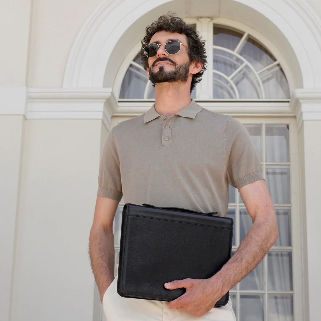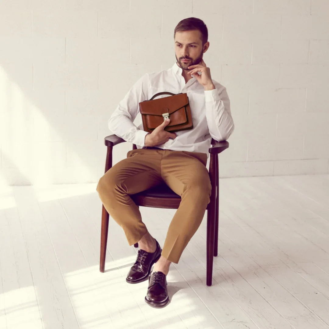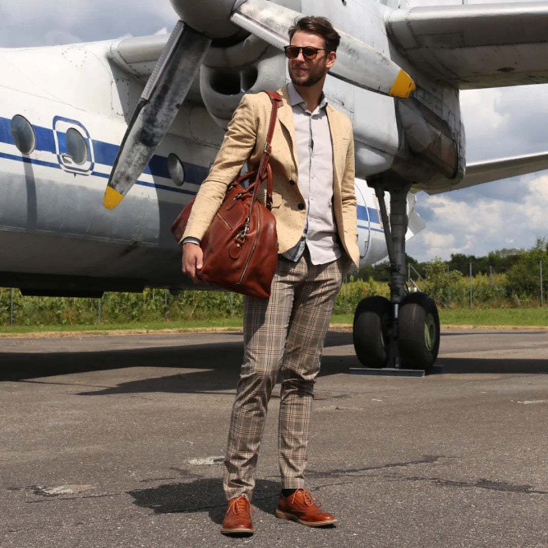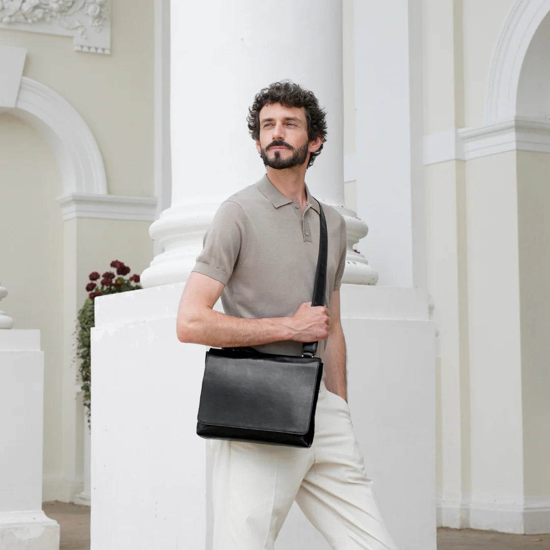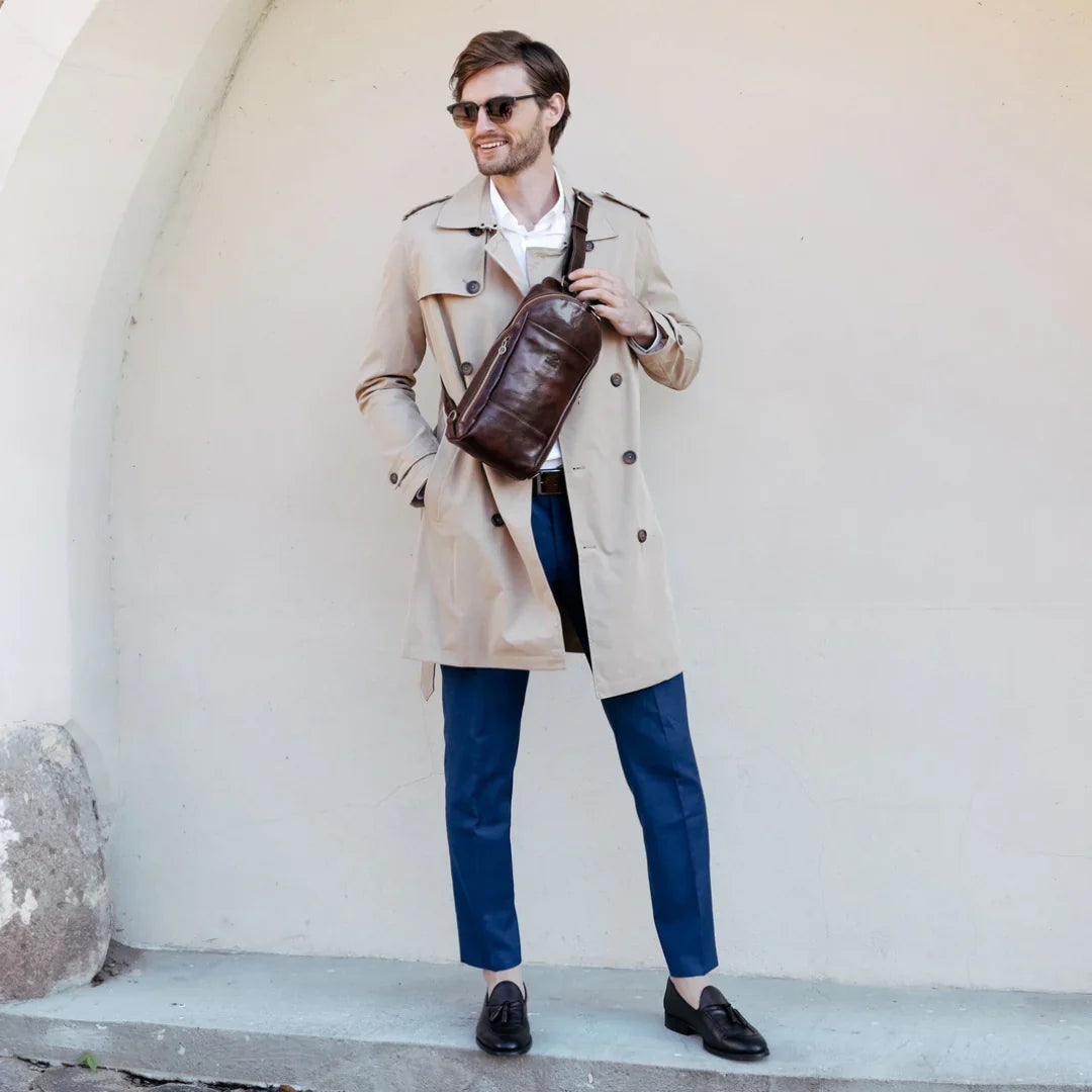 Abbiamo sempre creduto che le borse in pelle dal gusto classico non siano riservate esclusivamente ai formali uomini d’affari: anche chi ha uno stile più disinvolto può indossarle senza rinunciare al proprio carisma. È proprio questo che abbiamo voluto dimostrare con lo shooting "Gli opposti si attraggono". Alcuni scatti sono stati realizzati in un’antica dimora, dove le nostre borse da dottore dal design classico ci hanno fatto viaggiare indietro nel tempo. In seguito ci siamo spostati in uno skate park, non lontano da edifici direzionali, dove lavorano molti giovani come il nostro affascinante modello. Le borse si sono perfettamente adattate al nuovo contesto, trasformando l’uomo in un moderno e audace millennial.