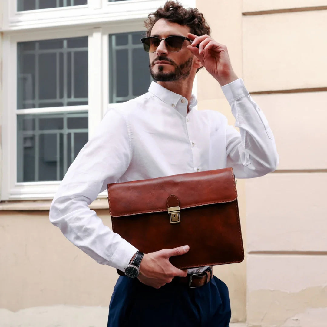 Benvenuti nella nostra galleria fotografica, dove le borse e gli accessori in pelle prendono vita. Siamo orgogliosi di presentare i nostri prodotti in contesti e stili diversi, dal casual all’elegante. Ogni scatto cattura l’essenza del nostro brand: qualità, versatilità e raffinatezza. Scorrendo la galleria ed ammirando le ambientazioni si coglierà come le nostre creazioni possano completare lo stile e valorizzare ogni momento.