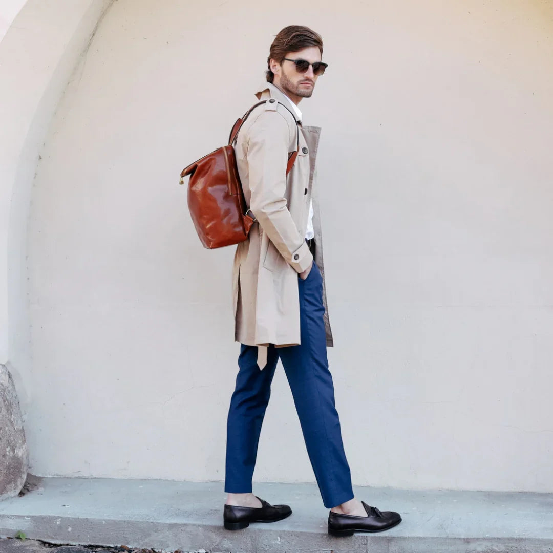 Una nuova stagione e un nuovo servizio fotografico per Time Resistance. Poiché la collezione viene costantemente aggiornata, migliorata e rinnovata, i servizi fotografici rappresentano ormai una parte imprescindibile del nostro percorso. Con l’arrivo di numerosi nuovi modelli – zaini in pelle, borse messenger, valigette in cuoio, borsoni da viaggio e molto altro – poterli finalmente mostrare è motivo di grande entusiasmo. Questa volta, l’ispirazione è nata da ciò che amano tutti: le vacanze. Non quelle fatte di arrampicate in Australia o surf alle Hawaii, ma quelle trascorse in una cittadina europea, ricca di storia e di vita. Perdersi tra i vicoli, sedersi per un caffè o un calice di vino, osservare l’architettura e la quotidianità che scorre: questo è il modo ideale per ritrovare sé stessi. La cornice perfetta per raccontare questa sensazione è stata trovata in un autentico gentiluomo contemporaneo e in una delle capitali europee più affascinanti: Vilnius. Il suo centro storico, con i suoi scorci, vicoli e cortili, avrebbe potuto ospitare le riprese per giorni interi. La parte curiosa? Durante lo shooting si sono incrociate molte persone dirette al lavoro, vestite in modo simile al protagonista e con in mano valigette in pelle. Questo ha reso lo shooting incredibilmente autentico, quasi come se stessimo vivendo una scena reale, ben più di una semplice messa in scena.