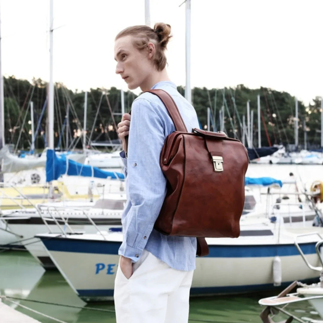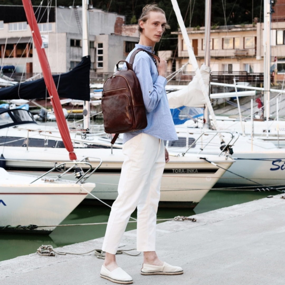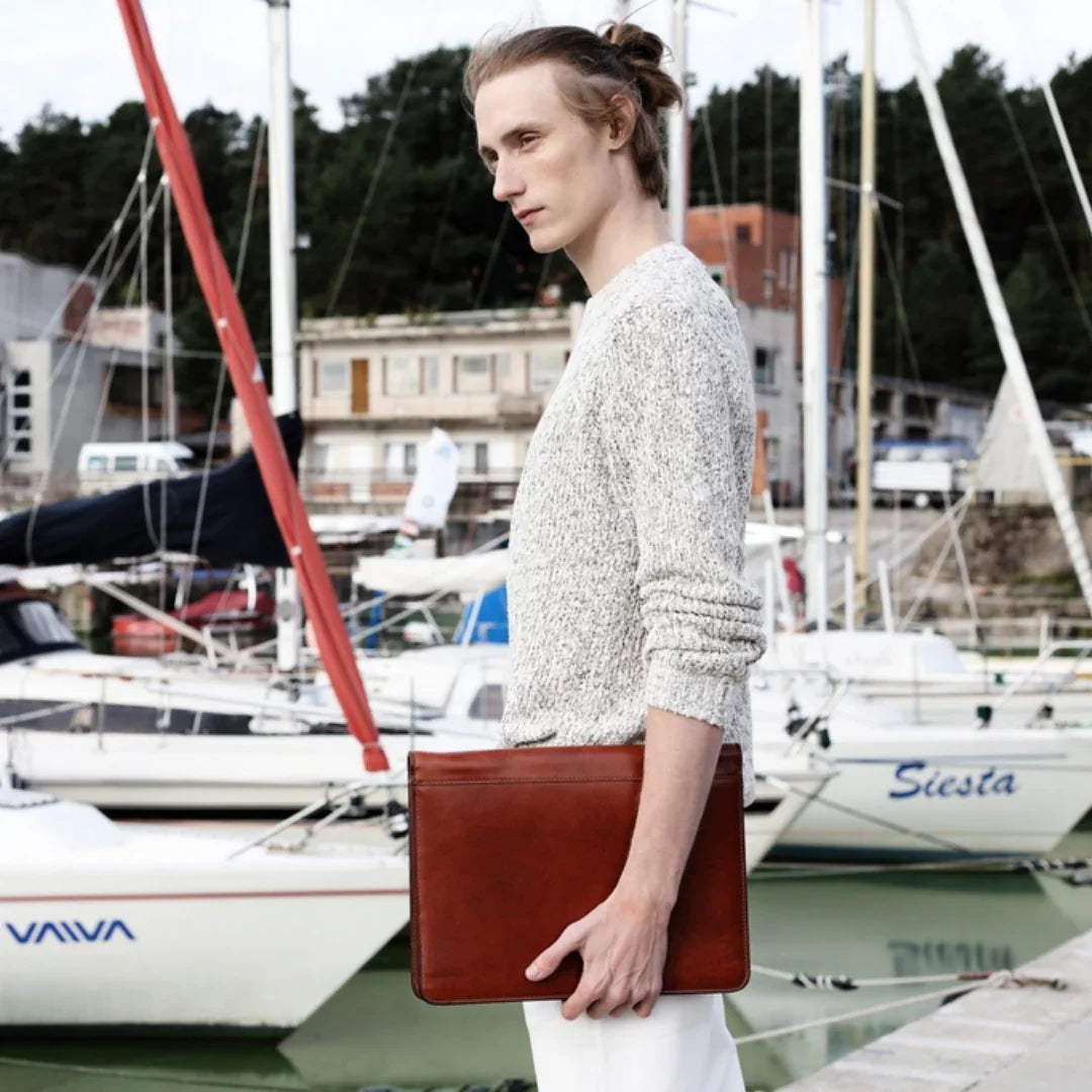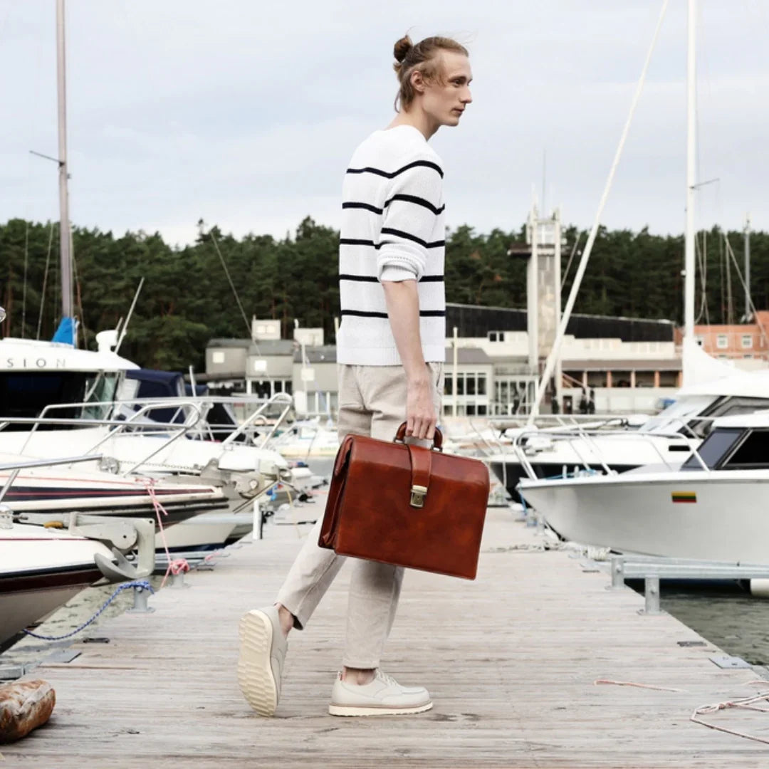 Nulla è più avvilente dell'idea che il classico sia sinonimo di noia. Pur prediligendo lo stile classico, si apprezza anche il piacere della spensieratezza — mantenendo uno spirito giovane (almeno nell'essenza). Attraverso questo servizio fotografico, si è voluto dimostrare come una borsa da viaggio in pelle italiana possa essere un'aggiunta perfetta anche alla collezione di uno spirito giovane. E quale modo più affascinante di viaggiare se non a vela? Basta uno sguardo alle immagini per percepire la brezza tra i capelli. Ah, poter rivivere i vent’anni!