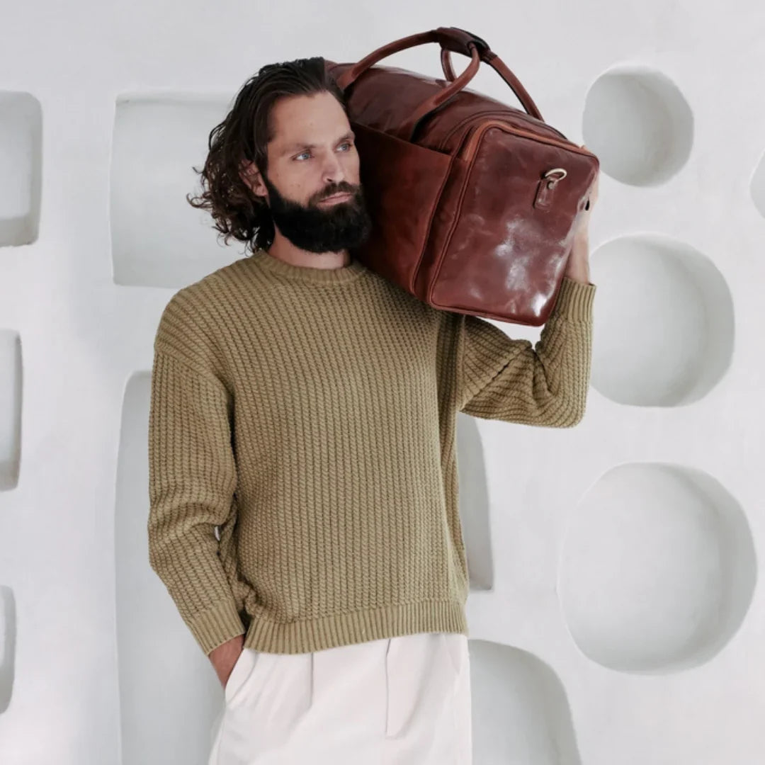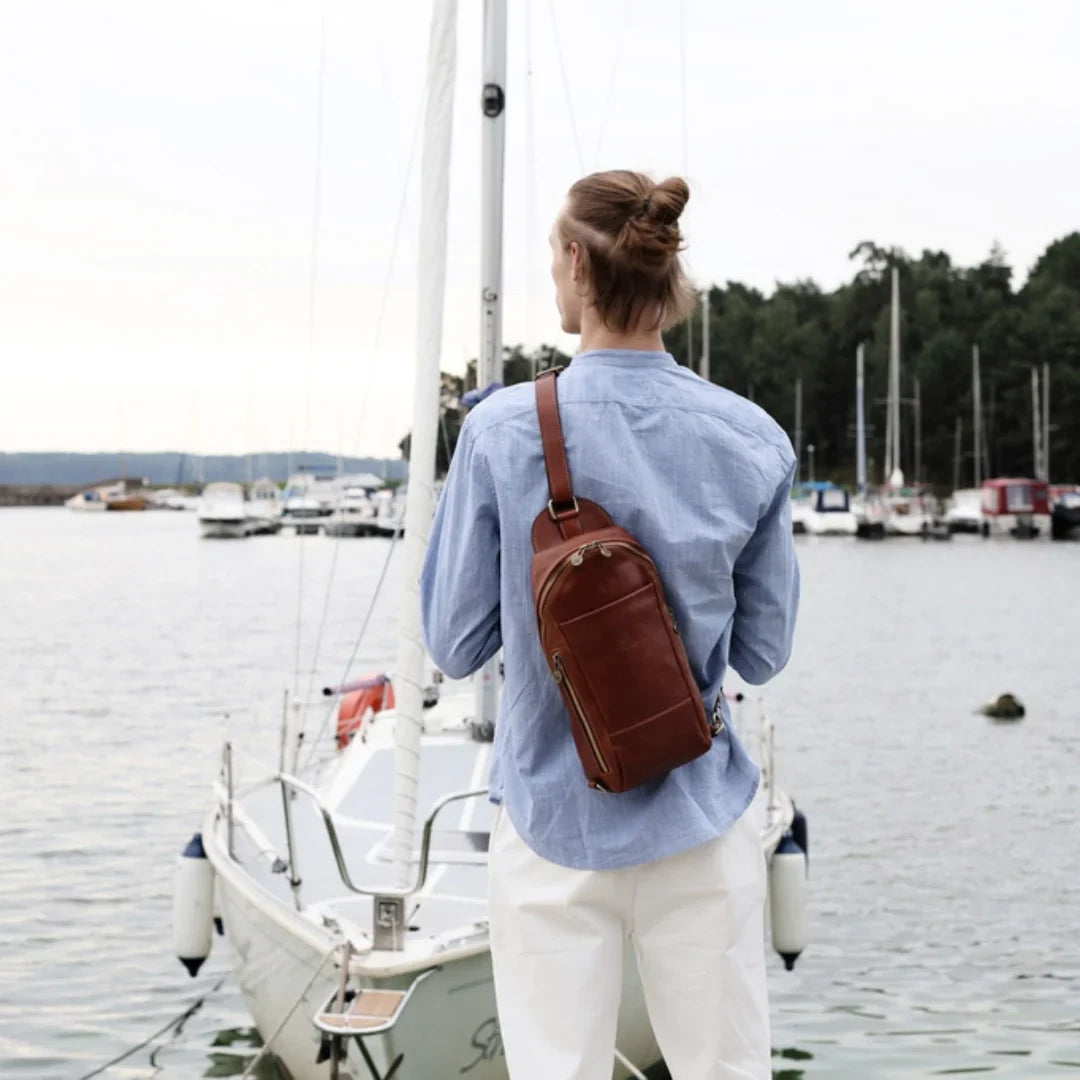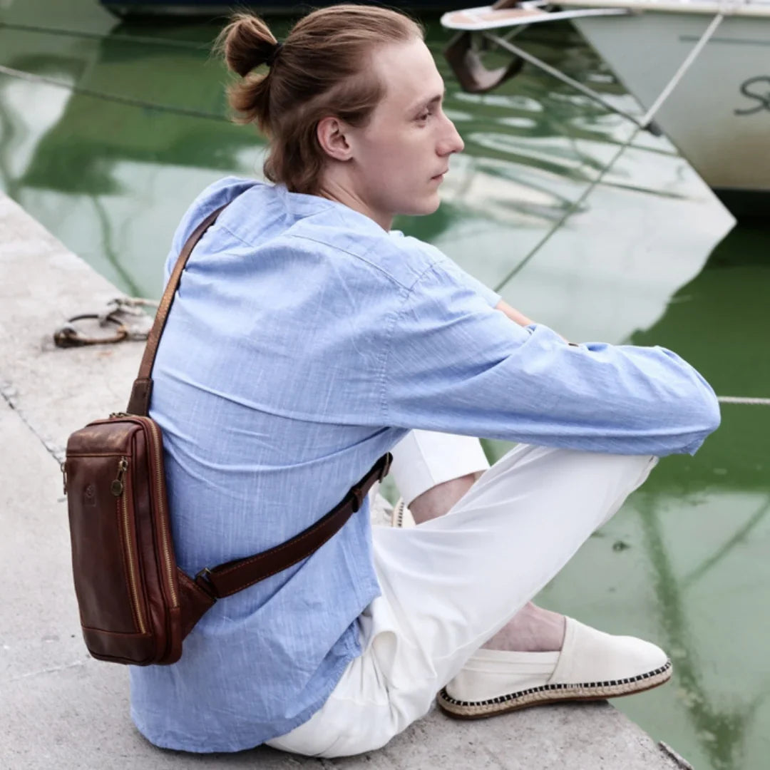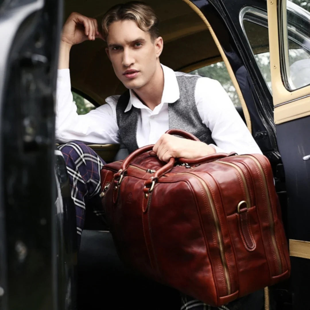 Nulla è più avvilente dell'idea che il classico sia sinonimo di noia. Pur prediligendo lo stile classico, si apprezza anche il piacere della spensieratezza — mantenendo uno spirito giovane (almeno nell'essenza). Attraverso questo servizio fotografico, si è voluto dimostrare come una borsa da viaggio in pelle italiana possa essere un'aggiunta perfetta anche alla collezione di uno spirito giovane. E quale modo più affascinante di viaggiare se non a vela? Basta uno sguardo alle immagini per percepire la brezza tra i capelli. Ah, poter rivivere i vent’anni!