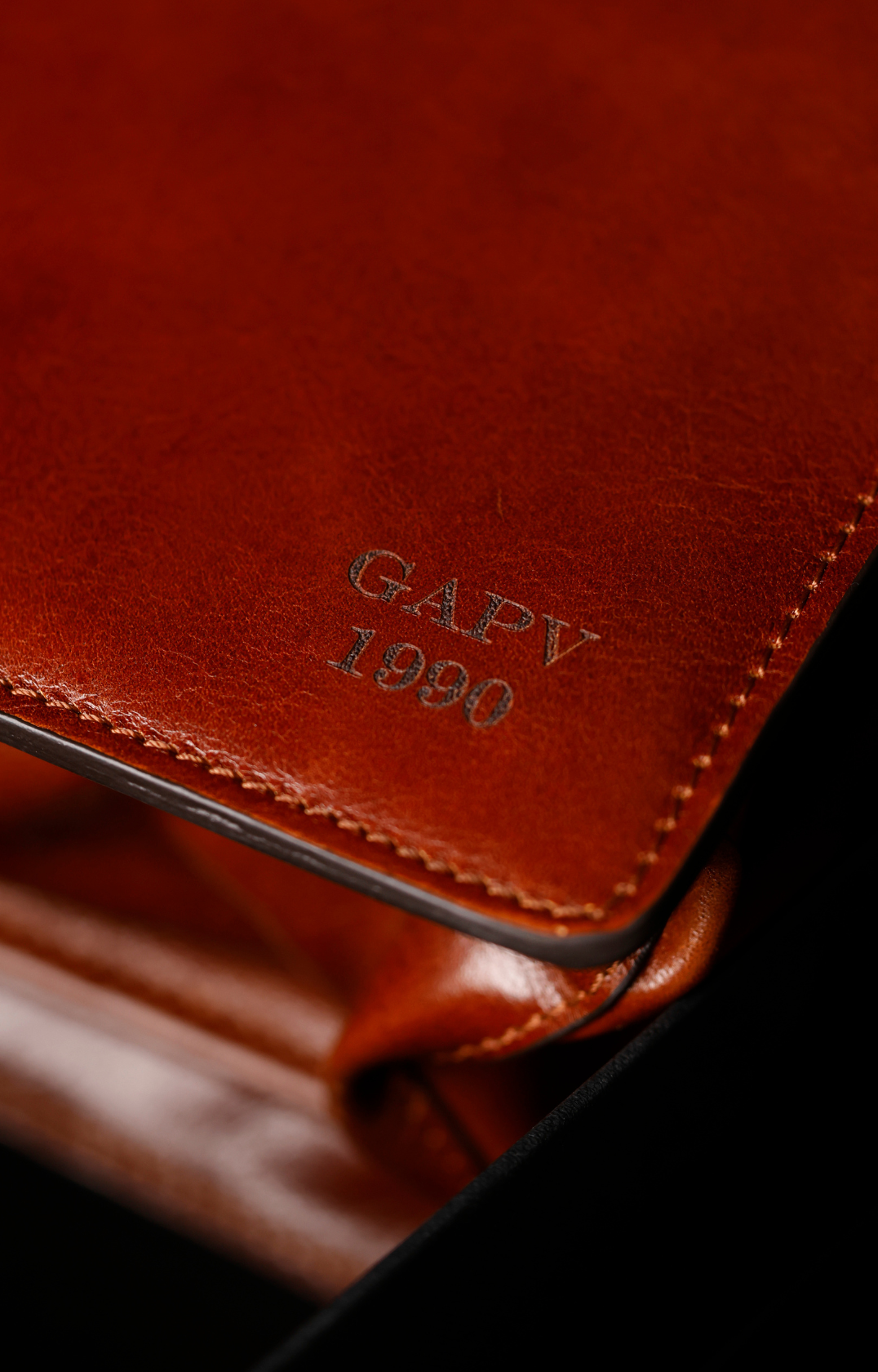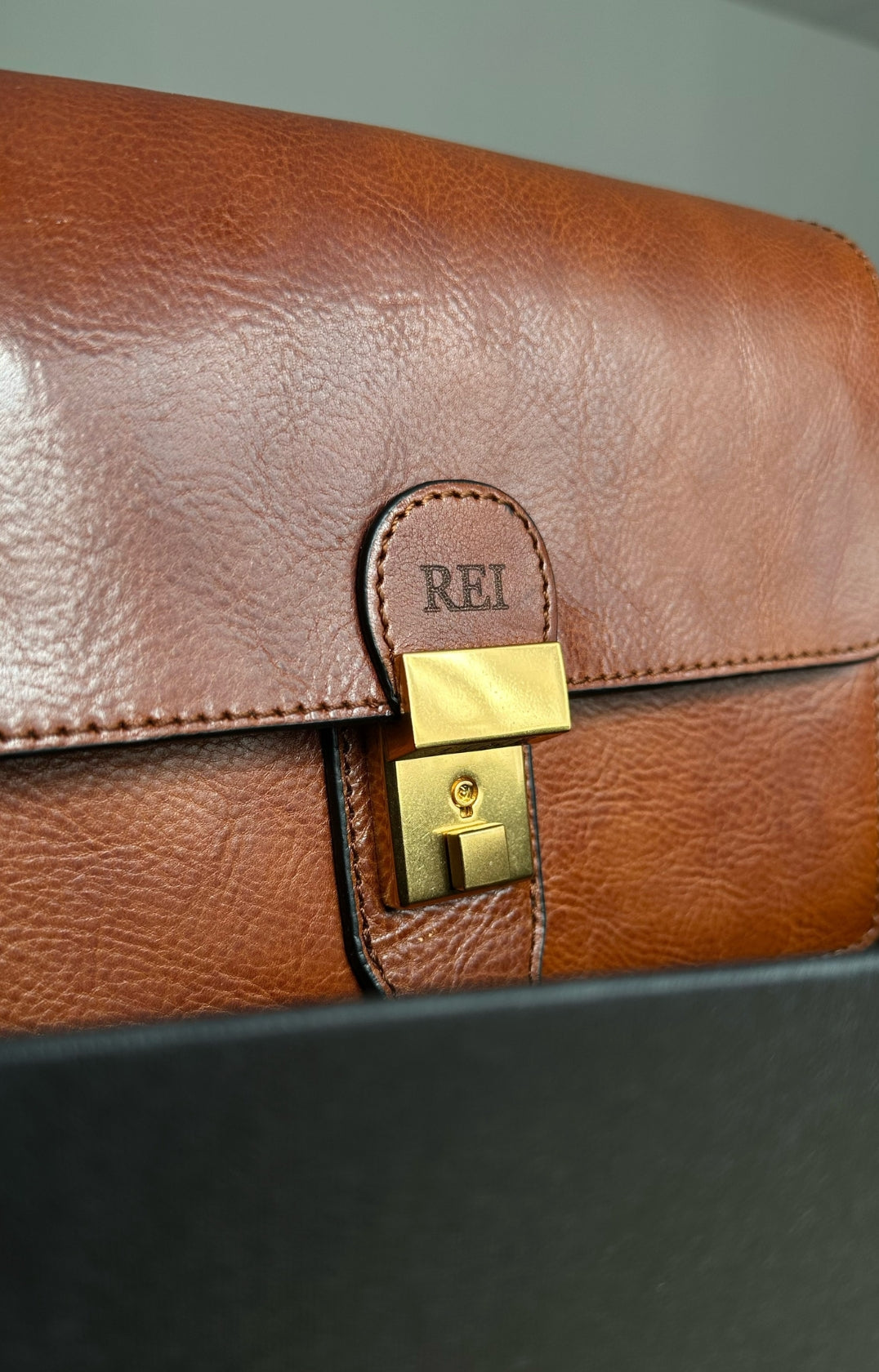 L’incisione laser reagisce con la superficie del cuoio, generando ogni volta una tonalità unica che dipende dal colore della pelle. Il colore dell’incisione è determinato dal tipo di cuoio e non può essere scelto liberamente.
