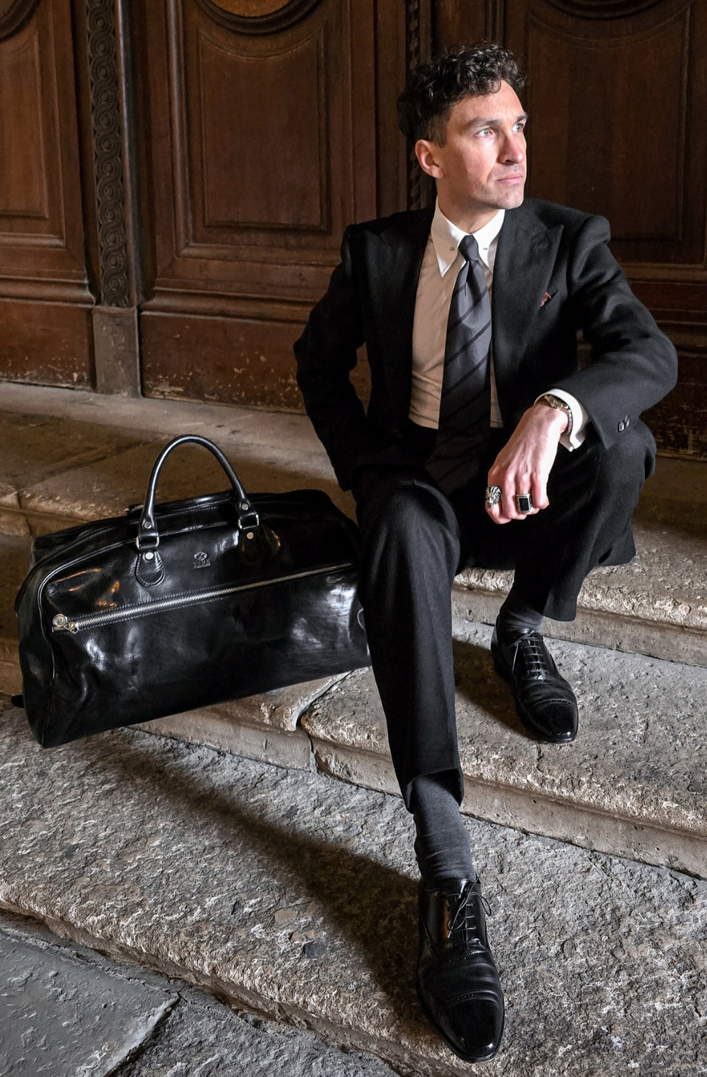 Un borsone in pelle che unisce un design collaudato nel tempo alle esigenze della vita contemporanea. Abbastanza capiente da accompagnare durante un weekend fuori porta, un breve viaggio di lavoro o una serata fuori, quando non si sa mai dove potrebbe portare la notte.
