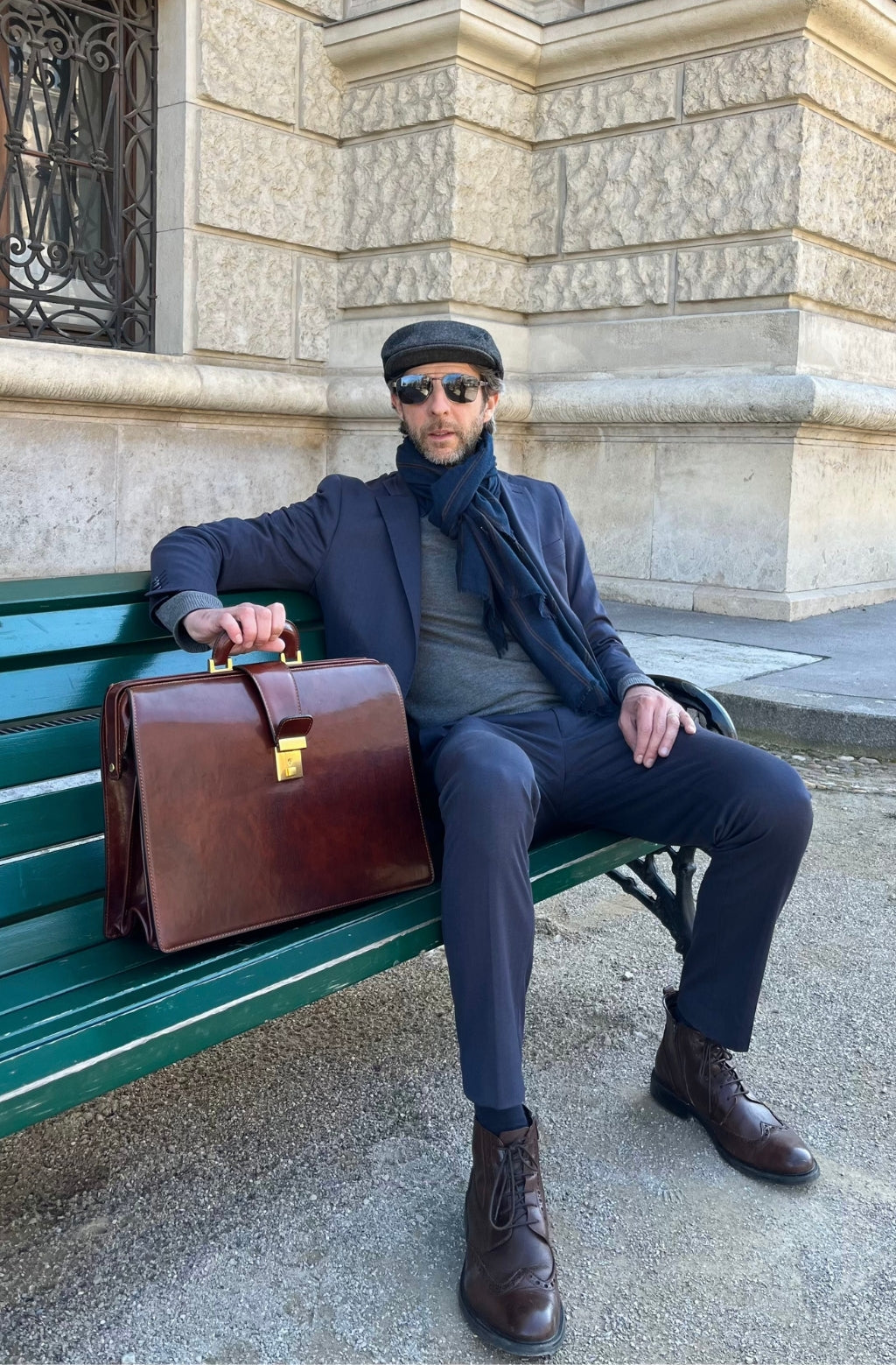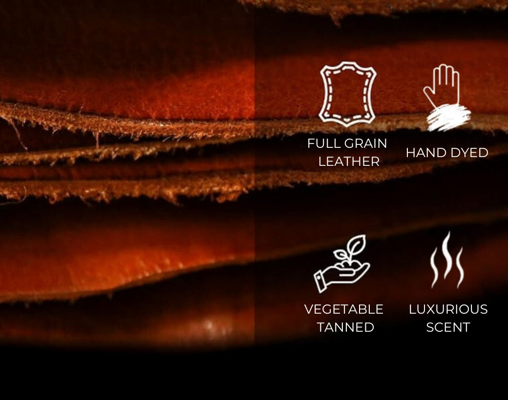 Time Resistance sceglie pelle italiana Vacchetta: pieno fiore, conciata al vegetale e tinta a mano. Col tempo sviluppa una patina raffinata.