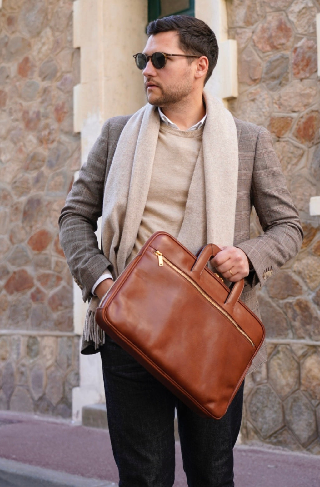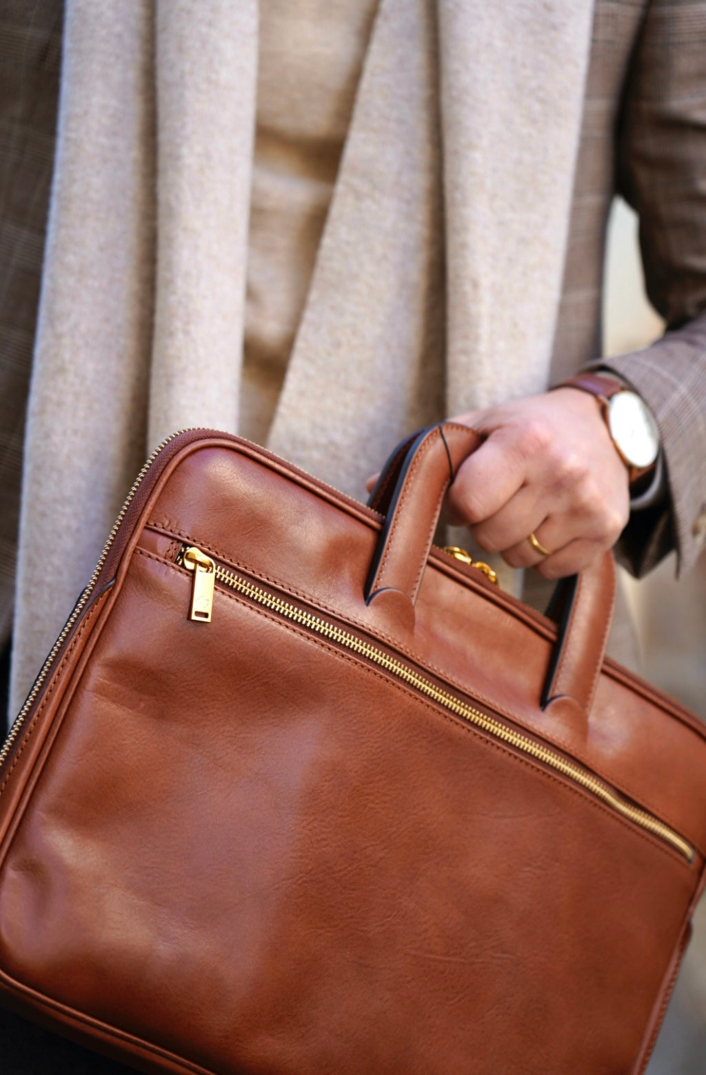 Una cartella da lavoro in pelle pieno fiore che esprime la perfetta armonia tra durezza e morbidezza. La pelle di altissima qualità, tinta a mano, conferisce un tocco sentimentale, mentre le linee trasmettono una delicata impronta di modernità. Intramontabile e attuale. Maschile e femminile. Praticità urbana intrisa di carisma.
