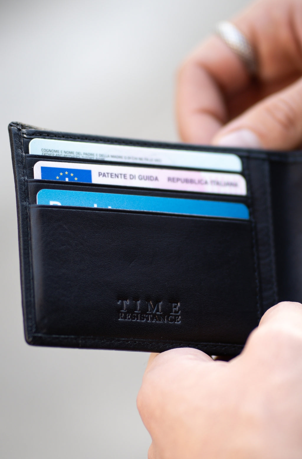 Time Resistance sceglie pelle italiana Vacchetta: pieno fiore, conciata al vegetale e tinta a mano. Col tempo sviluppa una patina raffinata.