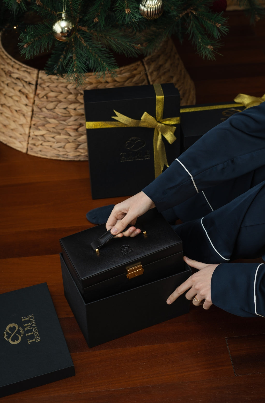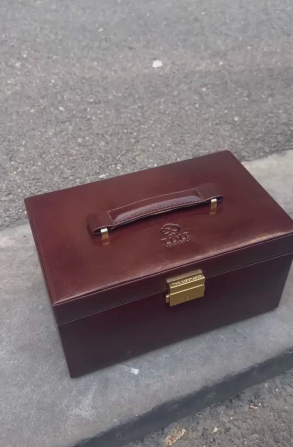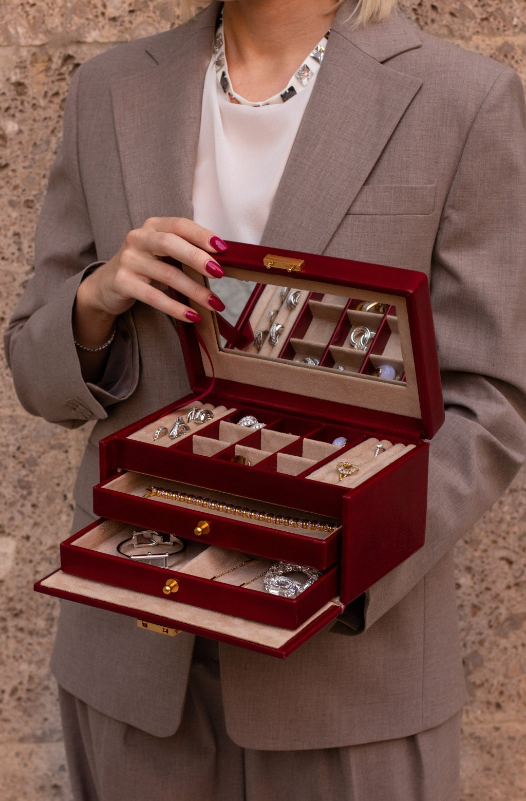 I had been searching for a beautiful jewelry box that would last me forever. I had no idea that I could buy something so lovely, so when I found these products, I knew I had to have one. It smells of leather and reeks of quality, and while some might consider it extravagant, for those like me who would choose quality over saving coin, this investment is well worth the money spent and will be passed on as an heirloom.