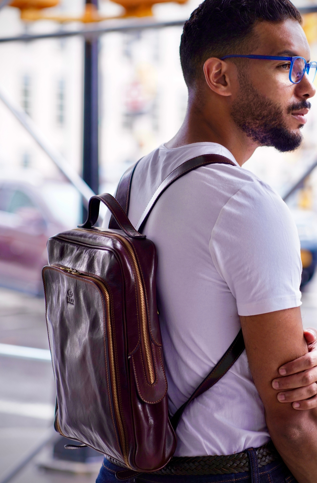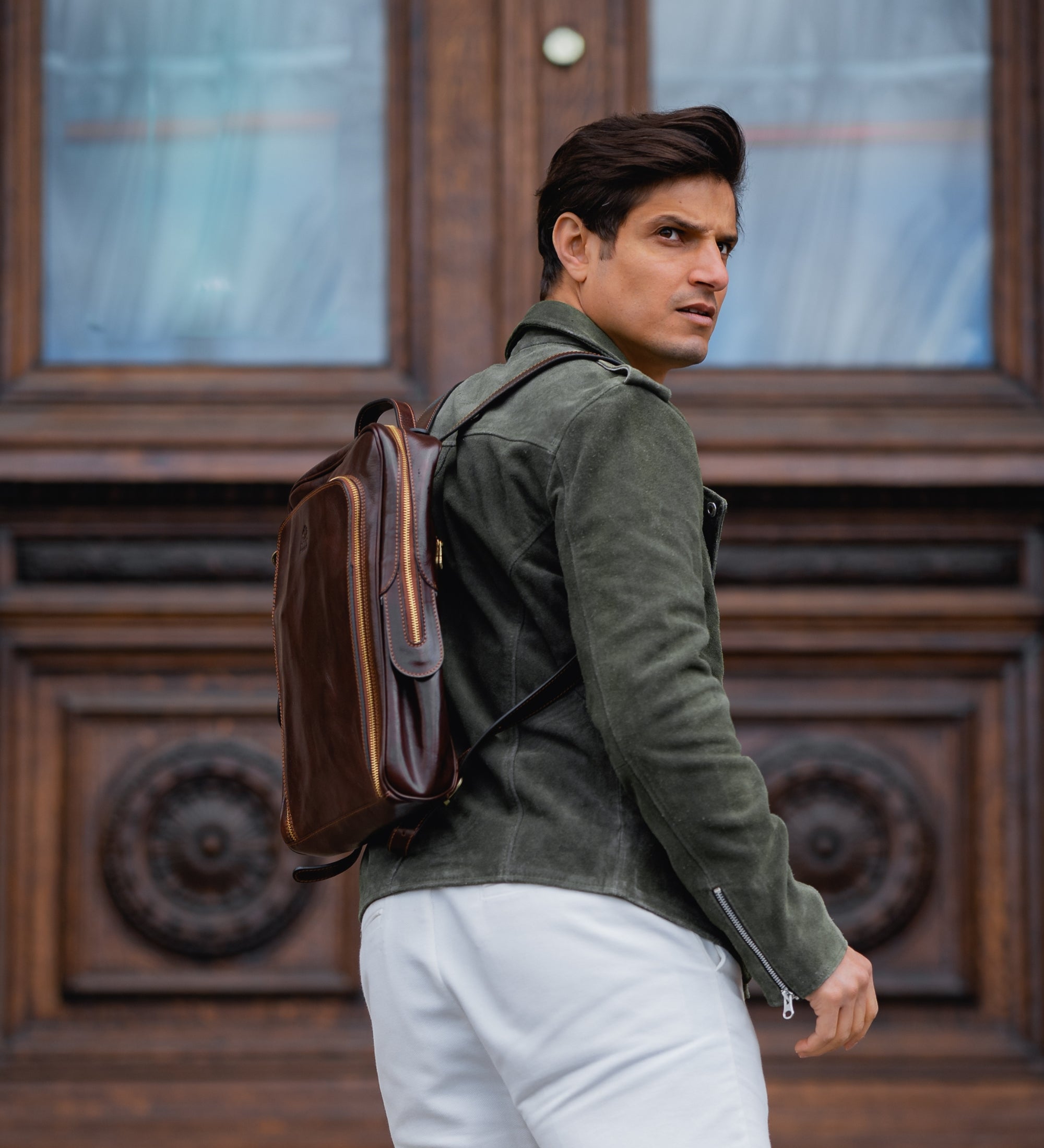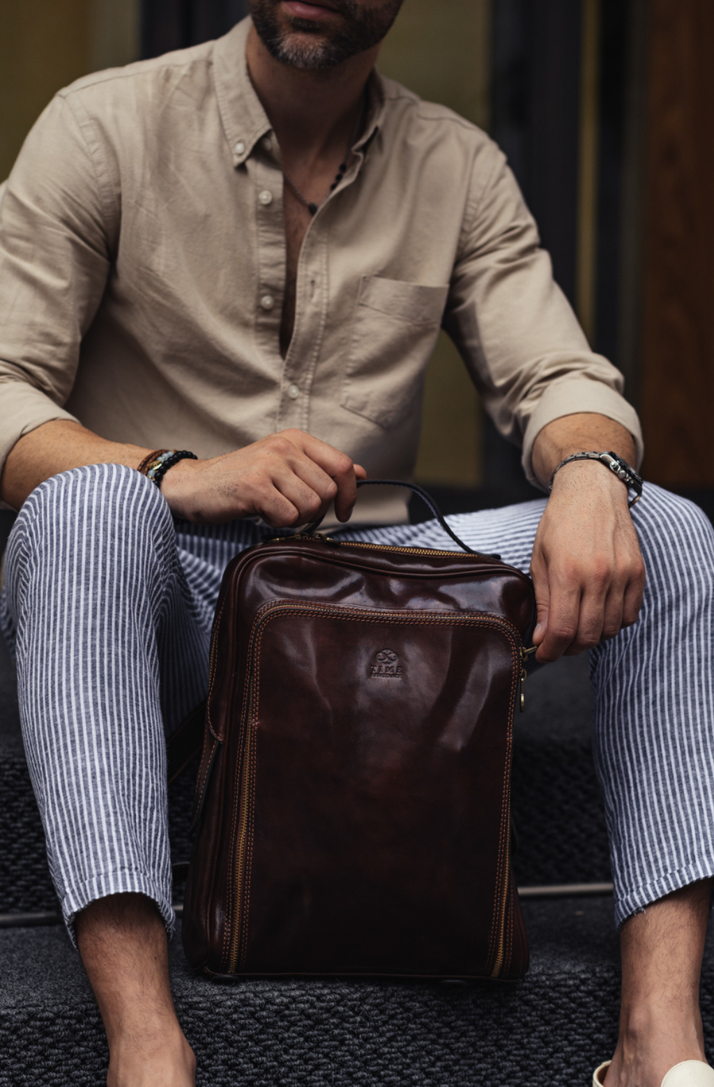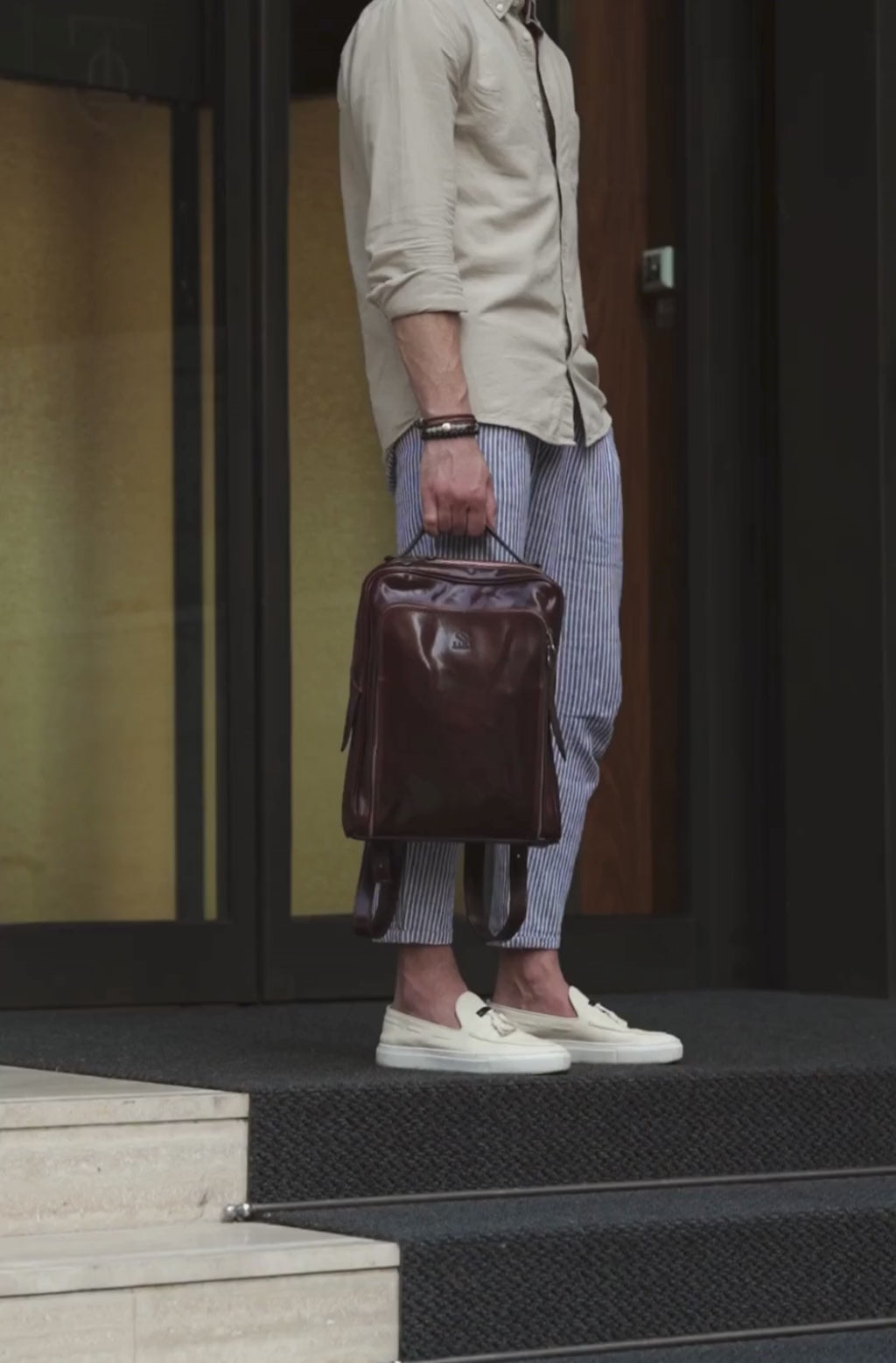 Uno zaino in pelle pieno fiore che evoca il futurismo degli anni '70. Dettagli vintage si fondono con forme pulite e minimali. Per chi sogna ad occhi aperti, per i pensatori, per gli eterni viaggiatori. Per coloro che desiderano distinguersi in silenzio.